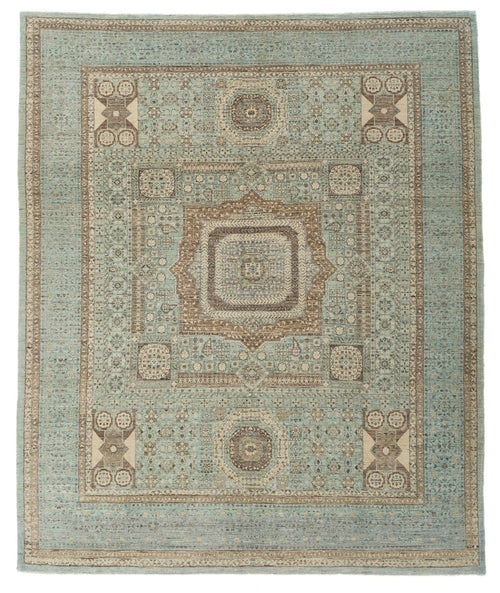 9x10 Light Blue and Ivory Turkish Tribal Rug