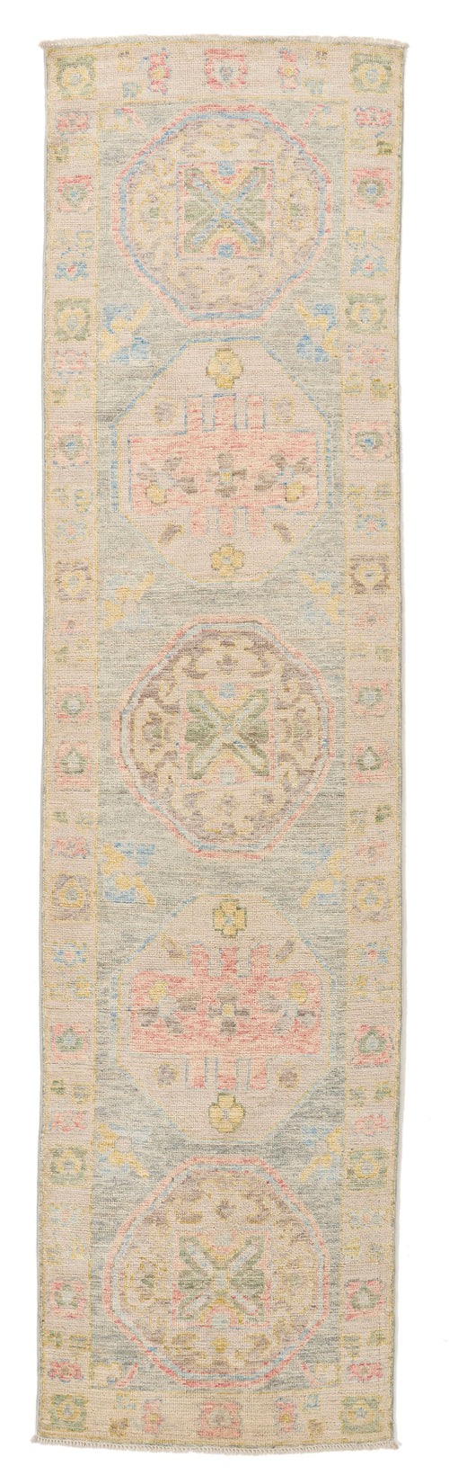 3x15 Gray and Multicolor Turkish Oushak Runner