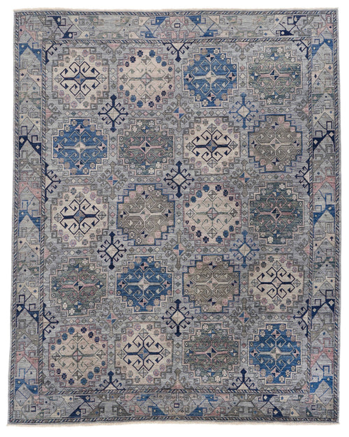 8x10 Gray and Multicolor Turkish Tribal Rug