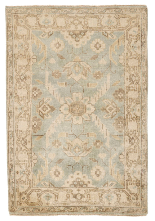3x10 Light Blue and Beige Turkish Oushak Runner