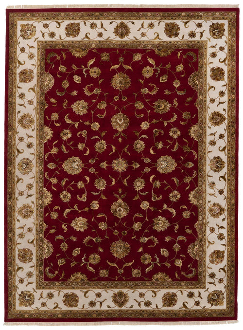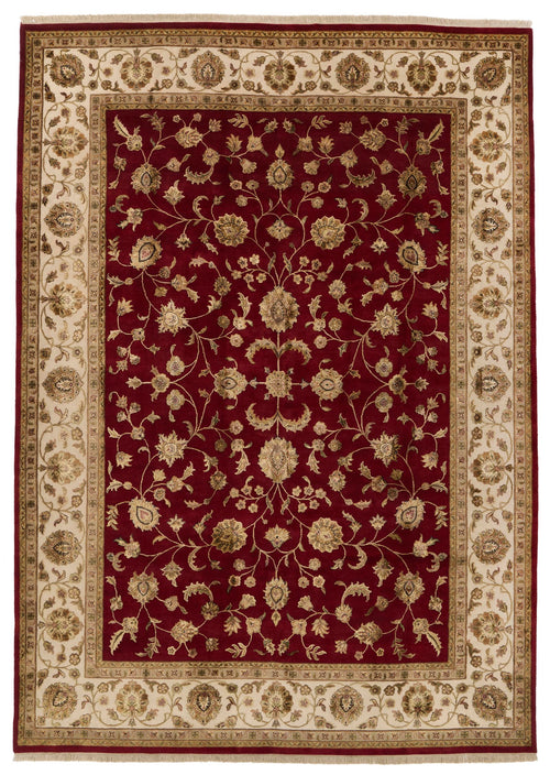 10x14 Burgundy and Ivory Turkish Silk Rug