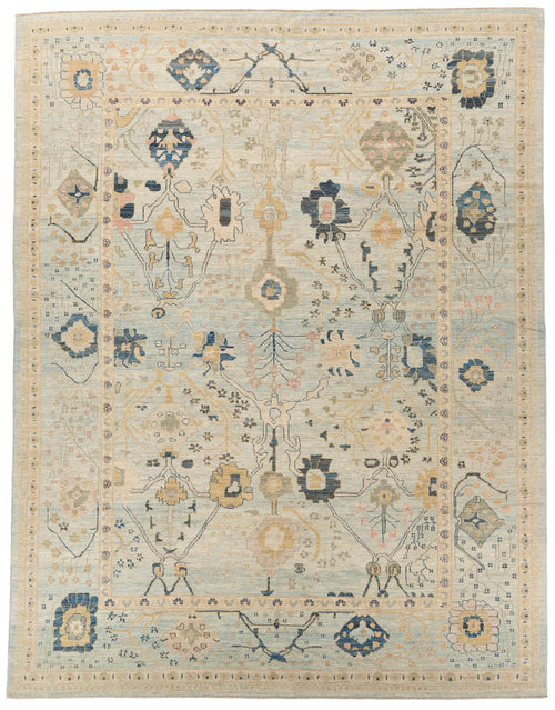 10x13 Light Blue and Multicolor Turkish Oushak Rug