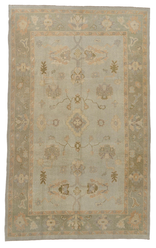 8x10 Light Blue and Multicolor Turkish Oushak Rug