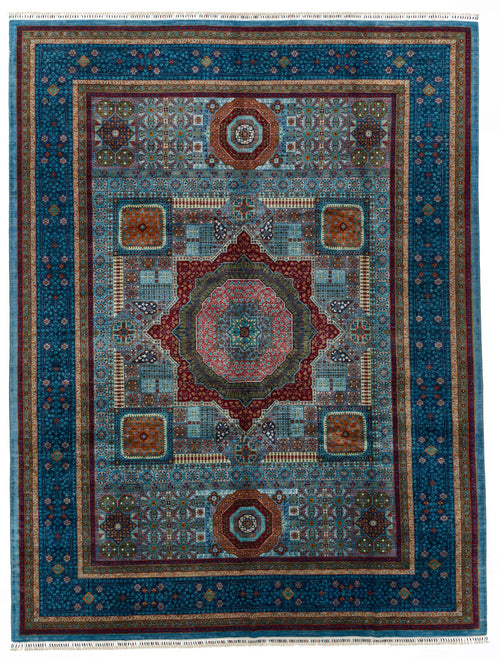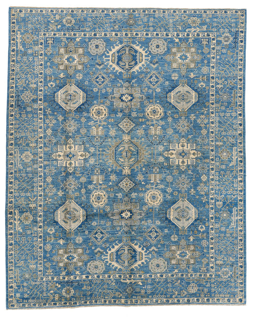 10x13 Light Blue and Navy Anatolian Traditional Rug