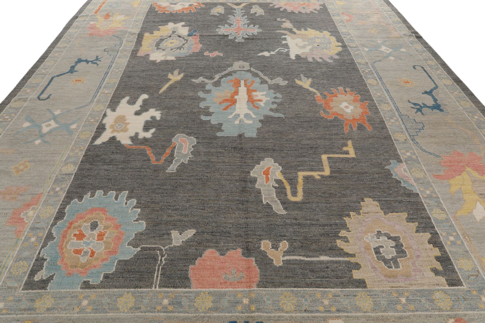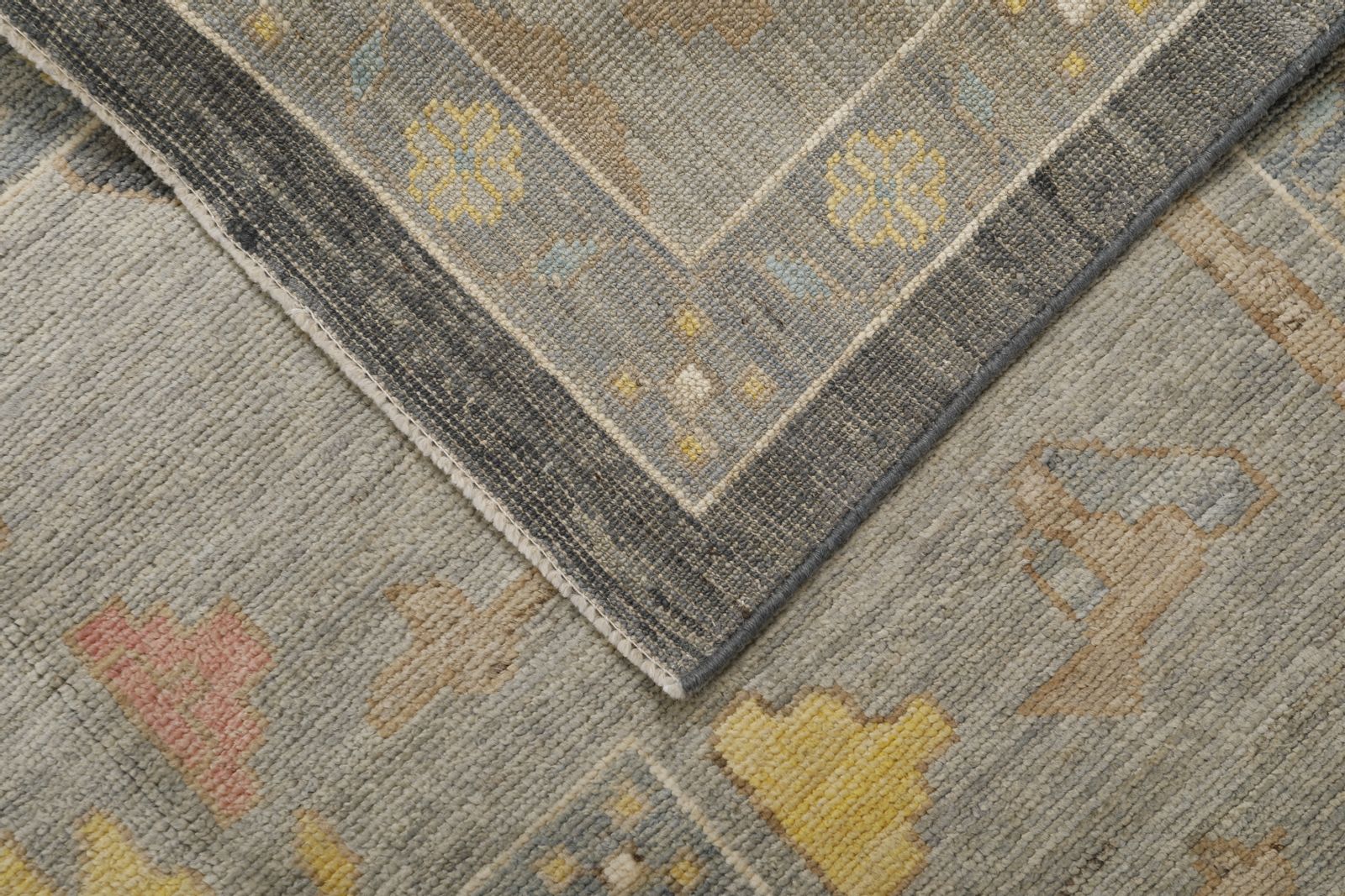 10x14 Gray and Beige Turkish Oushak Rug Handknotted Wool Vintage Design Turkish Rug Handmade Distressed Traditional, Floral Rug