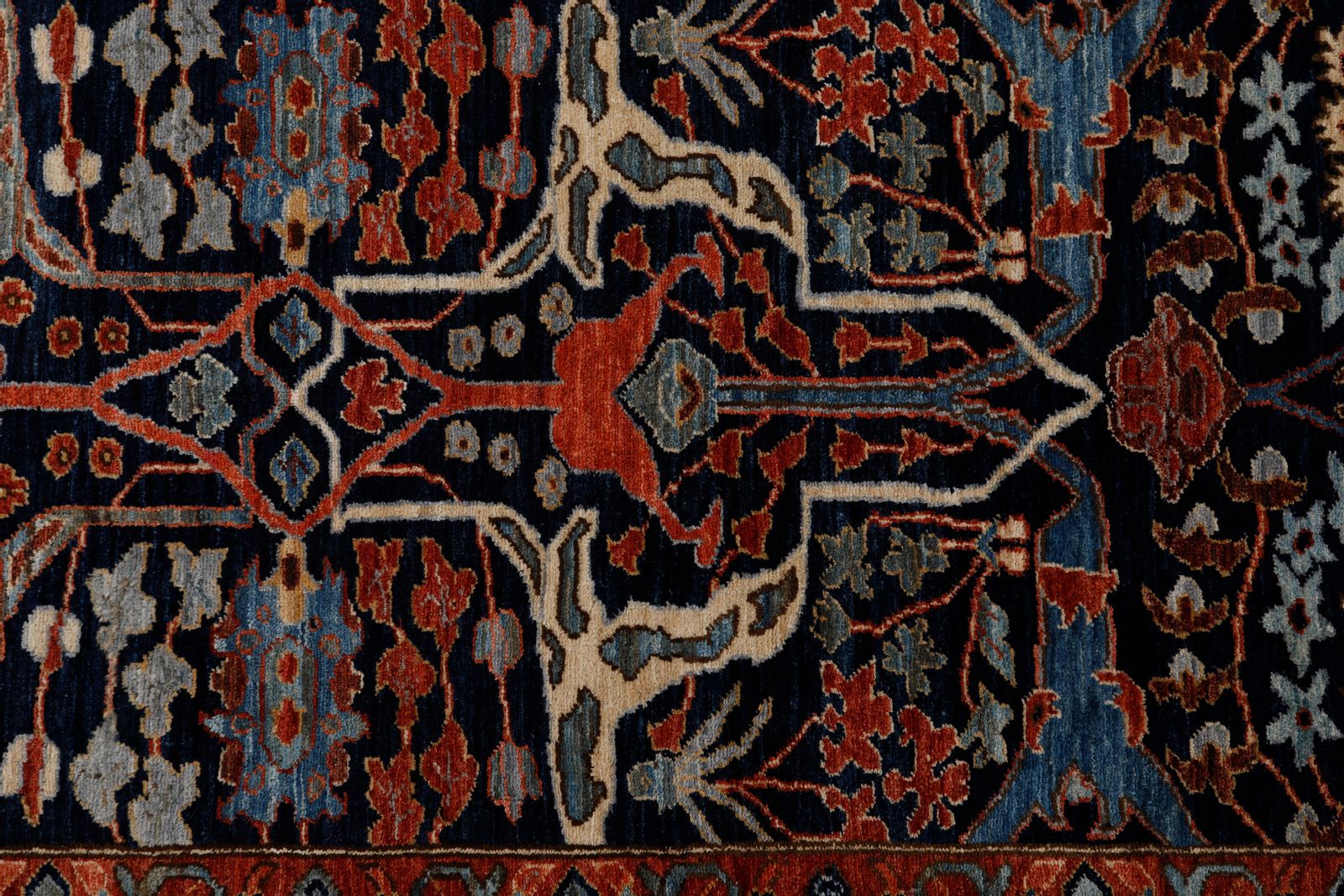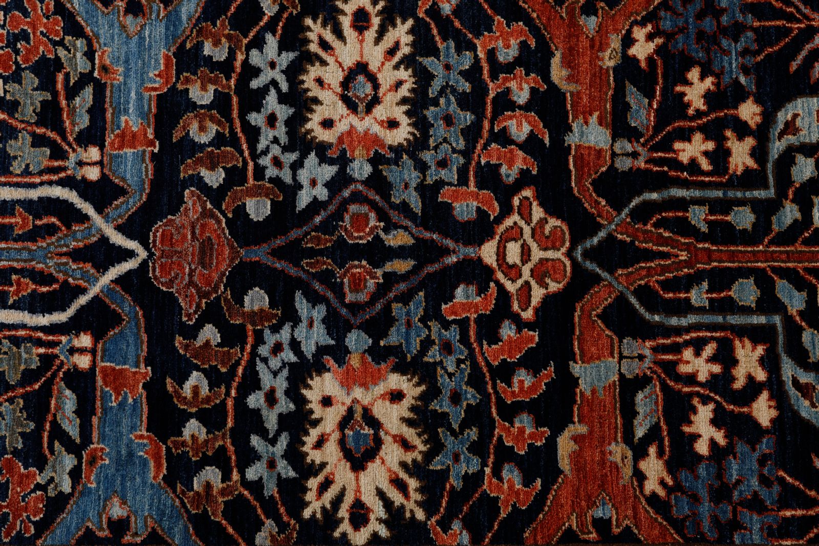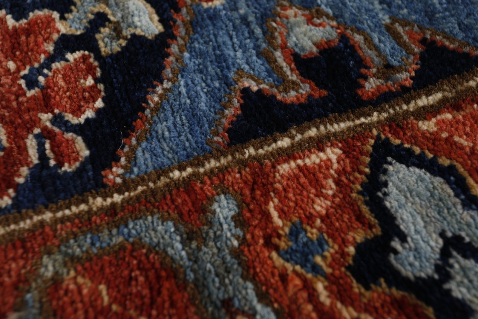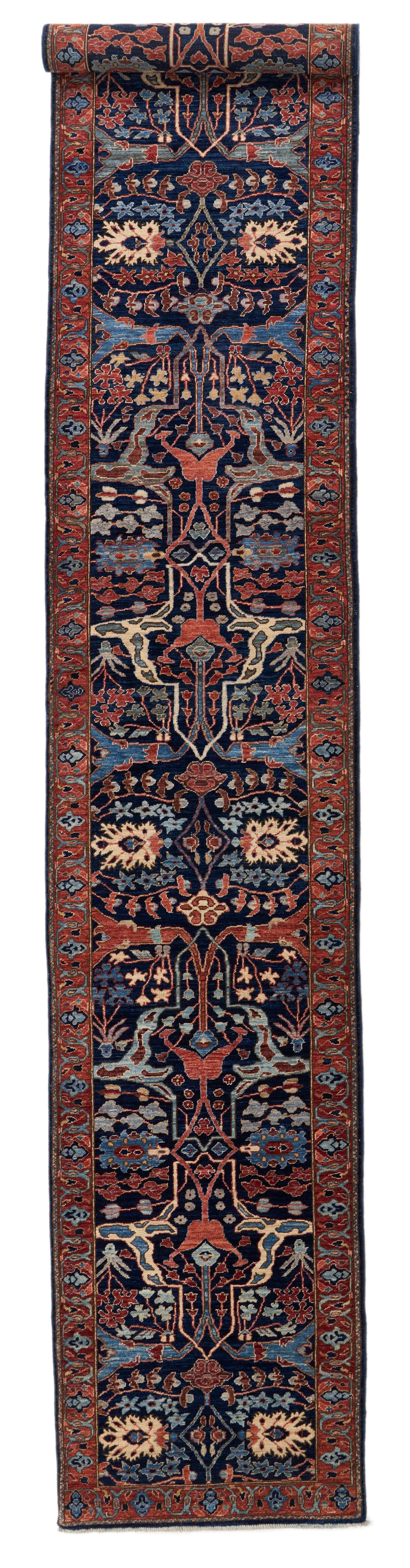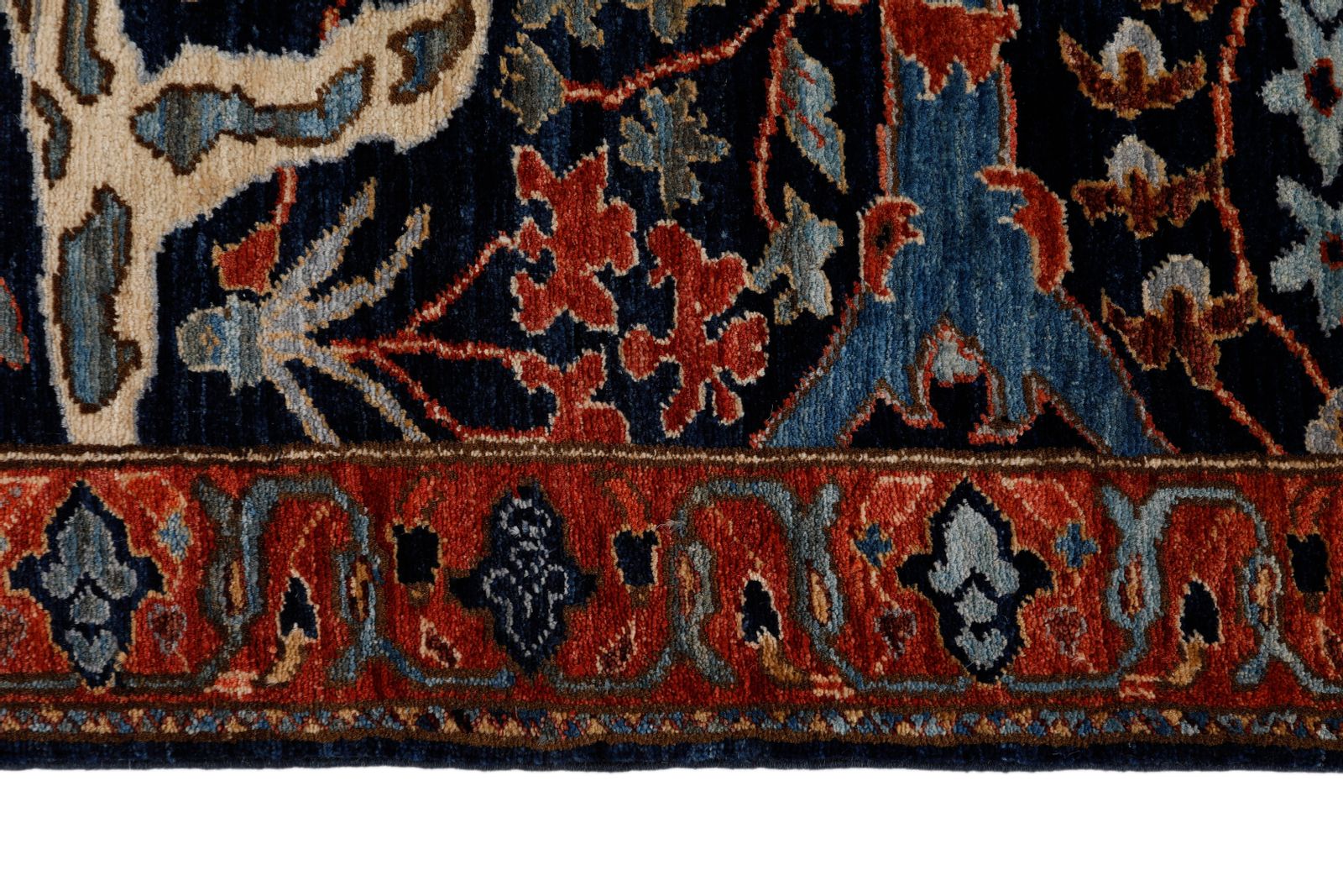 3x17 Navy and Rust Traditional Runner Handknotted Wool Vintage Design Turkish Rug Handmade Distressed Traditional, Floral Runner