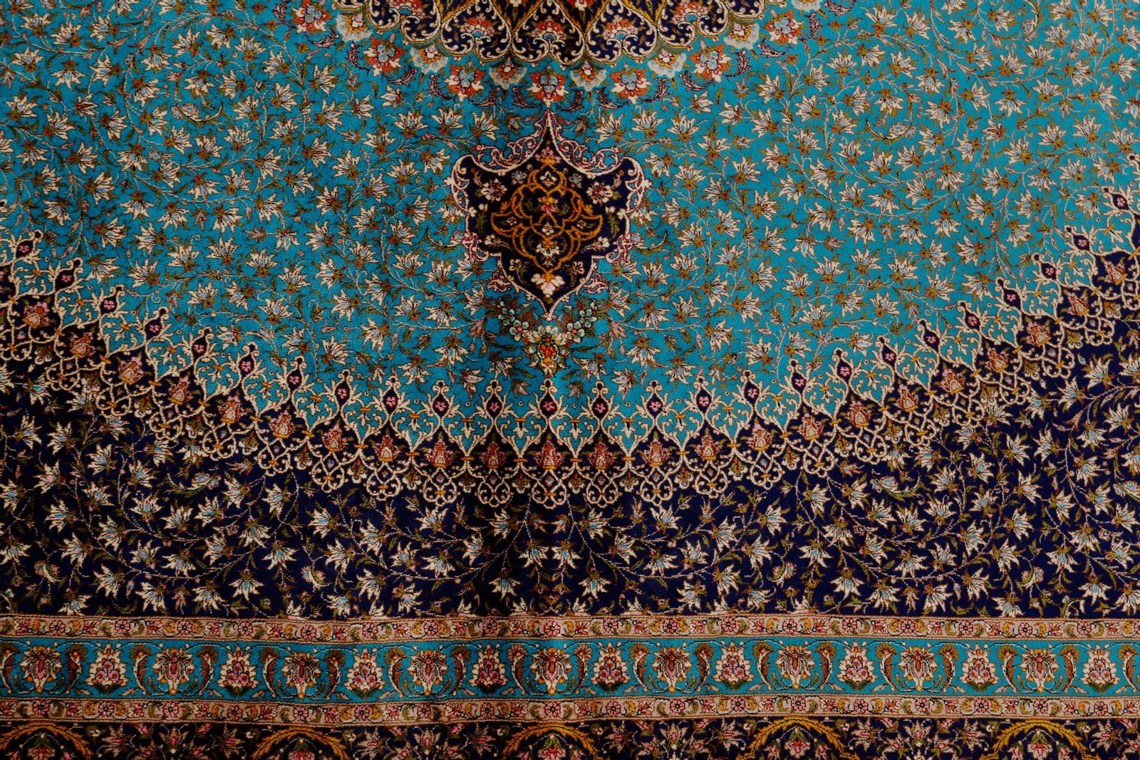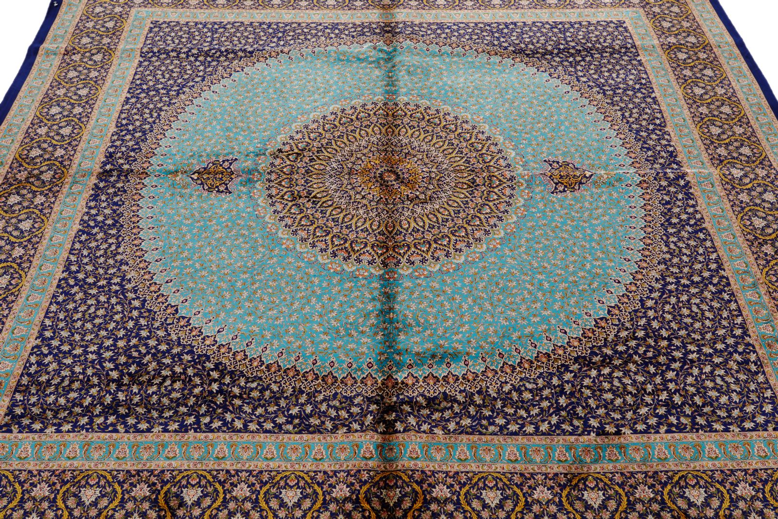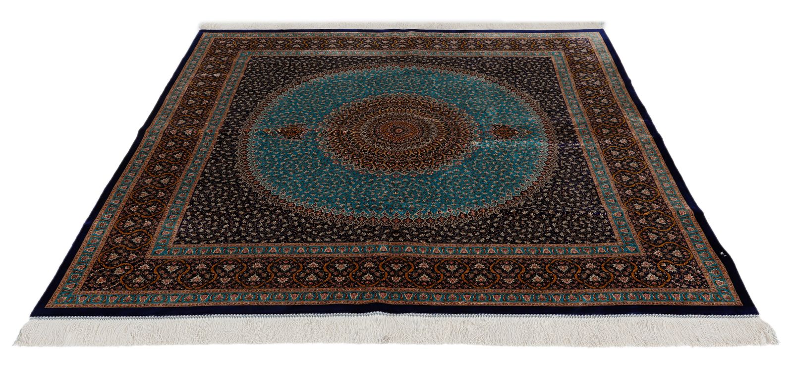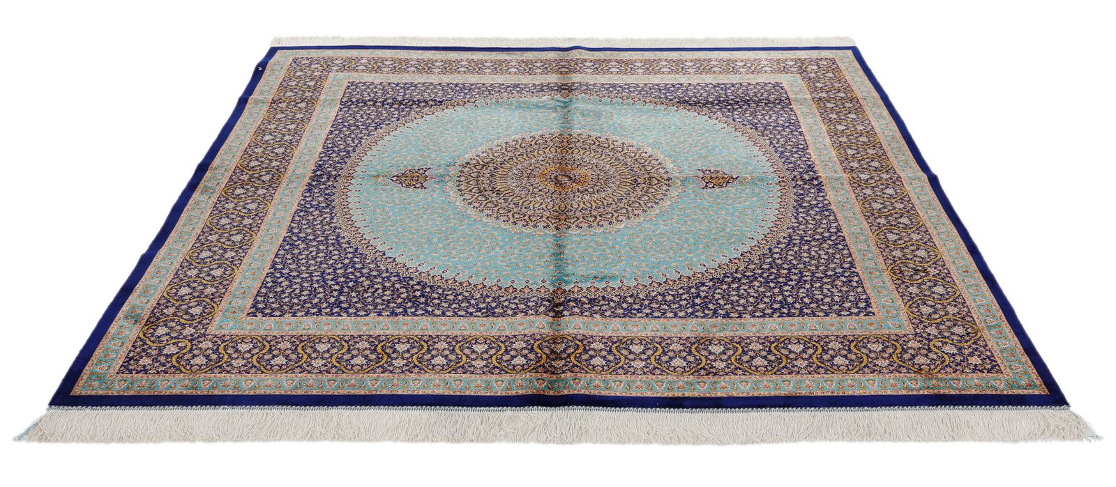 7x7 Light Blue and Navy Turkish Silk Rug