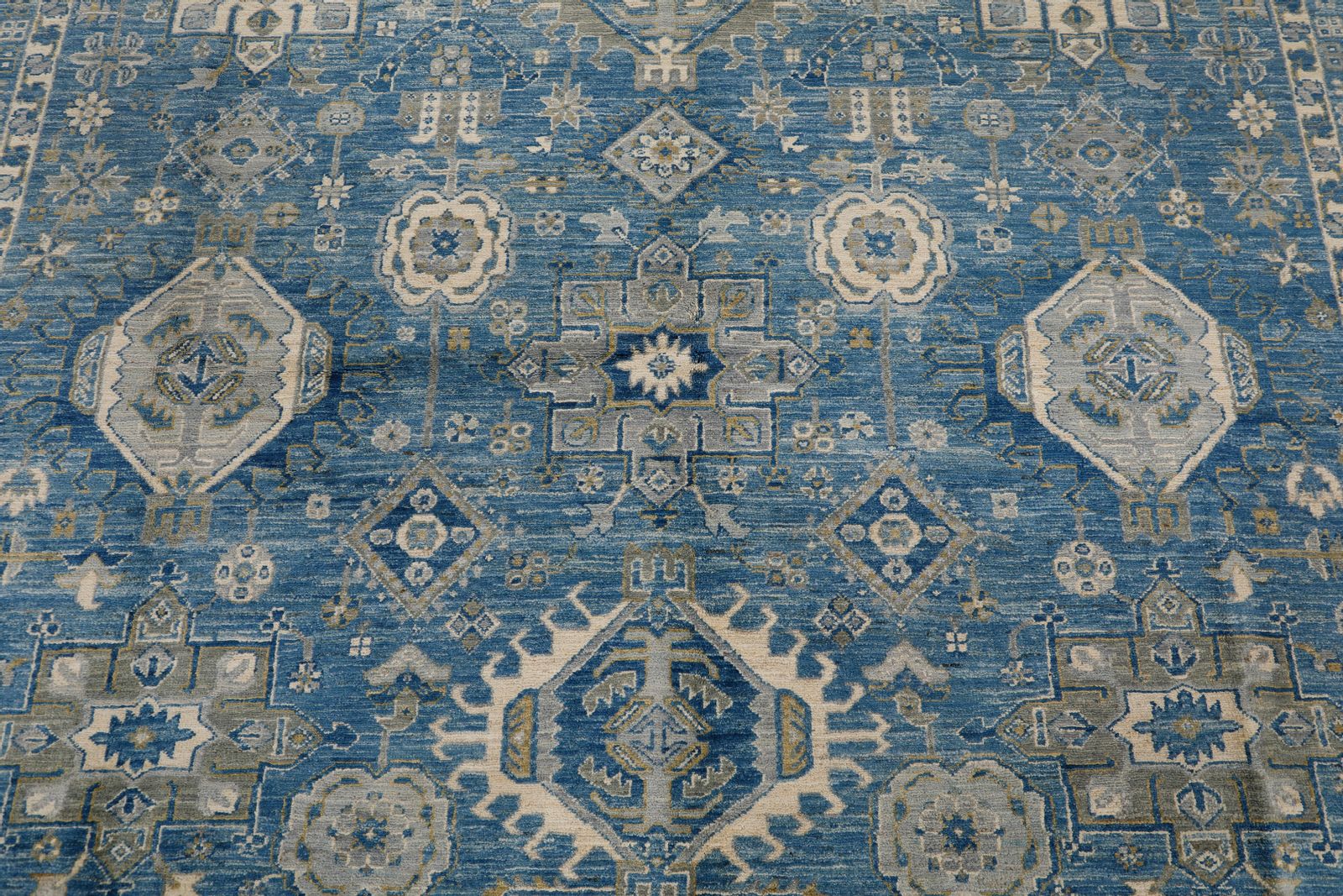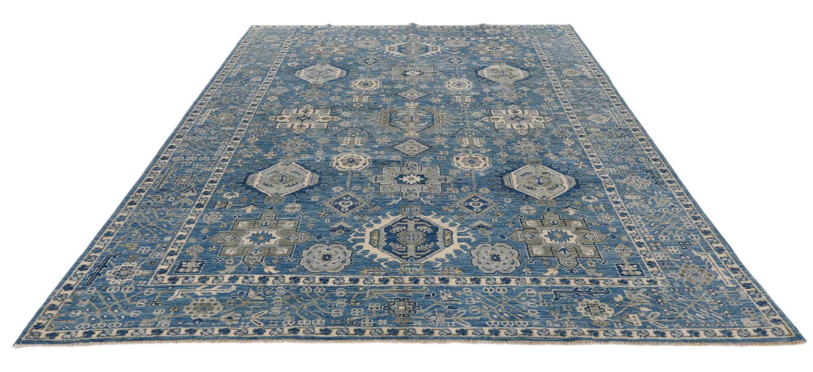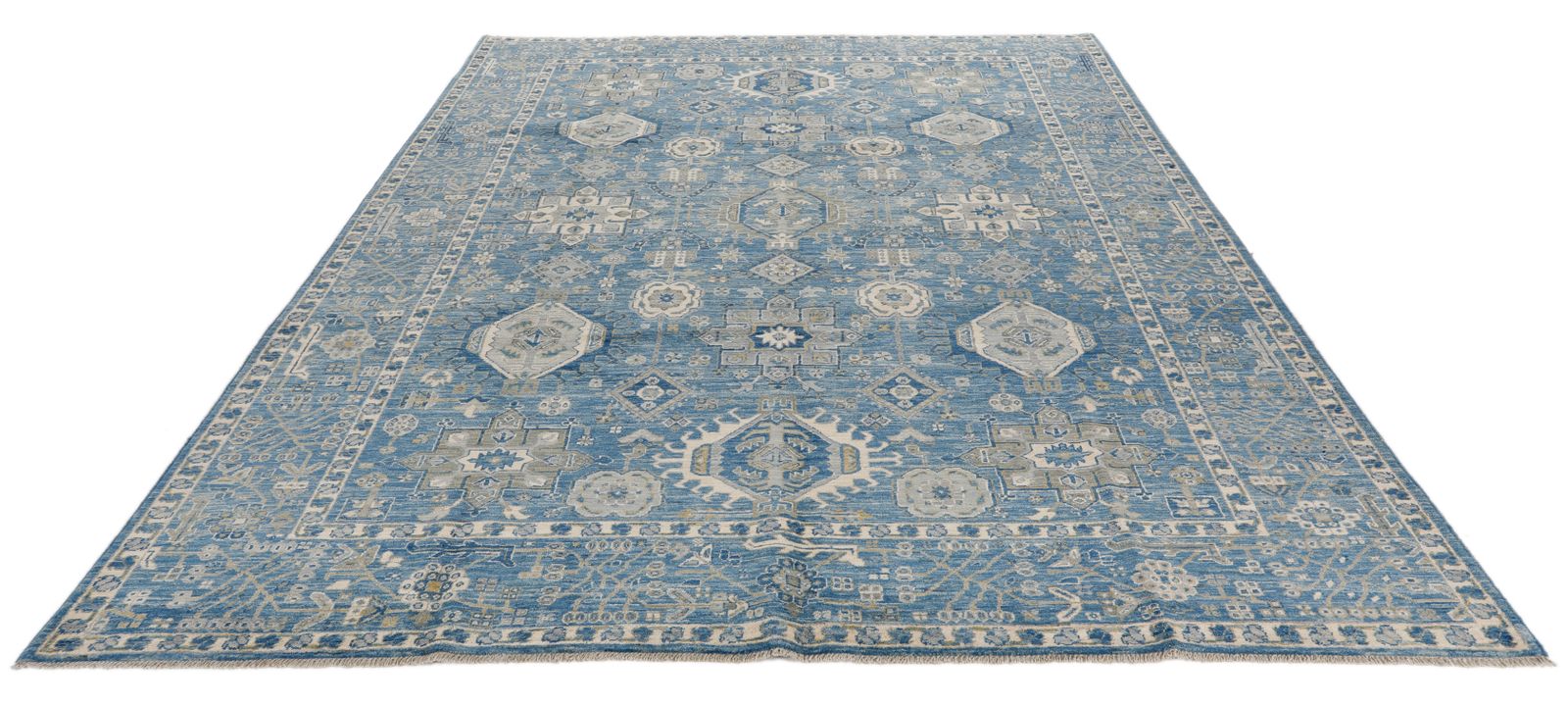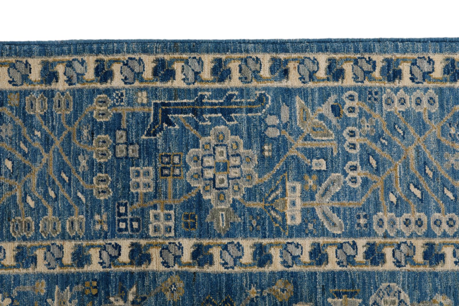 8x10 Blue Anatolian Traditional Rug Handknotted Wool Vintage Design Turkish Rug Handmade Distressed Traditional, Floral Rug