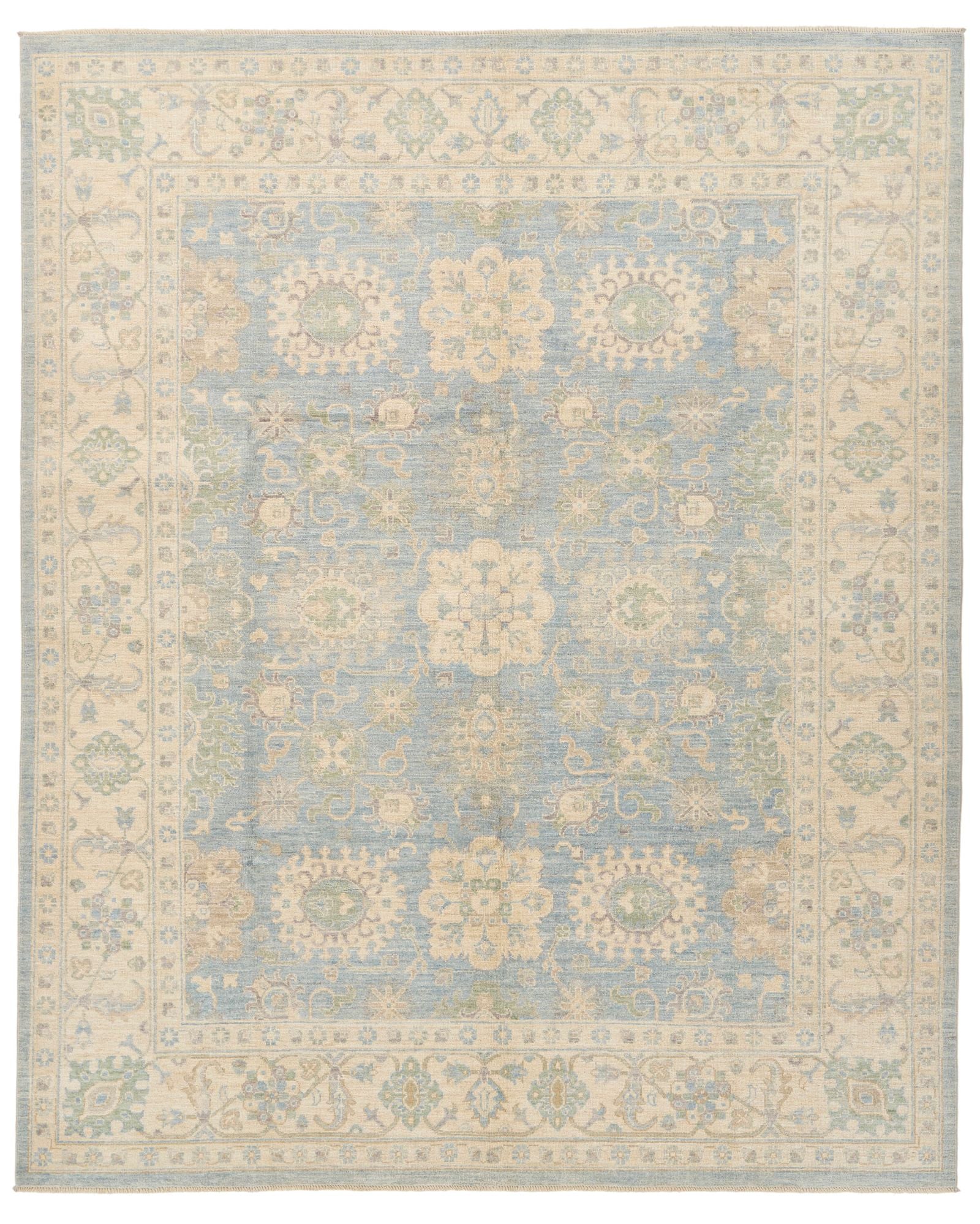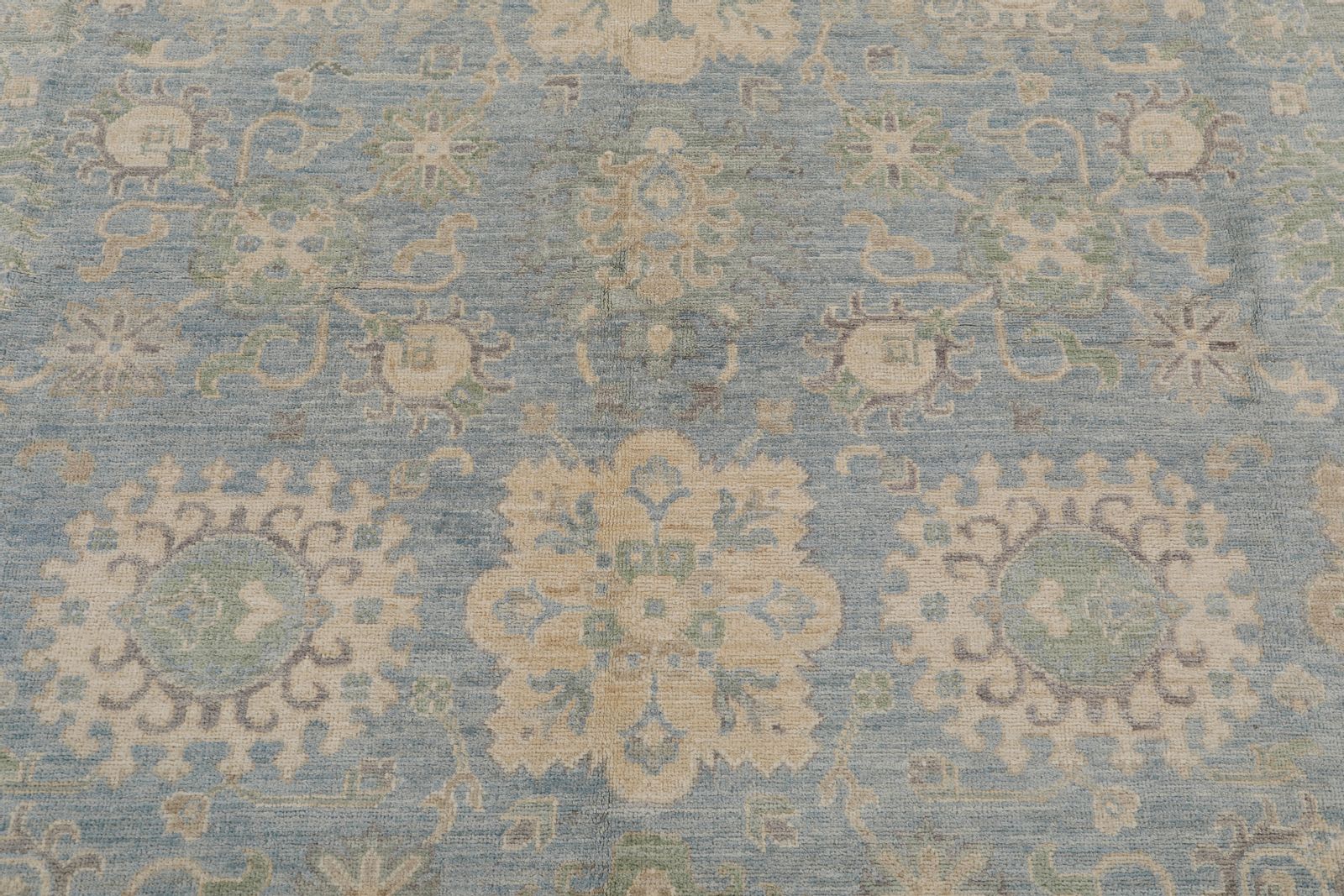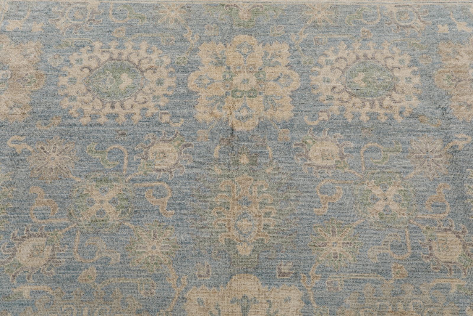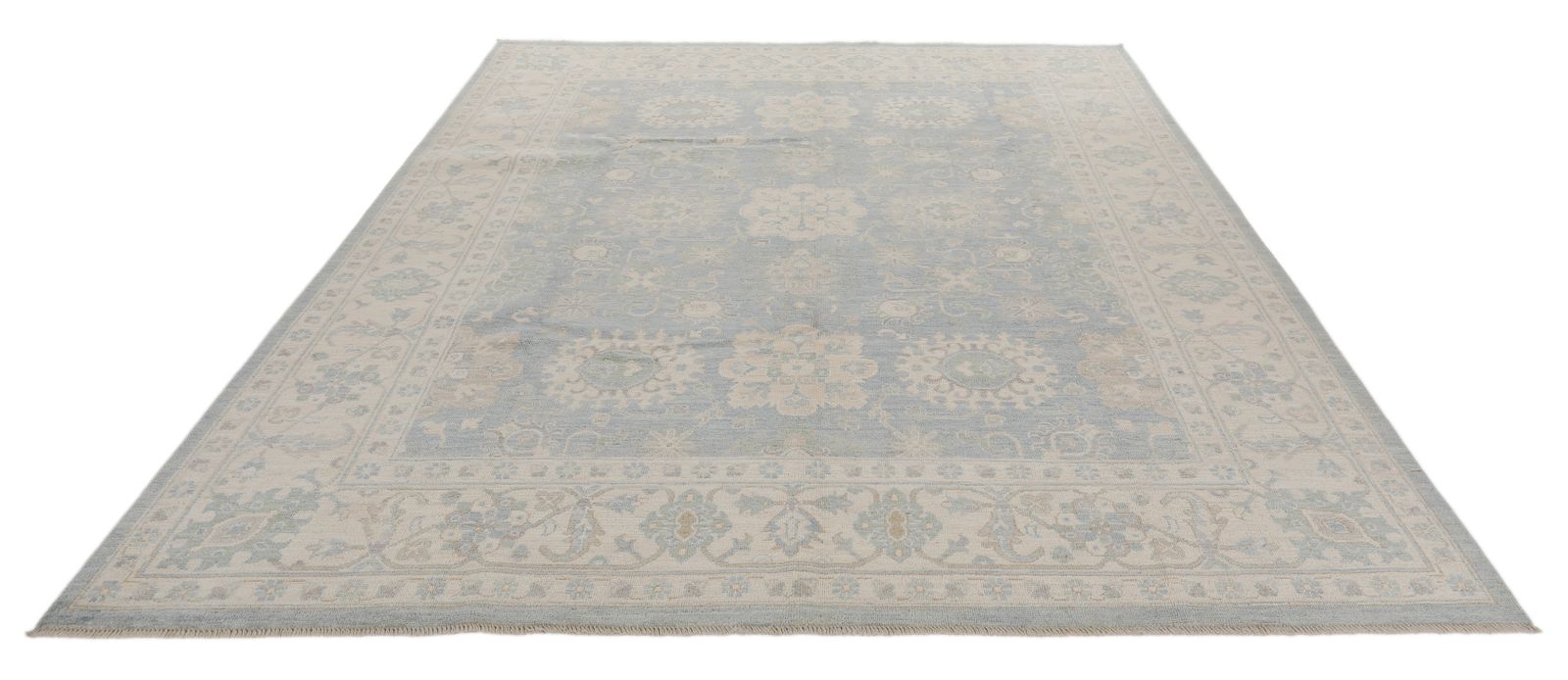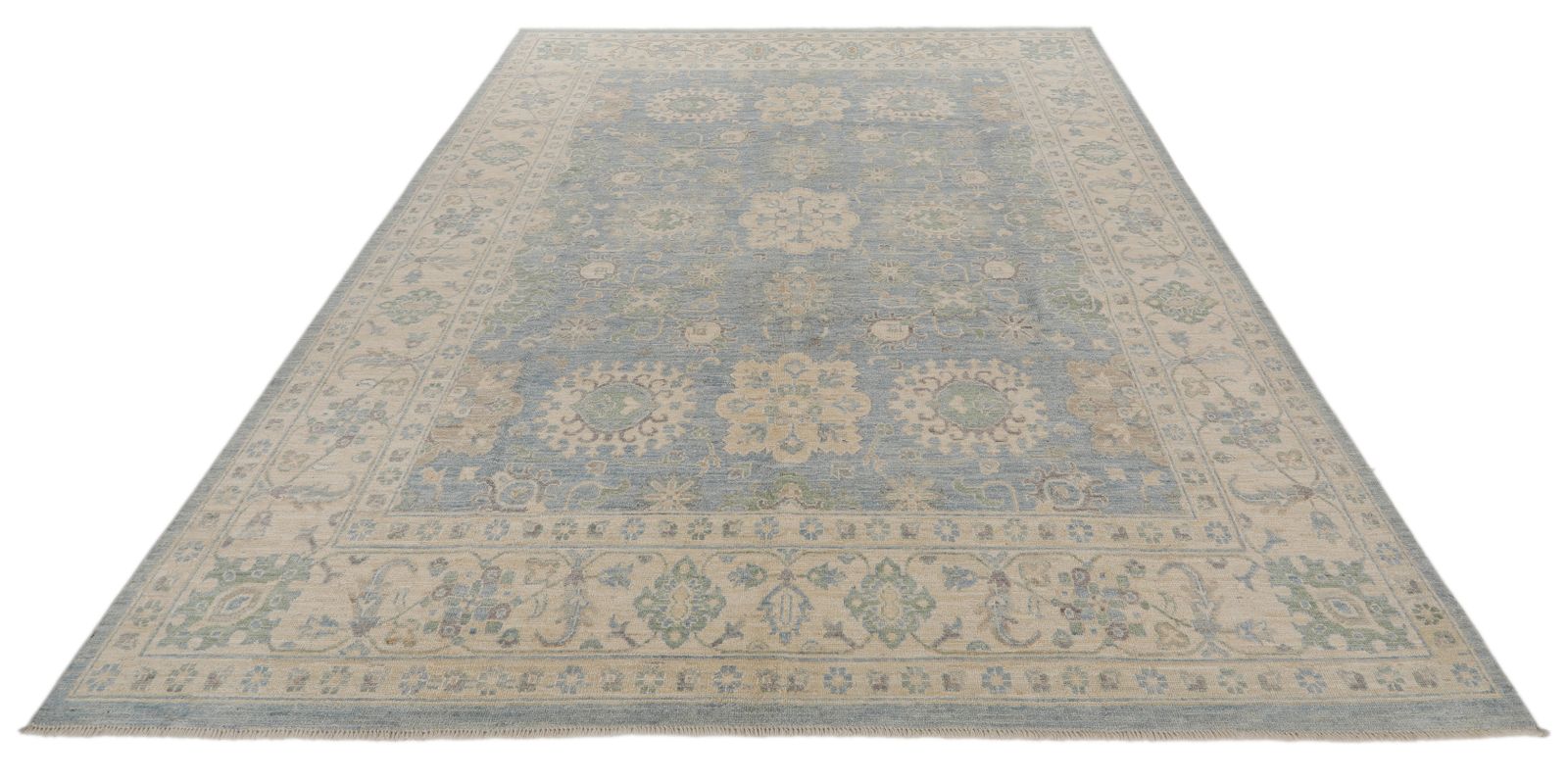 8x10 Blue and Ivory Turkish Oushak Rug Handknotted Wool Vintage Design Turkish Rug Handmade Distressed Traditional, Floral