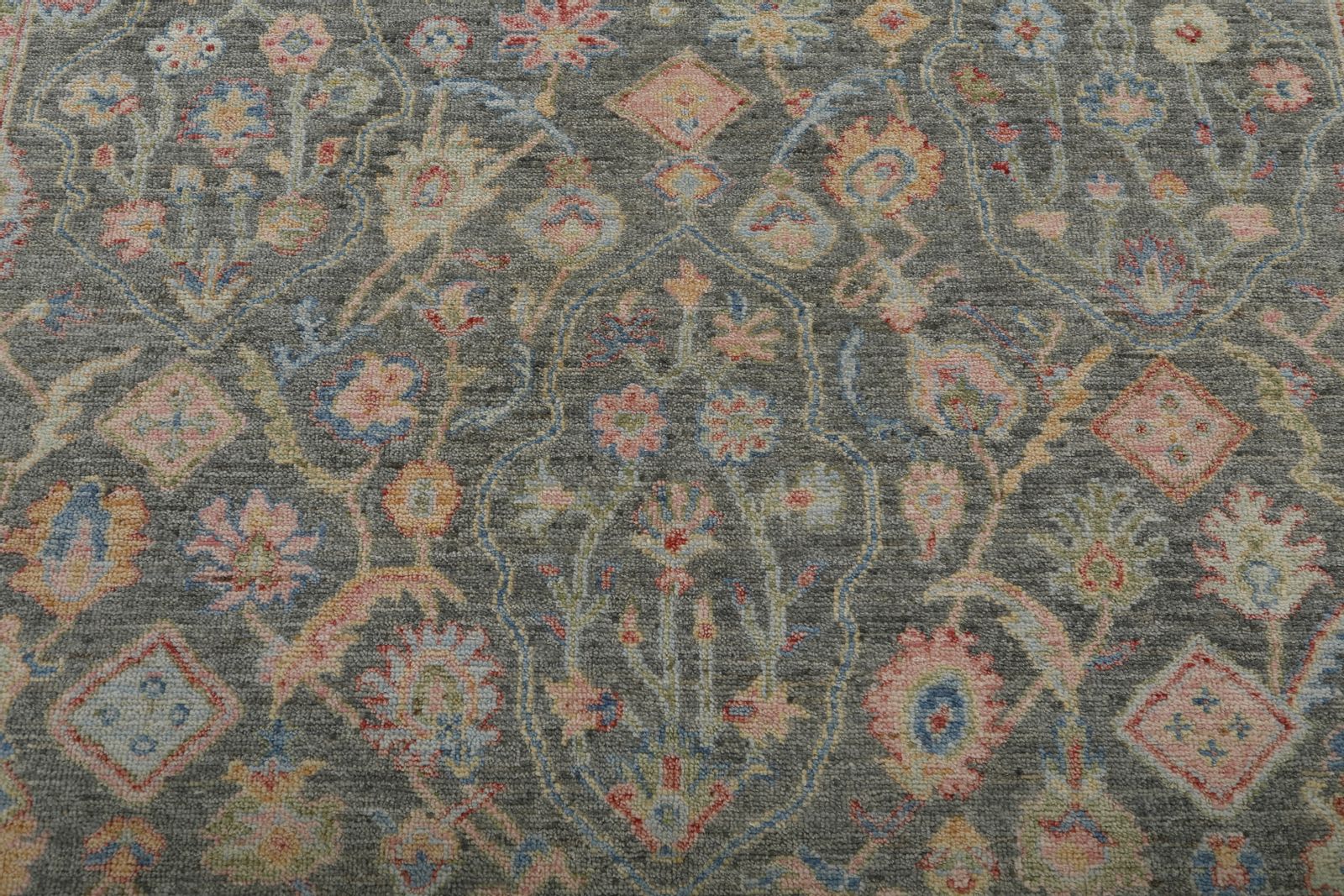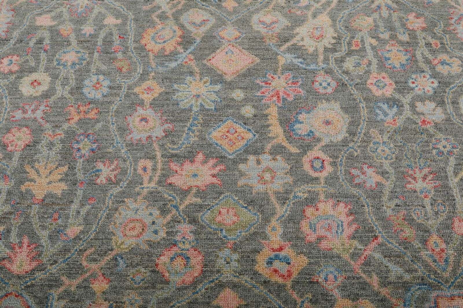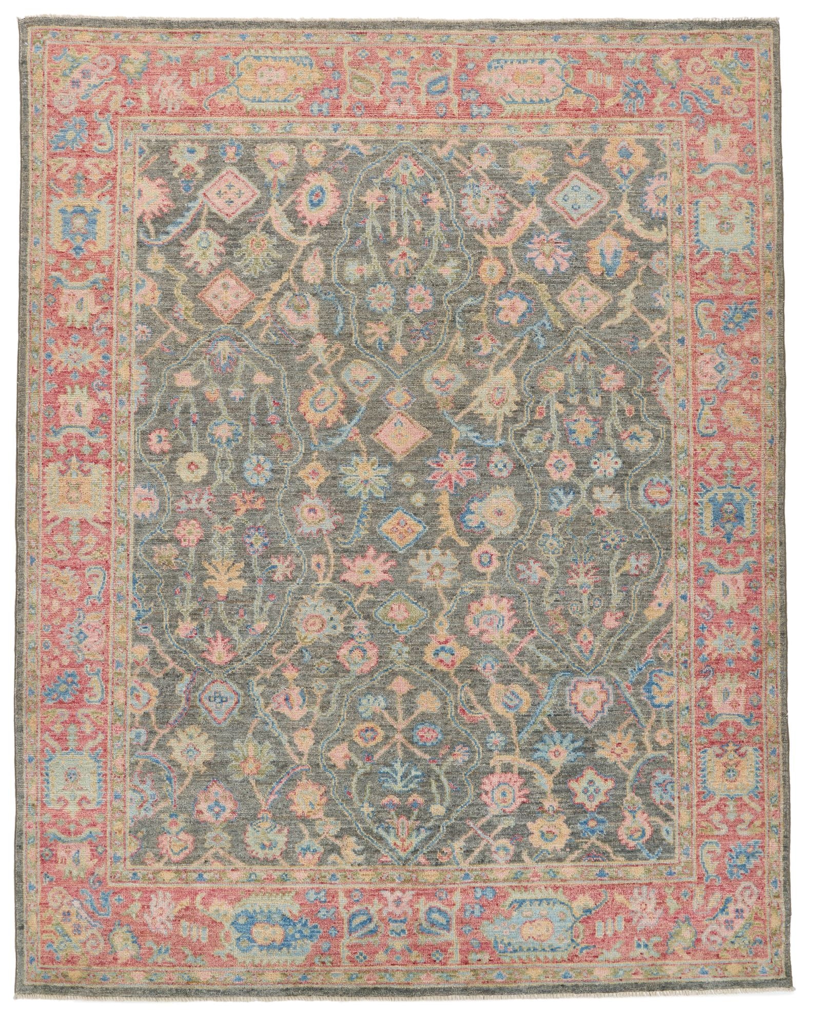 8x10 Gray and Red Turkish Oushak Rug Handknotted Wool Vintage Design Turkish Rug Handmade Distressed Traditional, Floral Rug