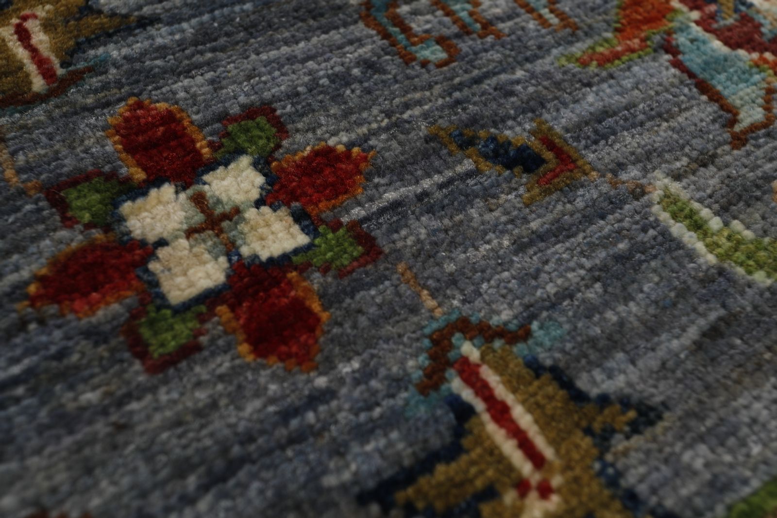 9x12 Gray and Multicolor Turkish Tribal Rug Handknotted Wool Vintage Design Turkish Rug Handmade Distressed Tribal, Floral Rug
