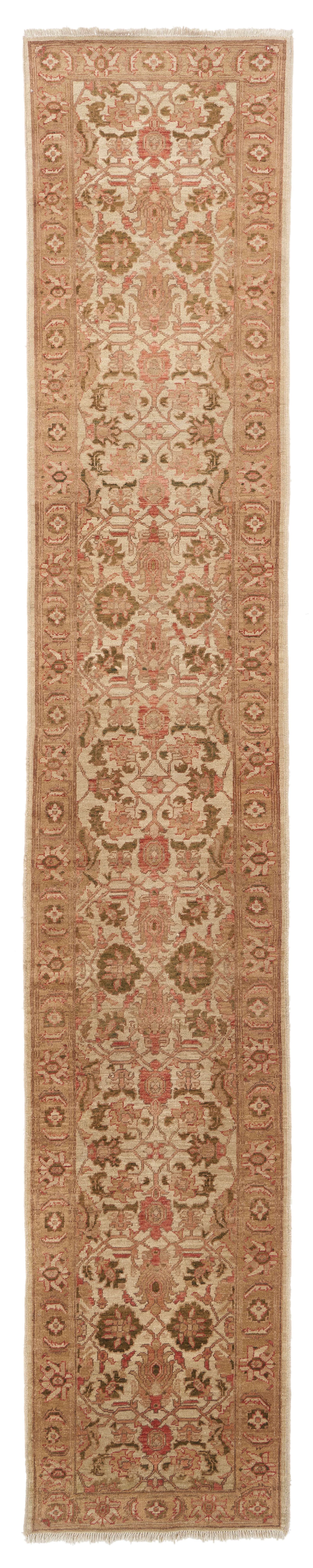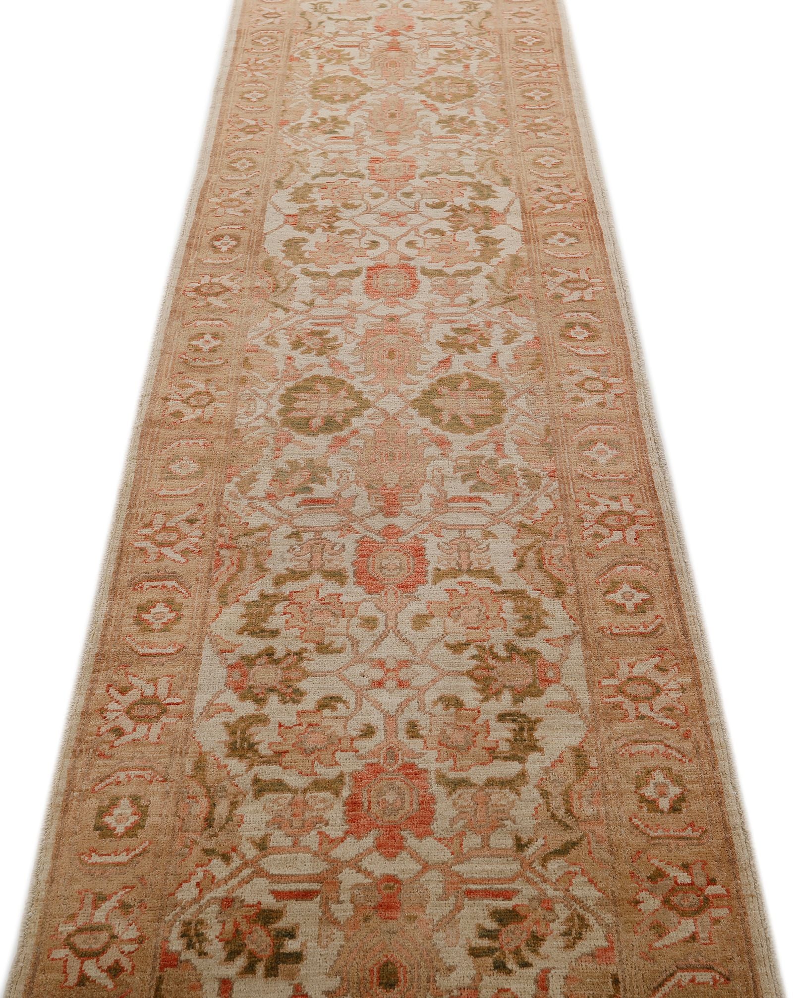 2x15 Green and Brown Anatolian Traditional Runner Handknotted Wool Vintage Design Turkish Rug Handmade Distressed Traditional, Floral Runner