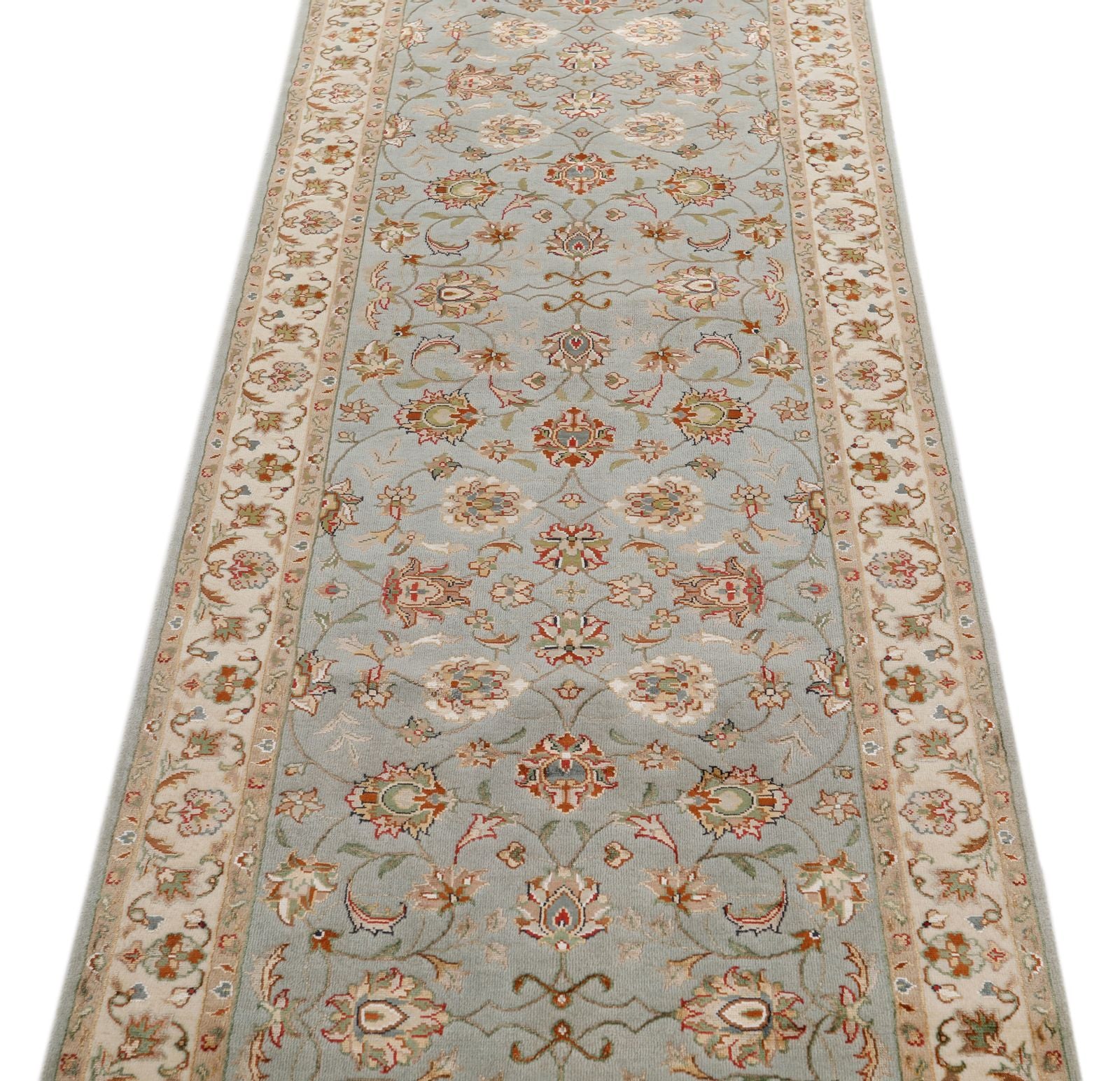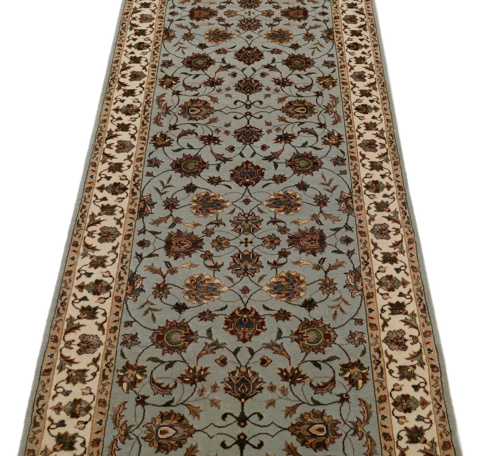 3x10 Gray and Ivory Turkish Silk Handknotted Wool Vintage Design Turkish Runner Handmade Distressed Silk, Floral Runner