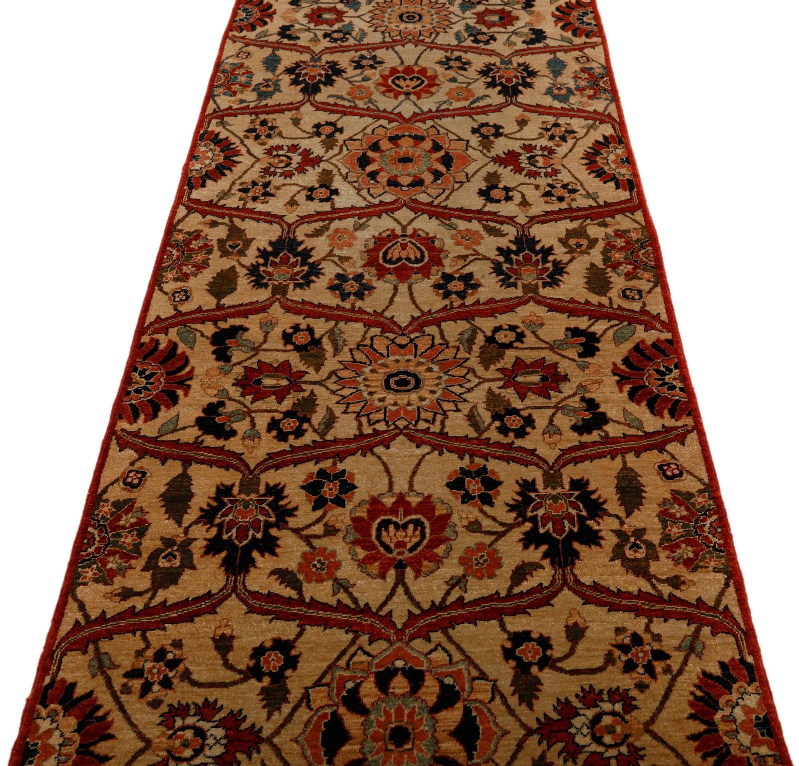 3x13 Brown and Multicolor Anatolian Traditional Runner Handknotted Wool Vintage Design Turkish Rug Handmade Distressed Traditional, Floral Runner