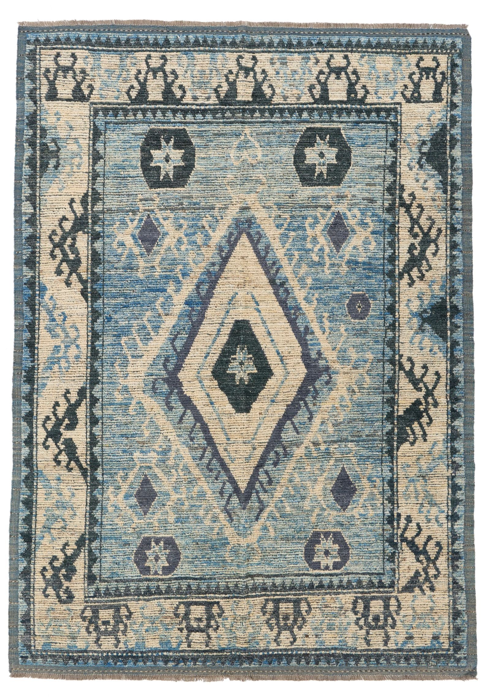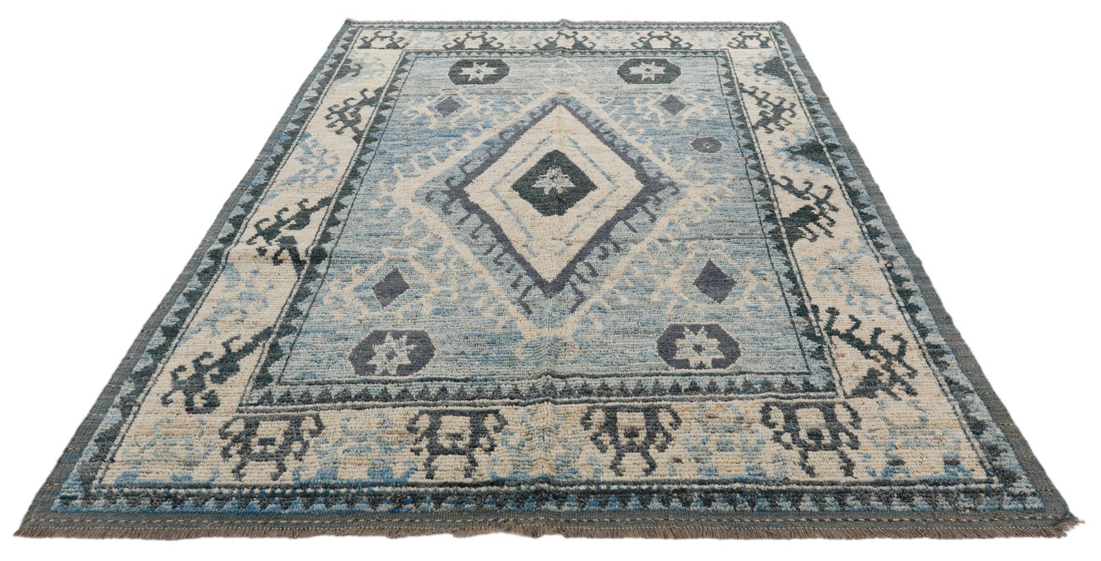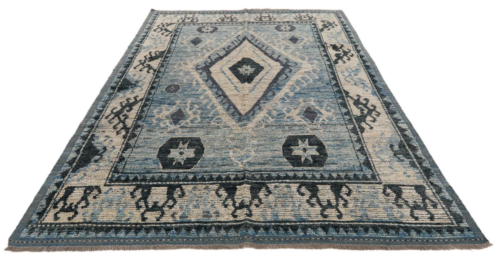 7x10 Blue and Ivory Anatolian Traditional Rug