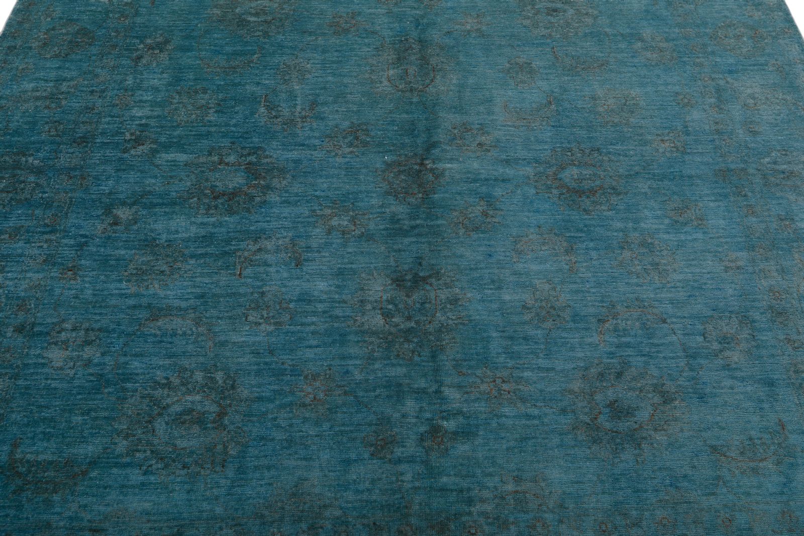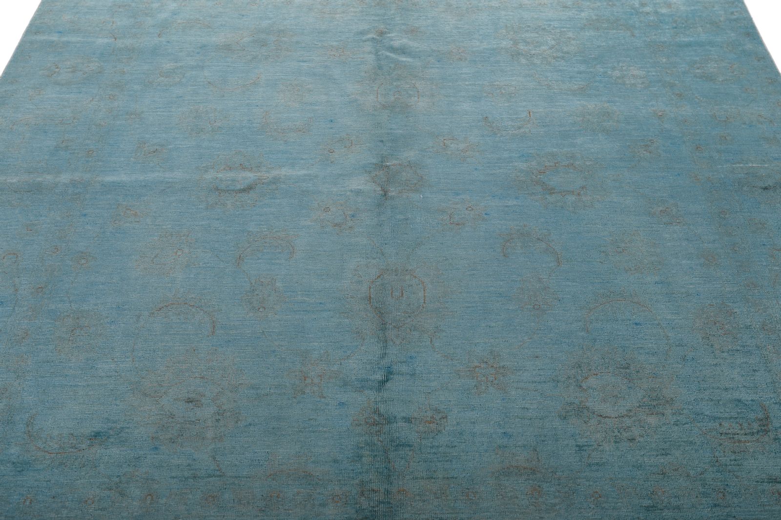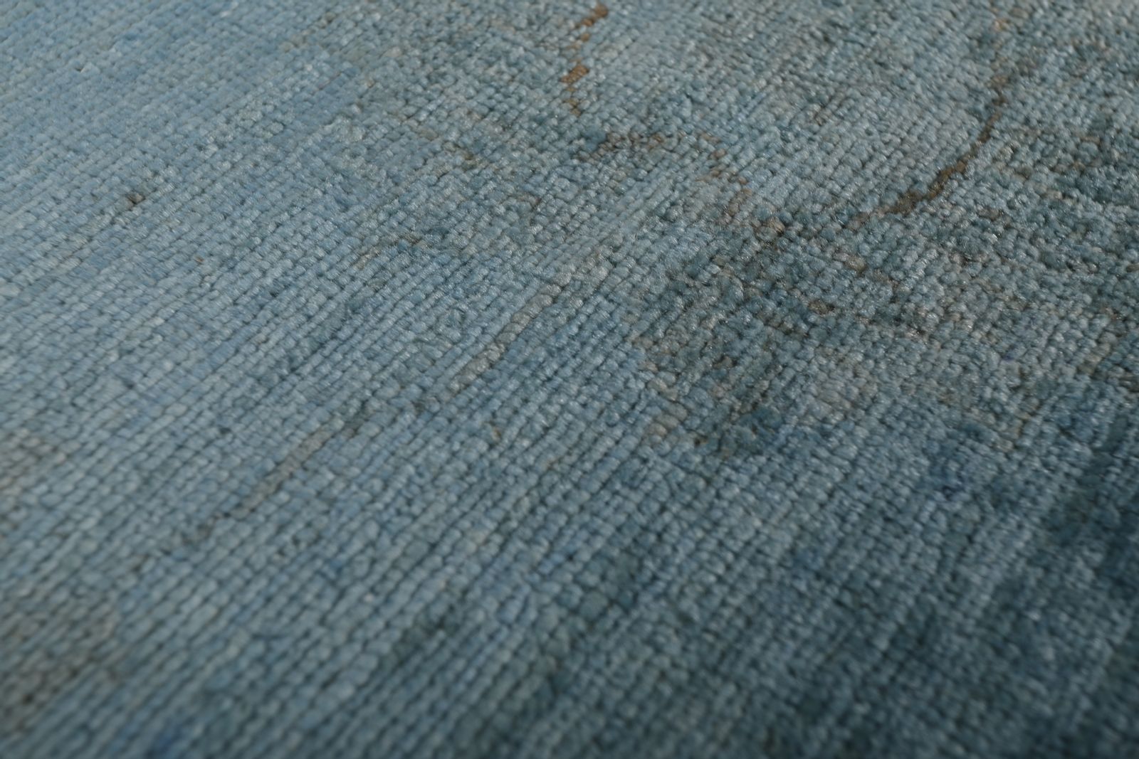 7x7 Blue and Gray Anatolian Traditional Handknotted Wool Vintage Design Turkish Rug Handmade Distressed Silk, Floral