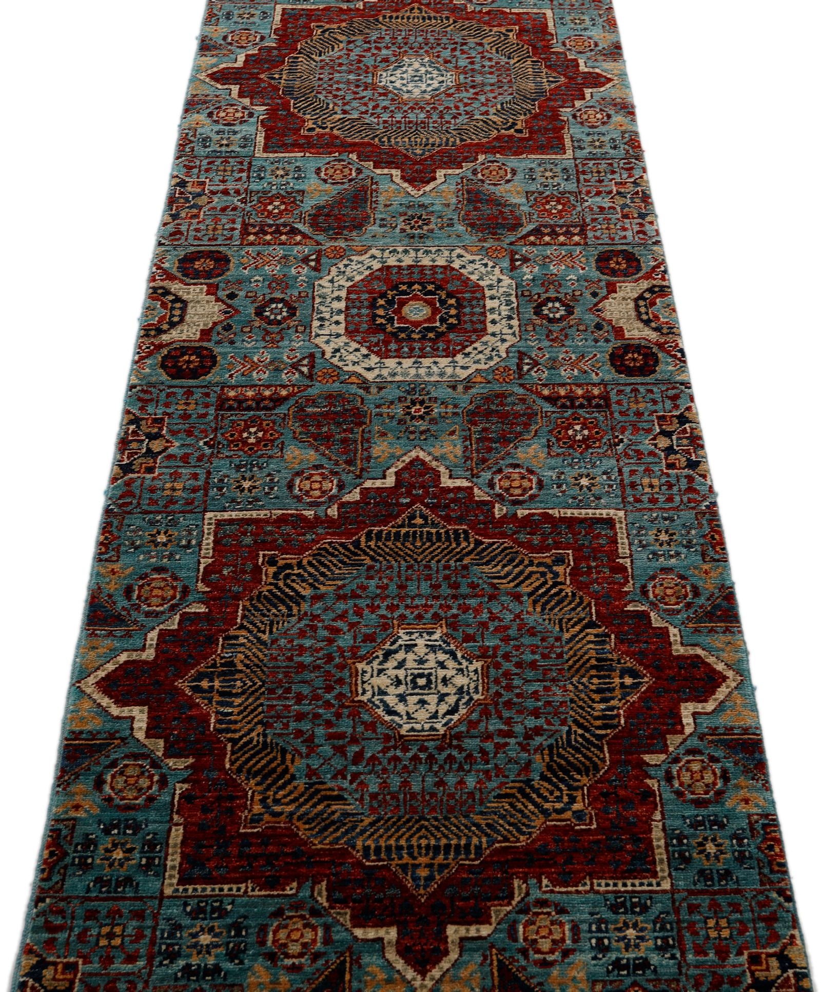 Mamluk rugs are a testament to the grandeur and sophistication of the Mamluk Empire that ruled Egypt and Syria from the 13th to the 16th century. These luxurious rugs are known for their intricate geometric and floral designs, often featuring a central medallion and repeating patterns. Mamluk rugs are meticulously handwoven using high-quality wool and silk, giving them a lustrous sheen and plush texture. The rugs are named after the Mamluk sultans who commissioned their production and are considered a symbol of the empire's artistic and cultural achievements. Today, Mamluk rugs continue to captivate with their timeless beauty and are one of the most preferred rugs for living rooms and bedrooms.