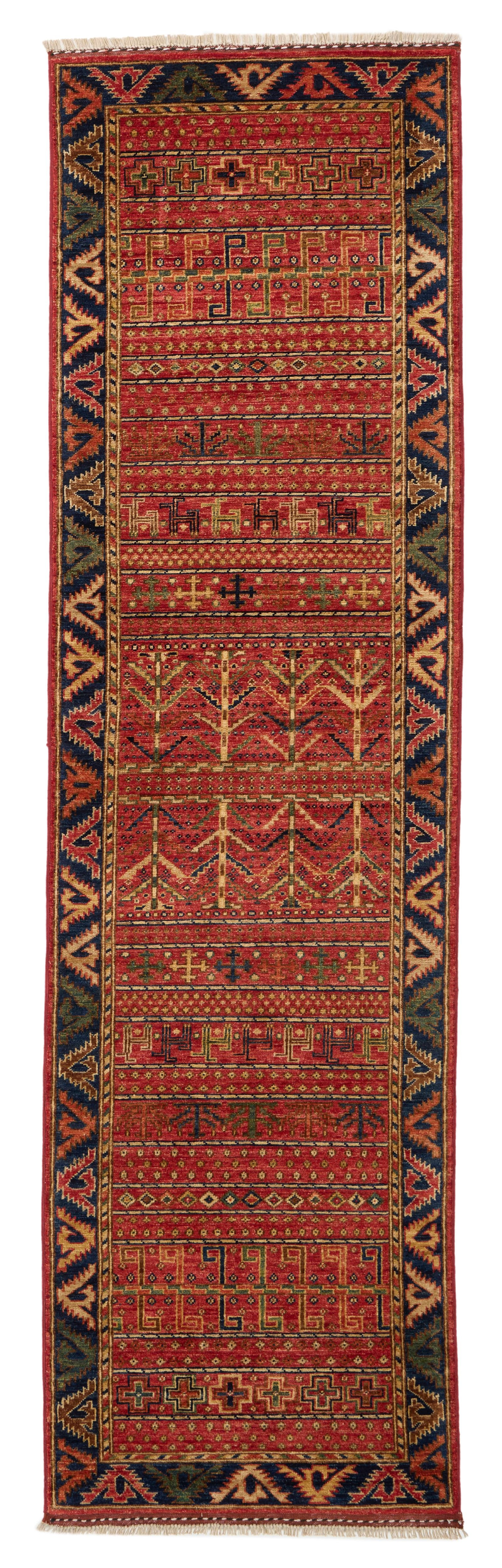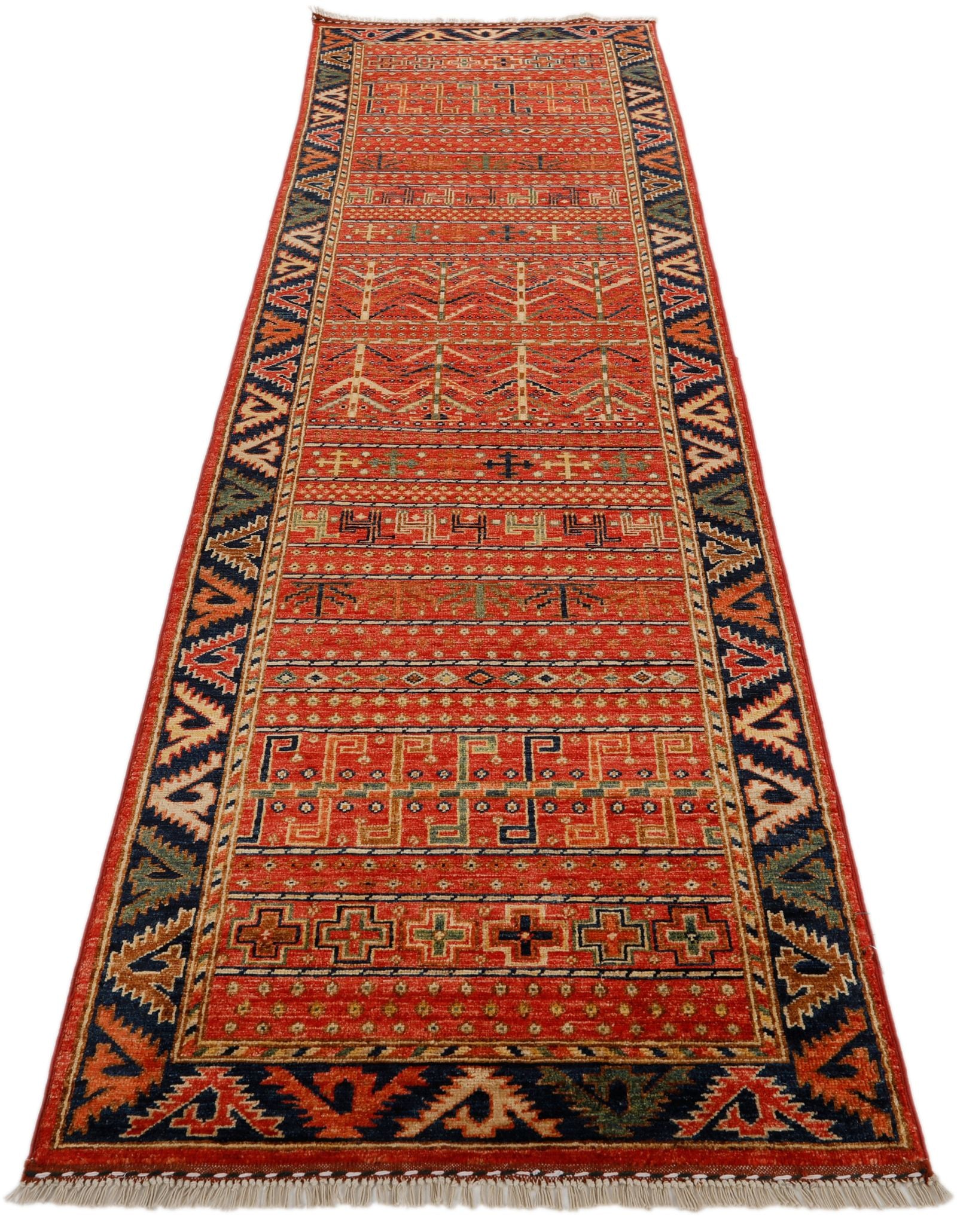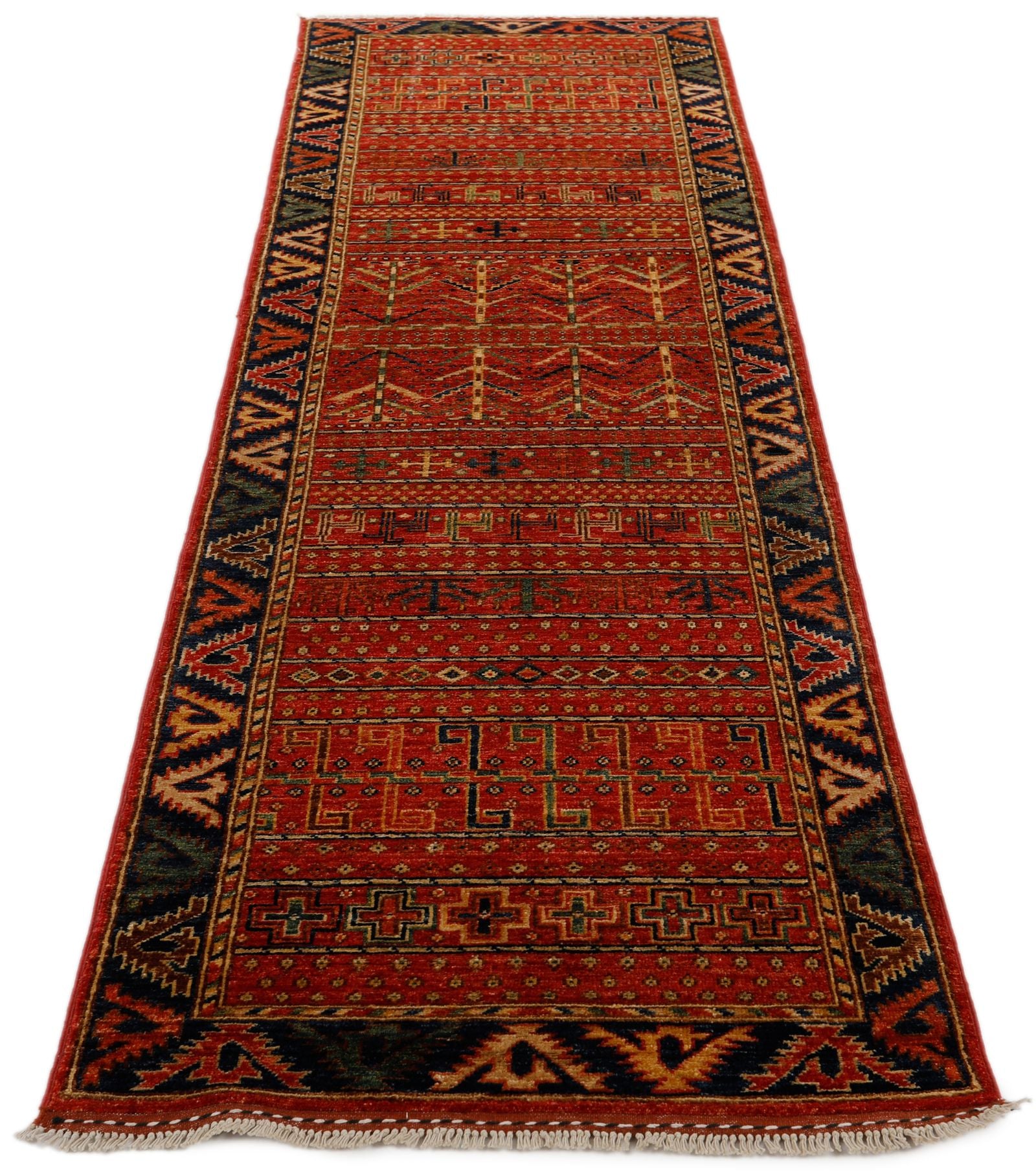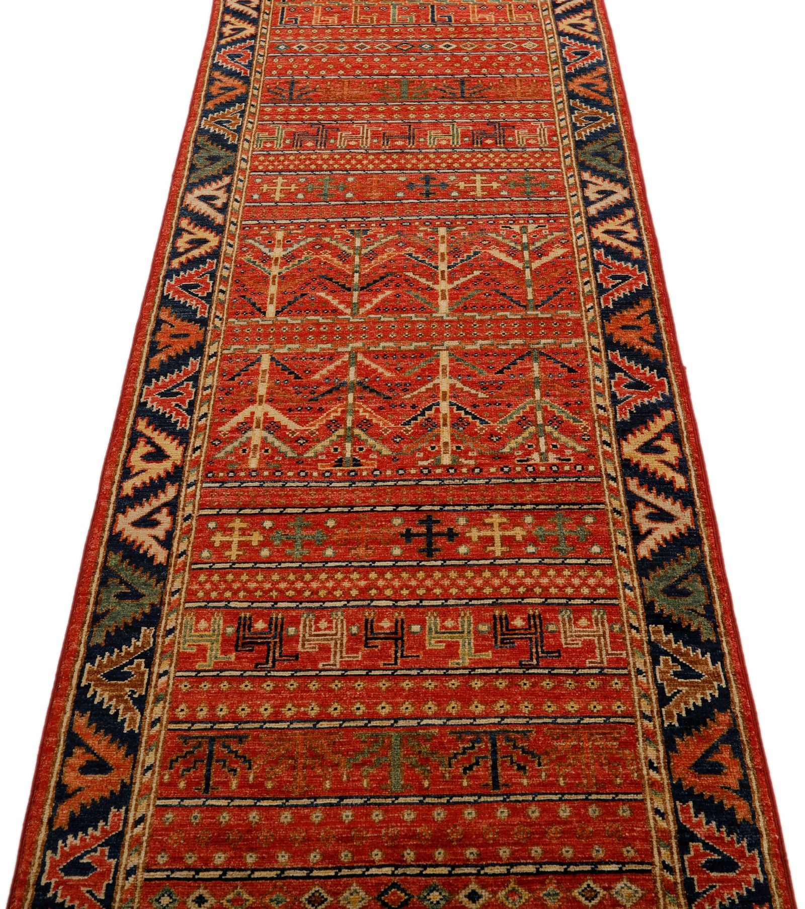 3x10 Rust and Navy Anatolian Traditional Runner Handknotted Wool Vintage Design Turkish Rug Handmade Distressed Traditional, Floral Runner