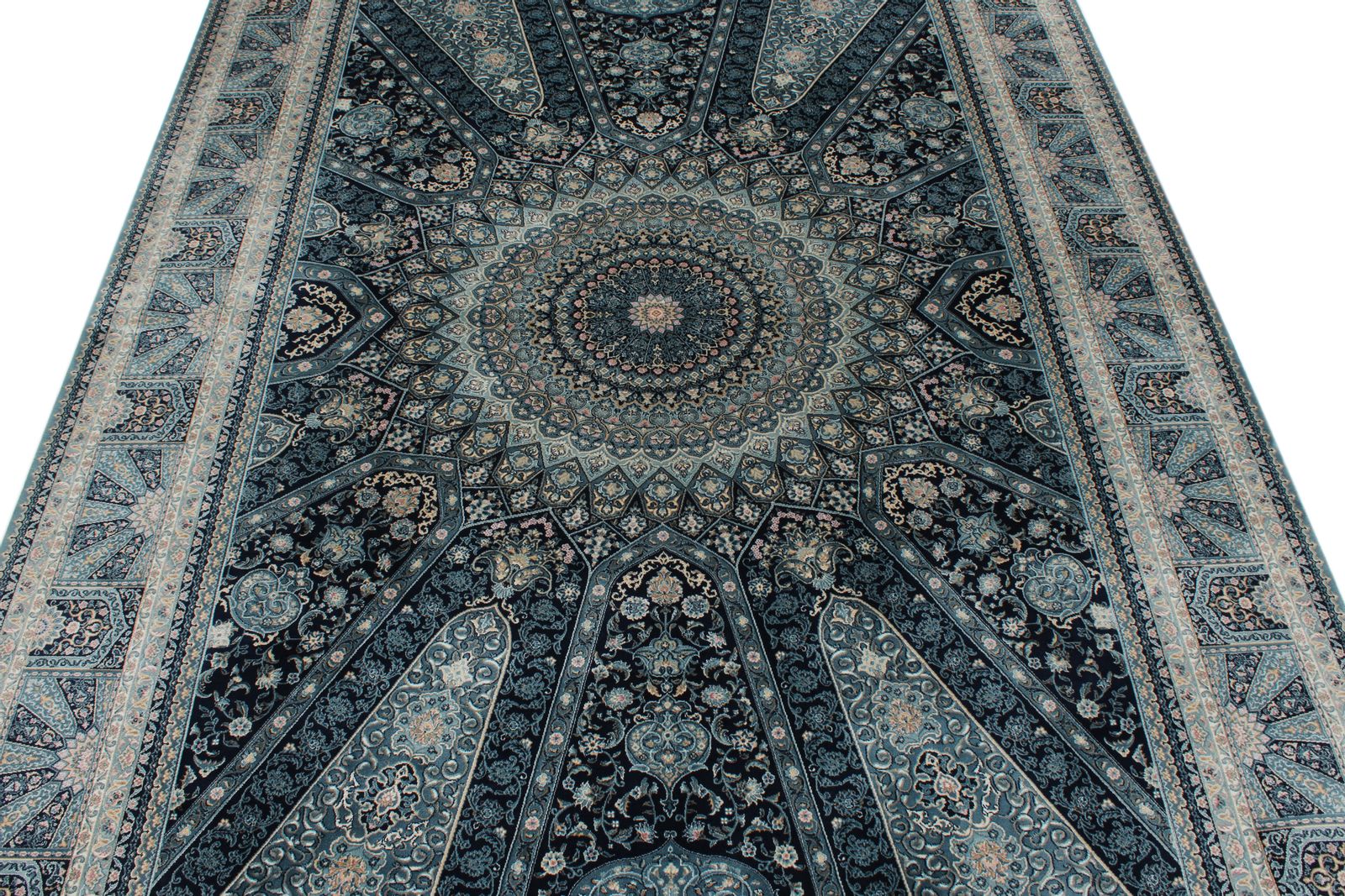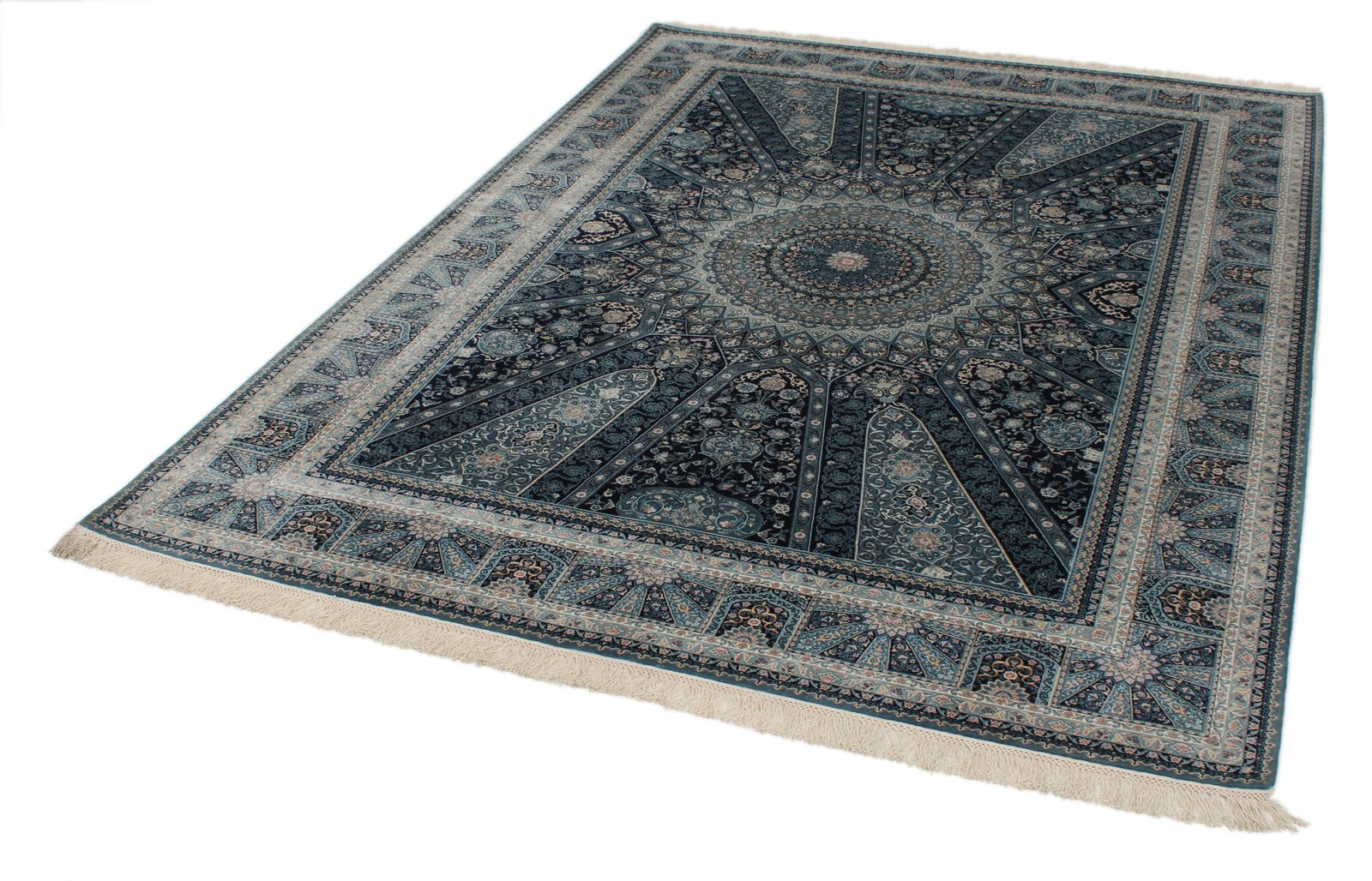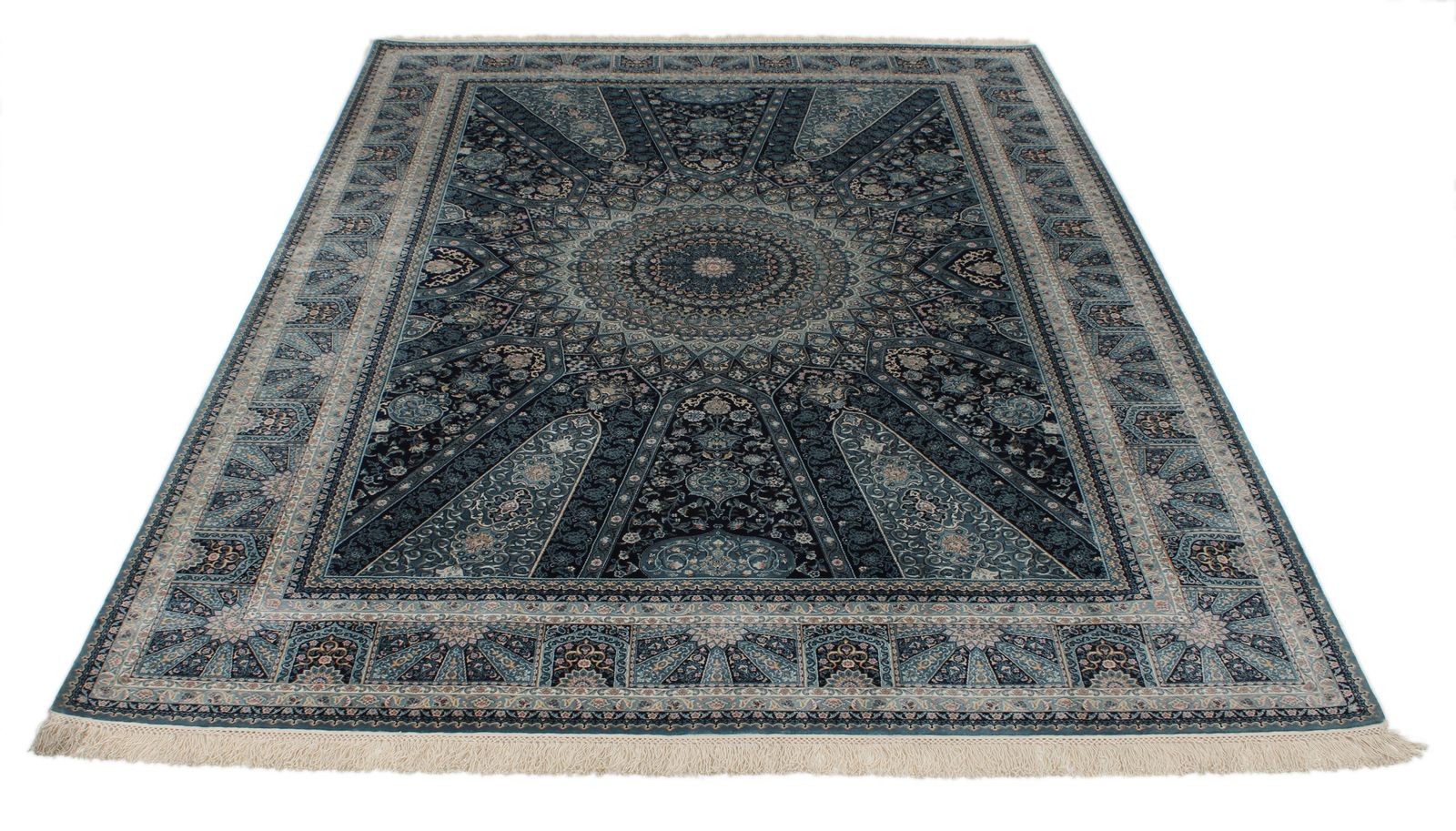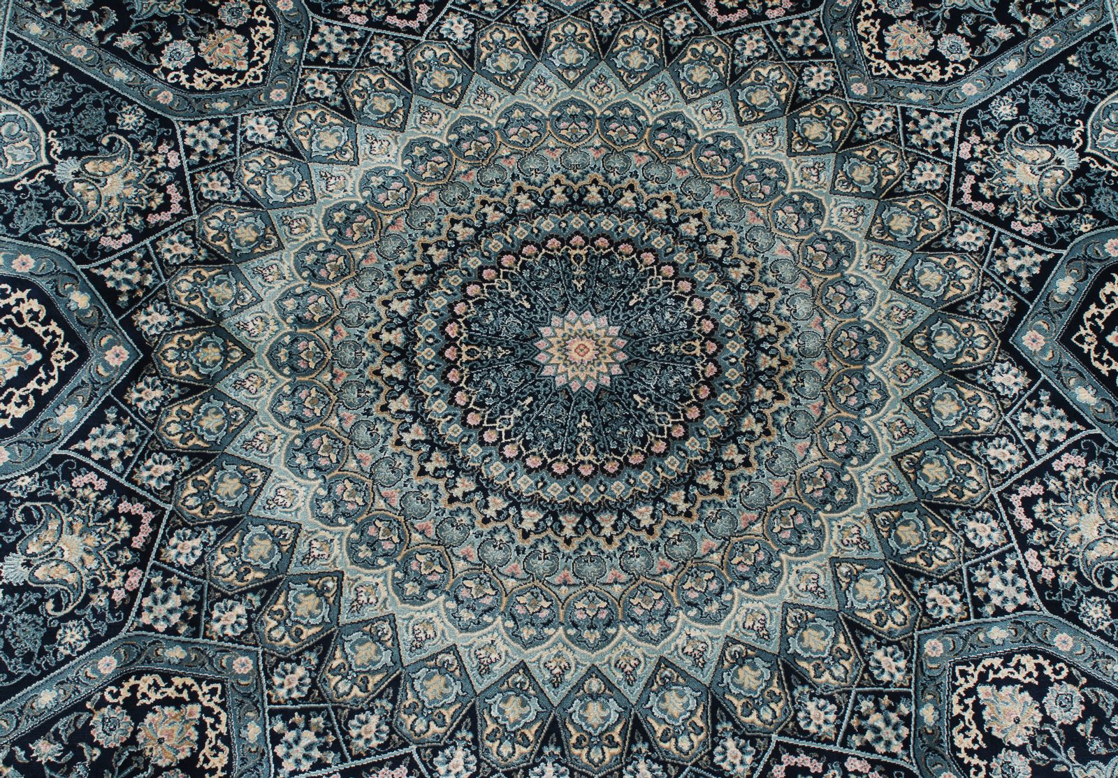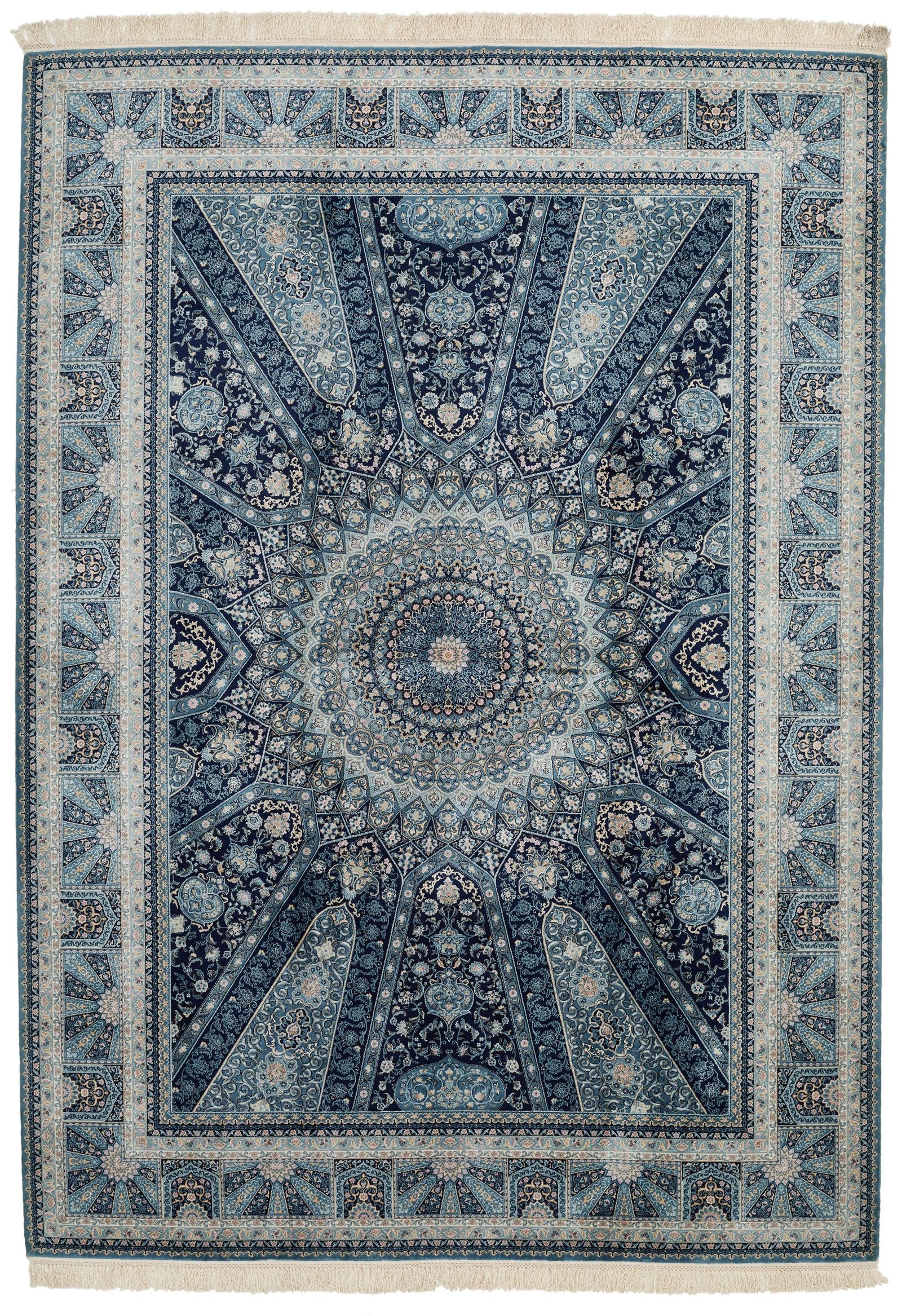 6x8 Navy and Multicolor Turkish Antep Rug
