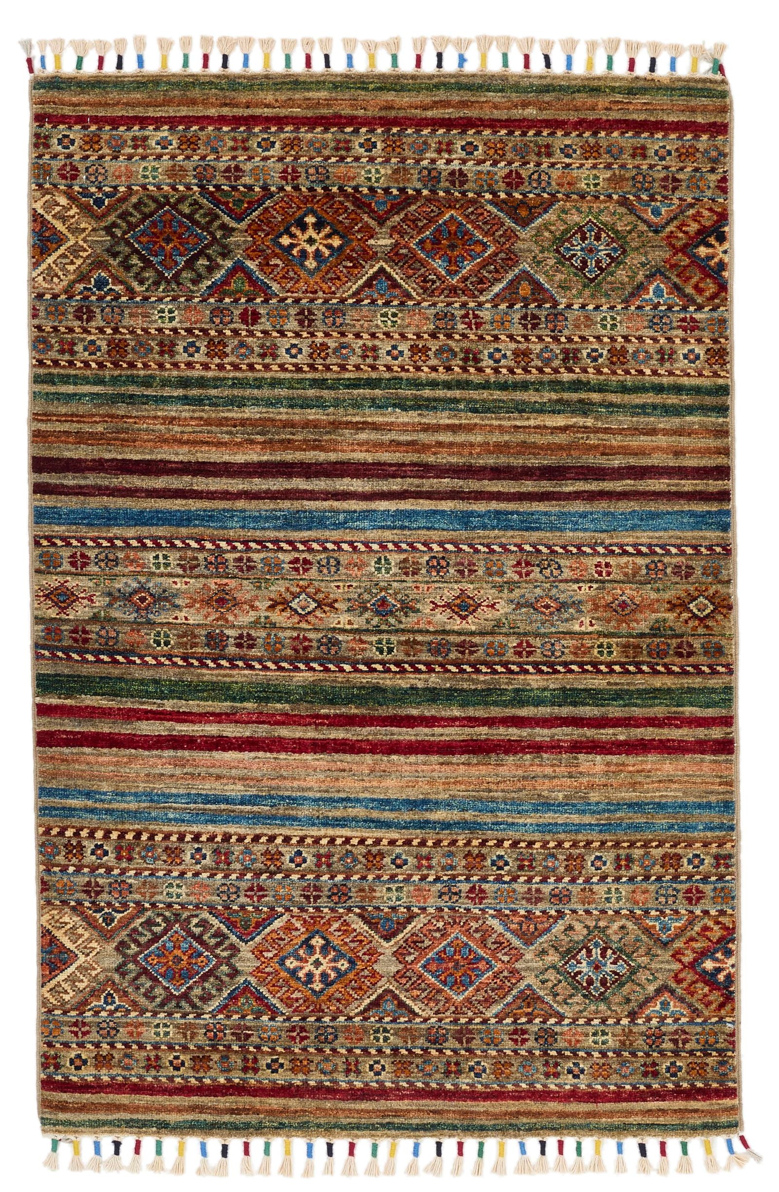 3x4 Brown and Multicolor Tribal Rug