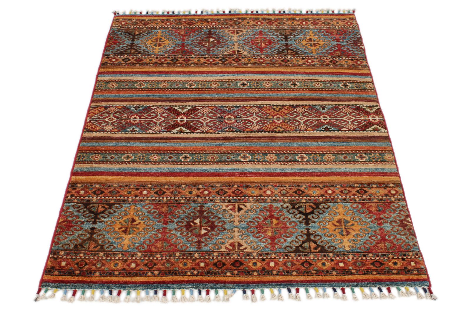 3x5 Brown and Multicolor Tribal Rug Handknotted Wool Vintage Design Turkish Rug Handmade Distressed Tribal, Floral Rug