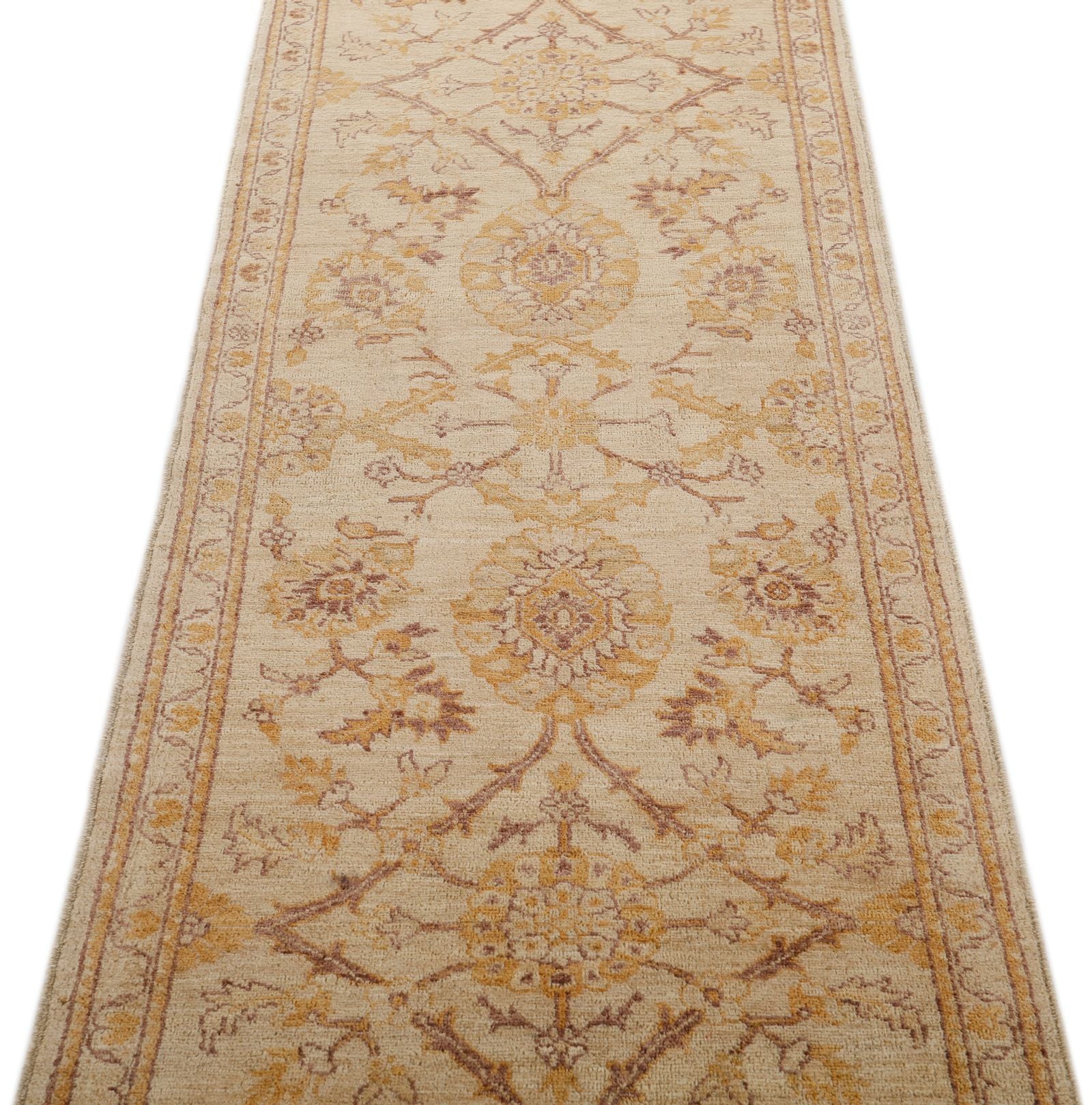 3x9 Beige and Brown Anatolian Traditional Rug Handknotted Wool Vintage Design Turkish Rug Handmade Distressed Traditional, Floral Rug