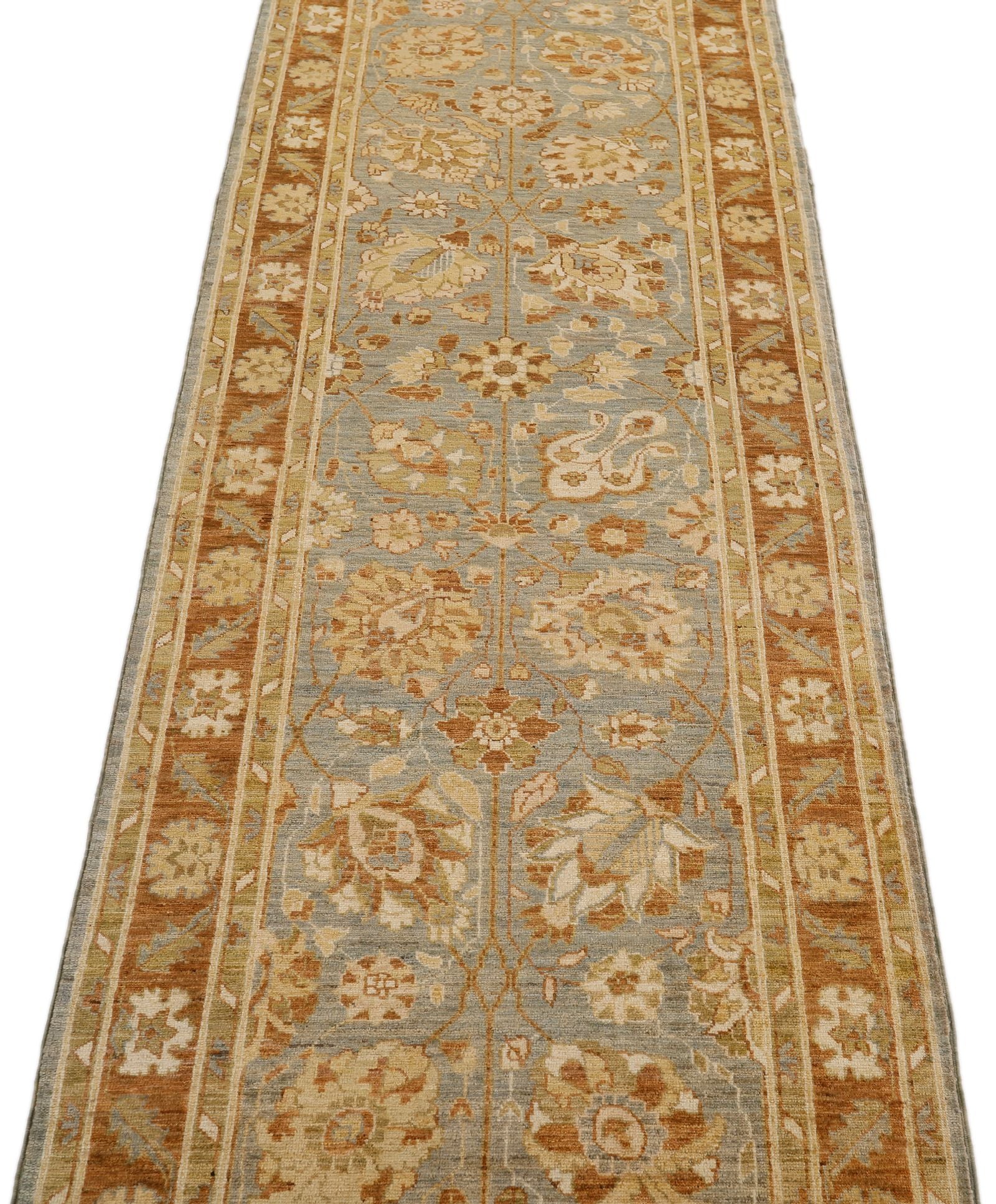 3x12 Gray and Brown Turkish Persian Runner Handknotted Wool Vintage Design Turkish Rug Handmade Distressed Traditional, Floral Runner
