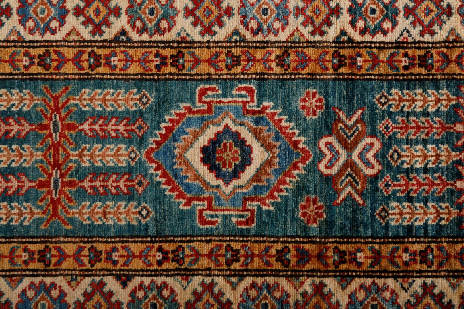 Kazak rugs are known for their bold, geometric designs and rich history. These handmade rugs were woven by the nomadic tribes of the Caucasus region, which includes modern-day Armenia, Azerbaijan, and Georgia. The Kazaks are the largest tribal group in this region and have been weaving rugs for centuries. Vintage Kazak rugs are made with high-quality wool and feature vivid colors, including reds, blues, and greens. The designs often include large medallions, diamonds, and other geometric shapes. The name "Kazak" comes from the word Cossack, as these rugs were often traded by the Cossacks who lived in the area. Today, antique Kazak rugs are highly sought after by collectors and interior designers alike for their beauty, sustainability and history.