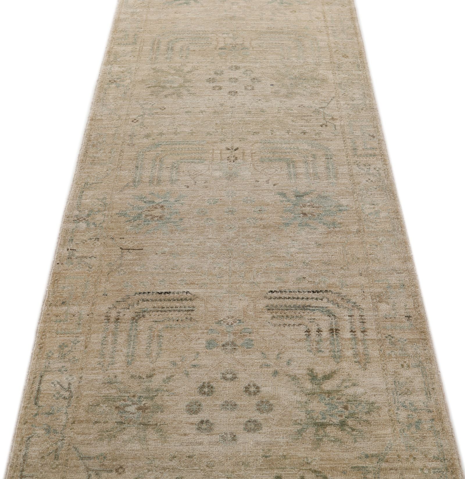 3x10 Beige and Green Anatolian Traditional Rug Handknotted Wool Vintage Design Turkish Rug Handmade Distressed Traditional, Floral Rug