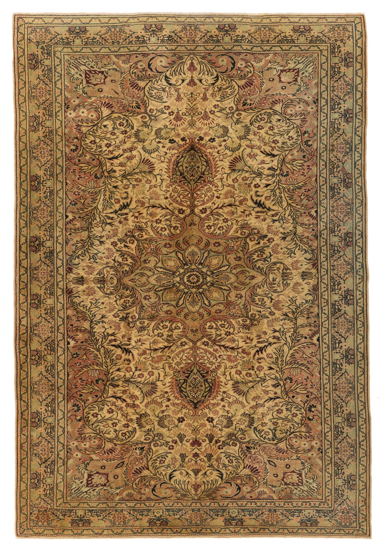 7x10 Ivory and Green Turkish Traditional Rug