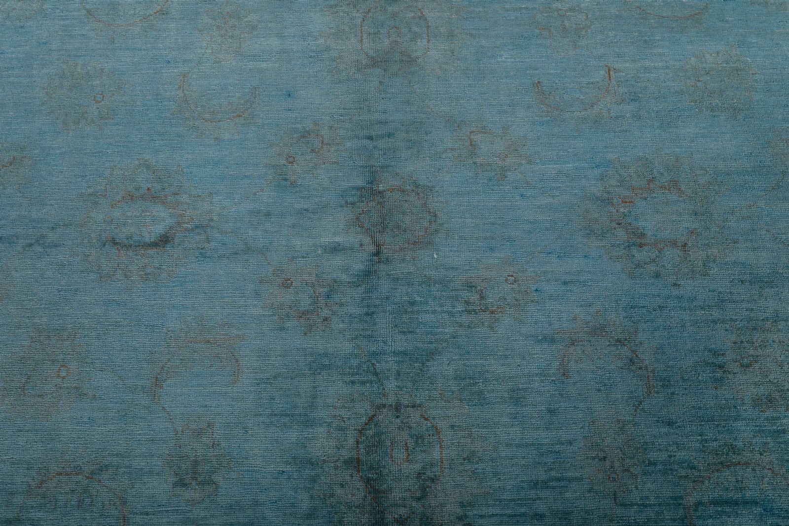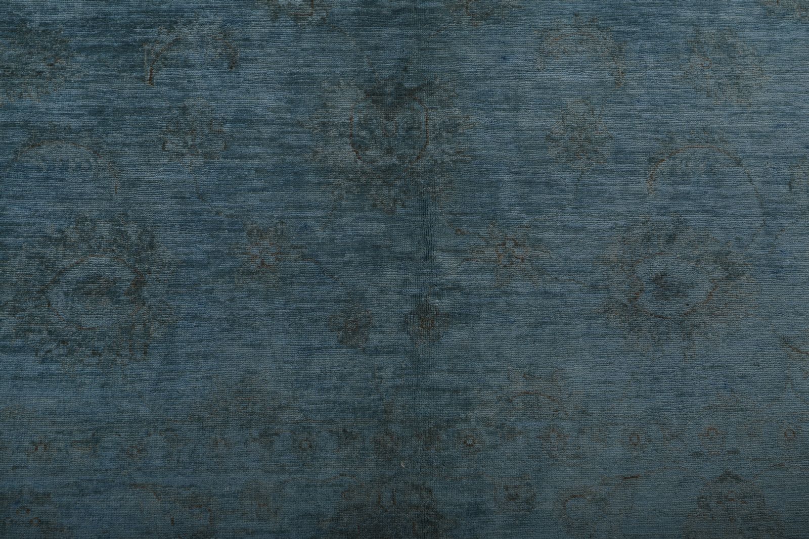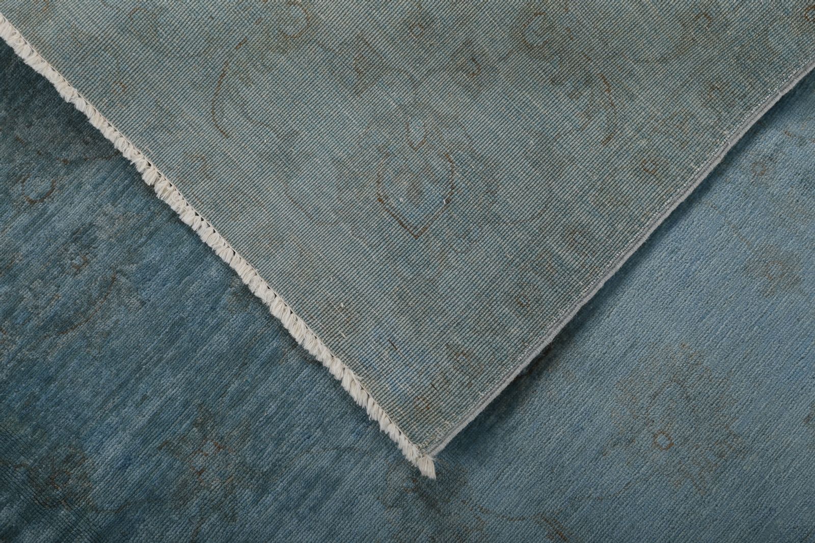 7x7 Blue and Gray Anatolian Traditional Handknotted Wool Vintage Design Turkish Rug Handmade Distressed Silk, Floral