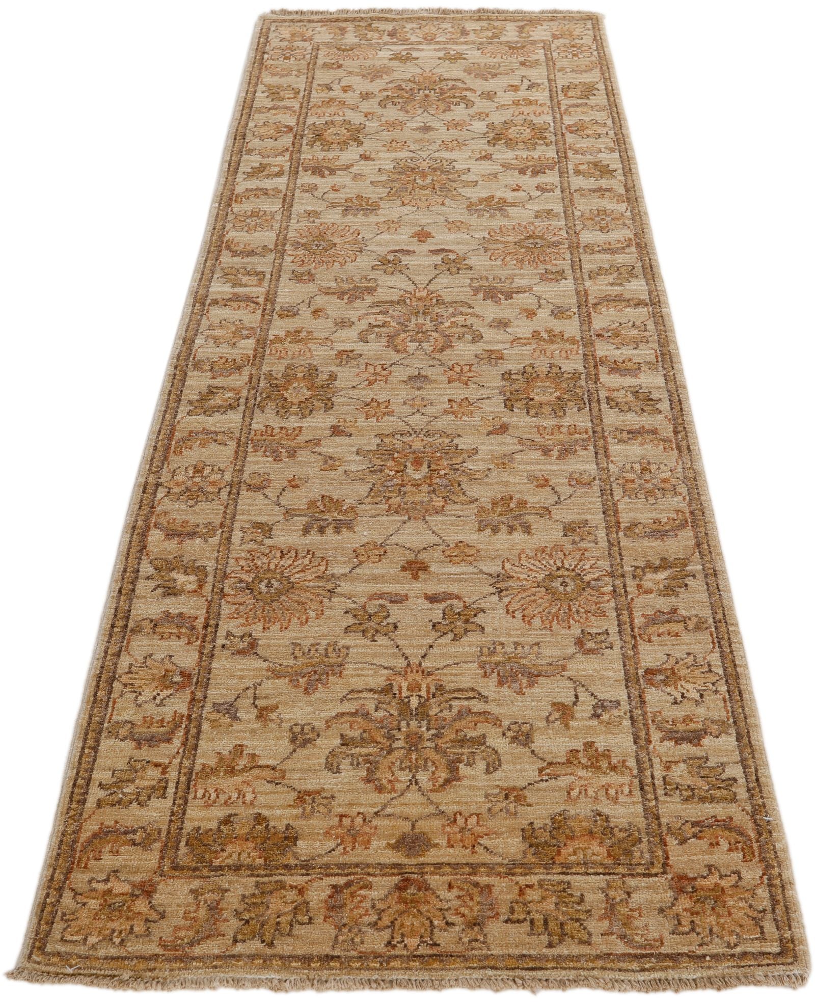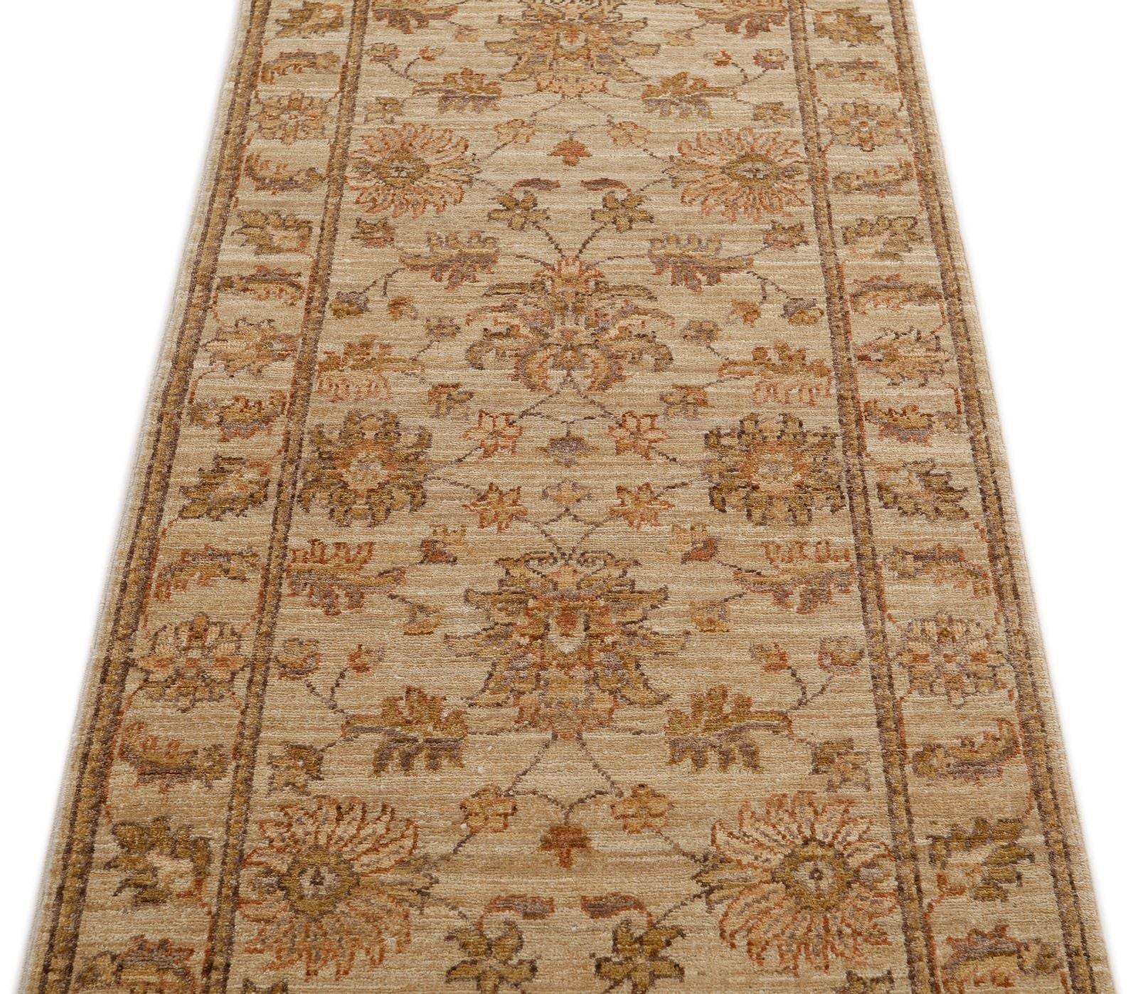 3x8 Ivory and Beige Turkish Oushak Rug Handknotted Wool Vintage Design Turkish Rug Handmade Distressed Traditional, Floral Rug