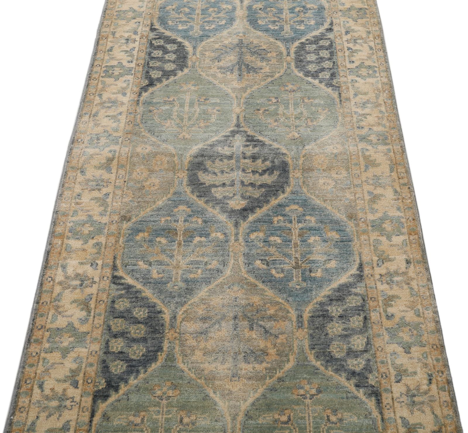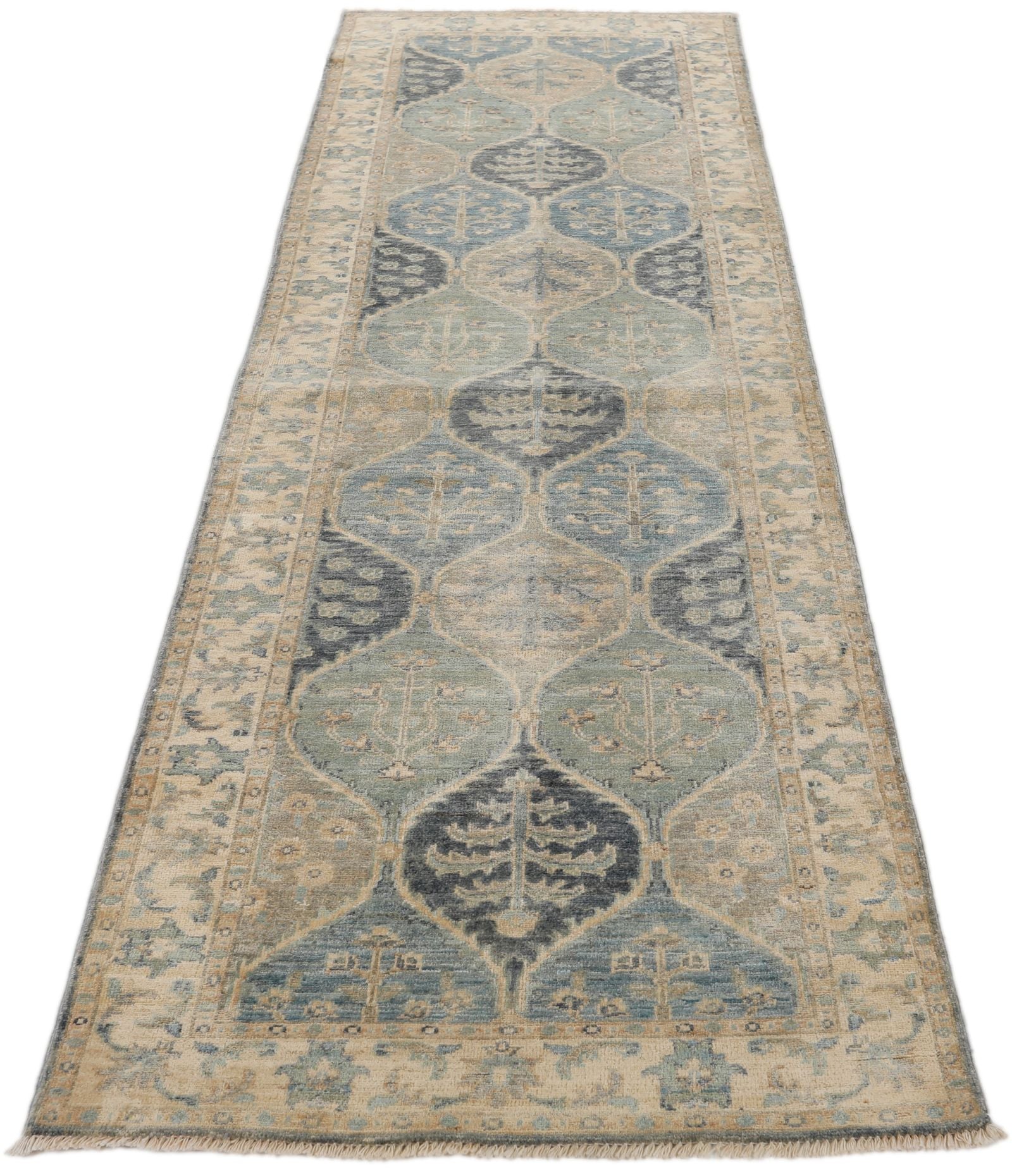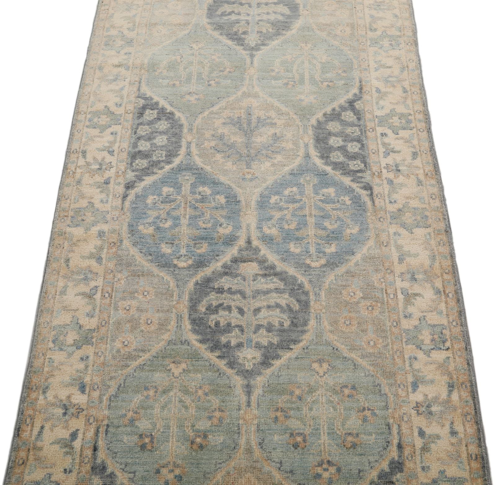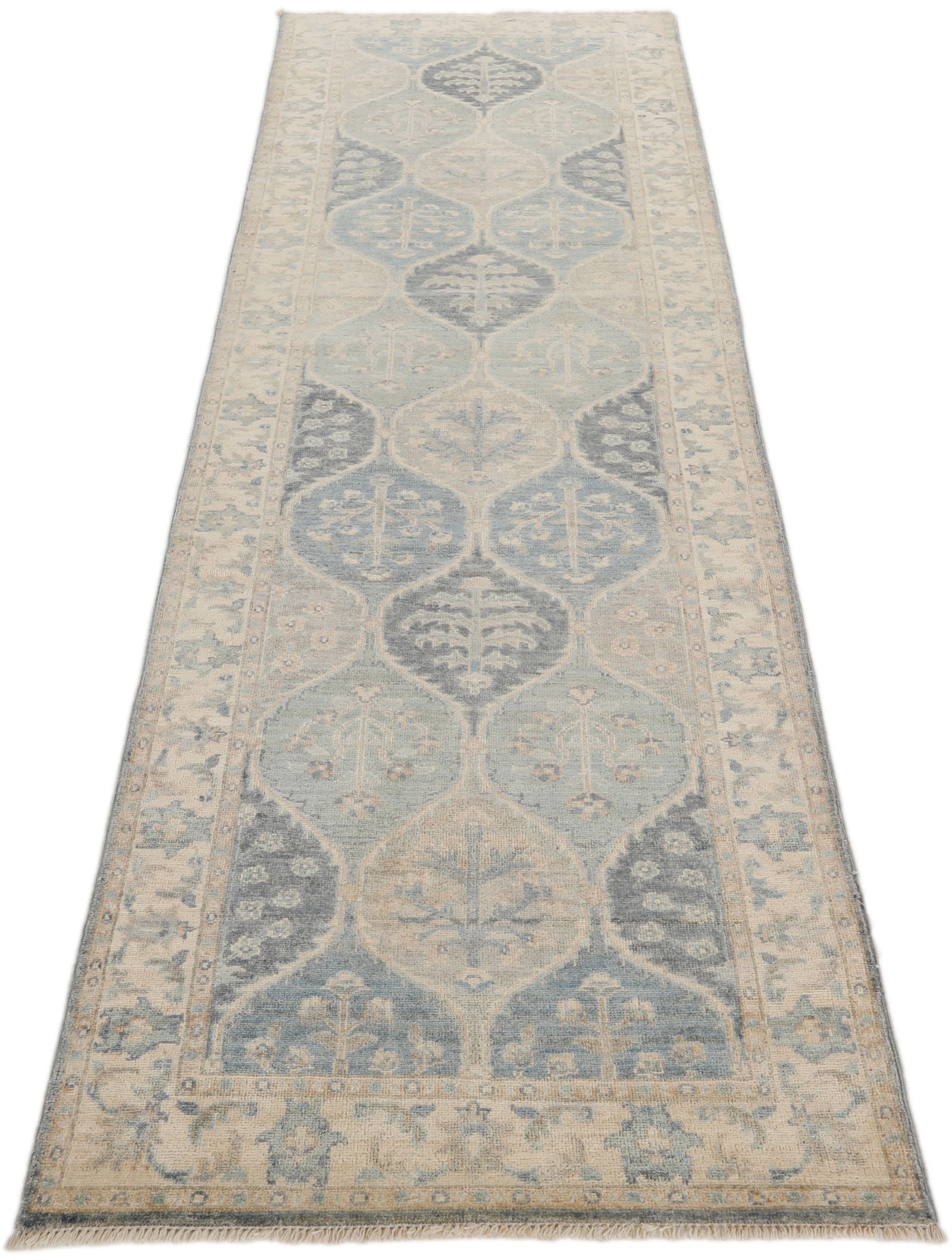 3x9 Ivory and Multicolor Turkish Persian Runner Handknotted Wool Vintage Design Turkish Rug Handmade Distressed Traditional, Floral Rug