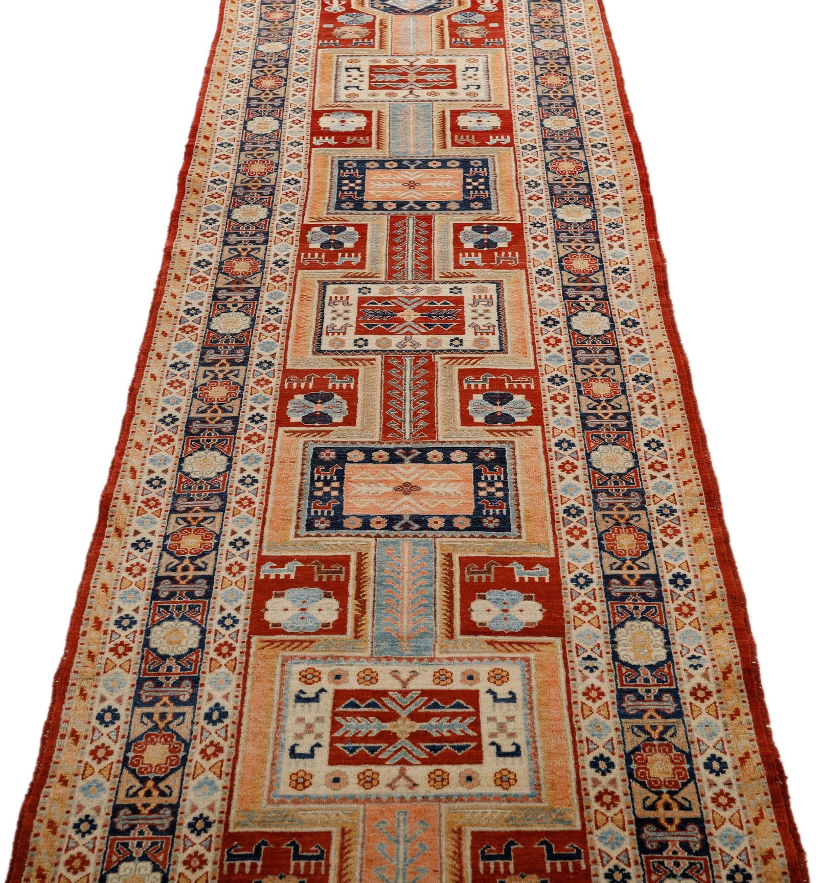 3x11 Burgundy and Blue Traditional Rug Handknotted Wool Vintage Design Turkish Rug Handmade Distressed Traditional, Floral Runner