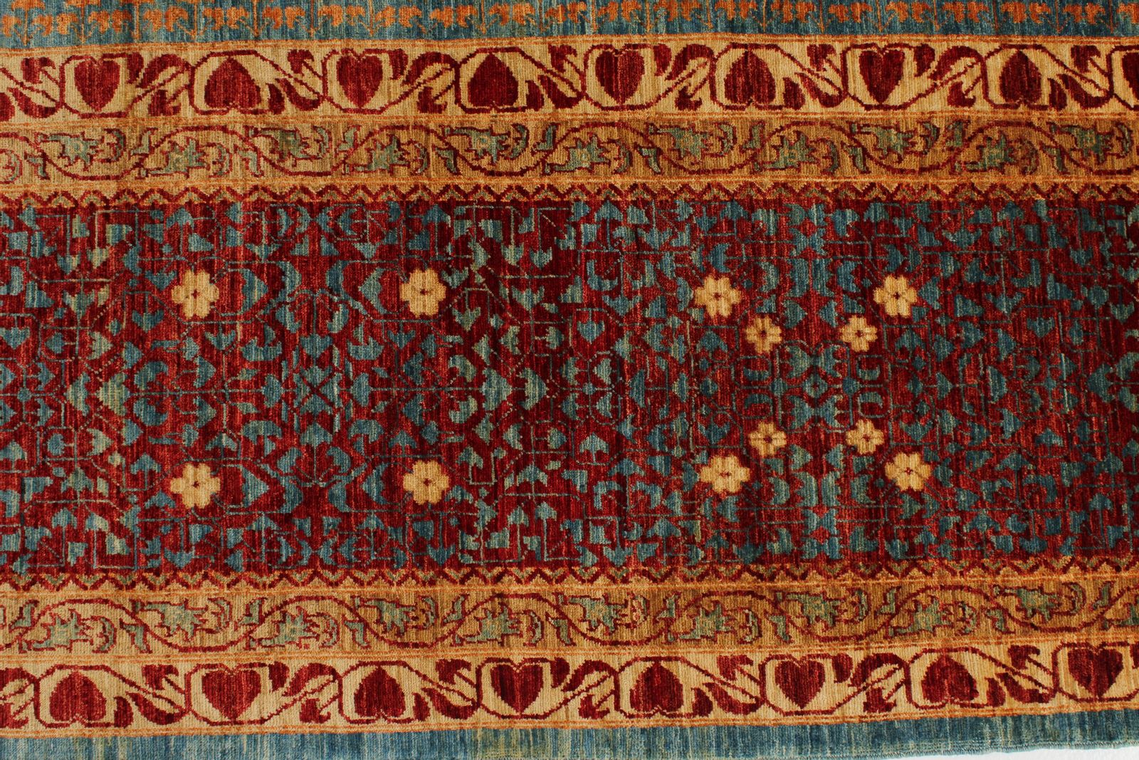 12x17 Burgundy and Multicolor Turkish Tribal Rug Handknotted Wool Vintage Design Turkish Rug Handmade Distressed Tribal, Floral Rug