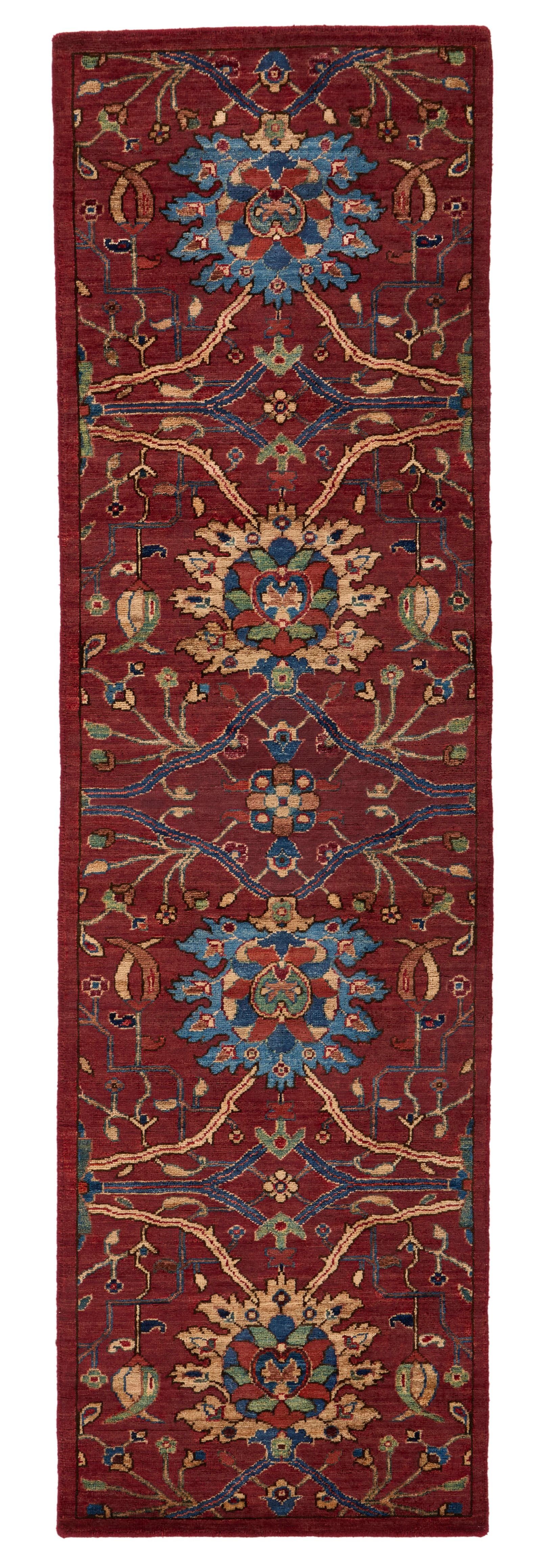 2x7 Burgundy and Multicolor Anatolian Tribal Runner