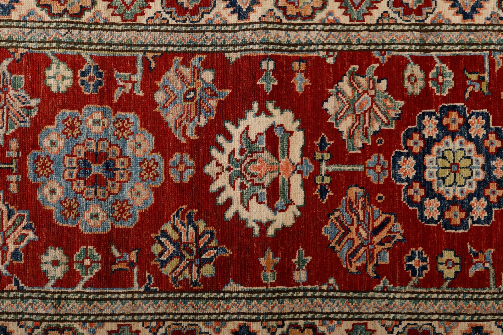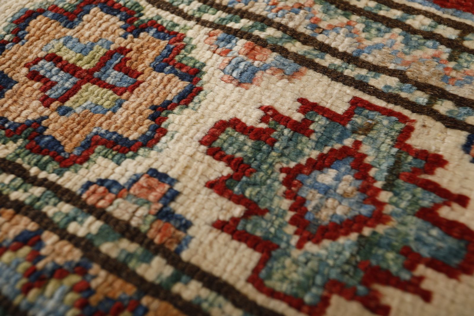 Kazak rugs are known for their bold, geometric designs and rich history. These handmade rugs were woven by the nomadic tribes of the Caucasus region, which includes modern-day Armenia, Azerbaijan, and Georgia. The Kazaks are the largest tribal group in this region and have been weaving rugs for centuries. Vintage Kazak rugs are made with high-quality wool and feature vivid colors, including reds, blues, and greens. The designs often include large medallions, diamonds, and other geometric shapes. The name "Kazak" comes from the word Cossack, as these rugs were often traded by the Cossacks who lived in the area. Today, antique Kazak rugs are highly sought after by collectors and interior designers alike for their beauty, sustainability and history.