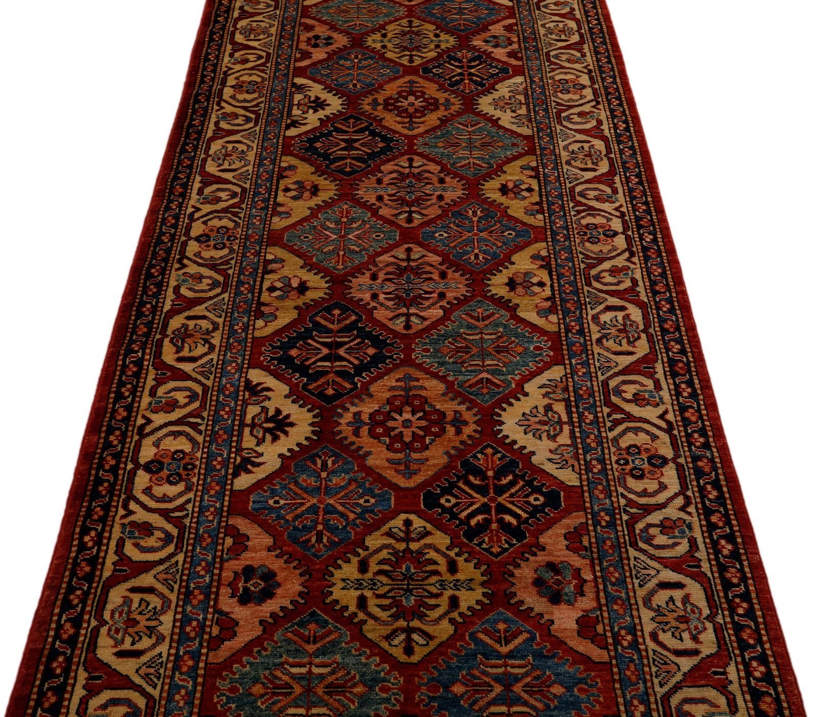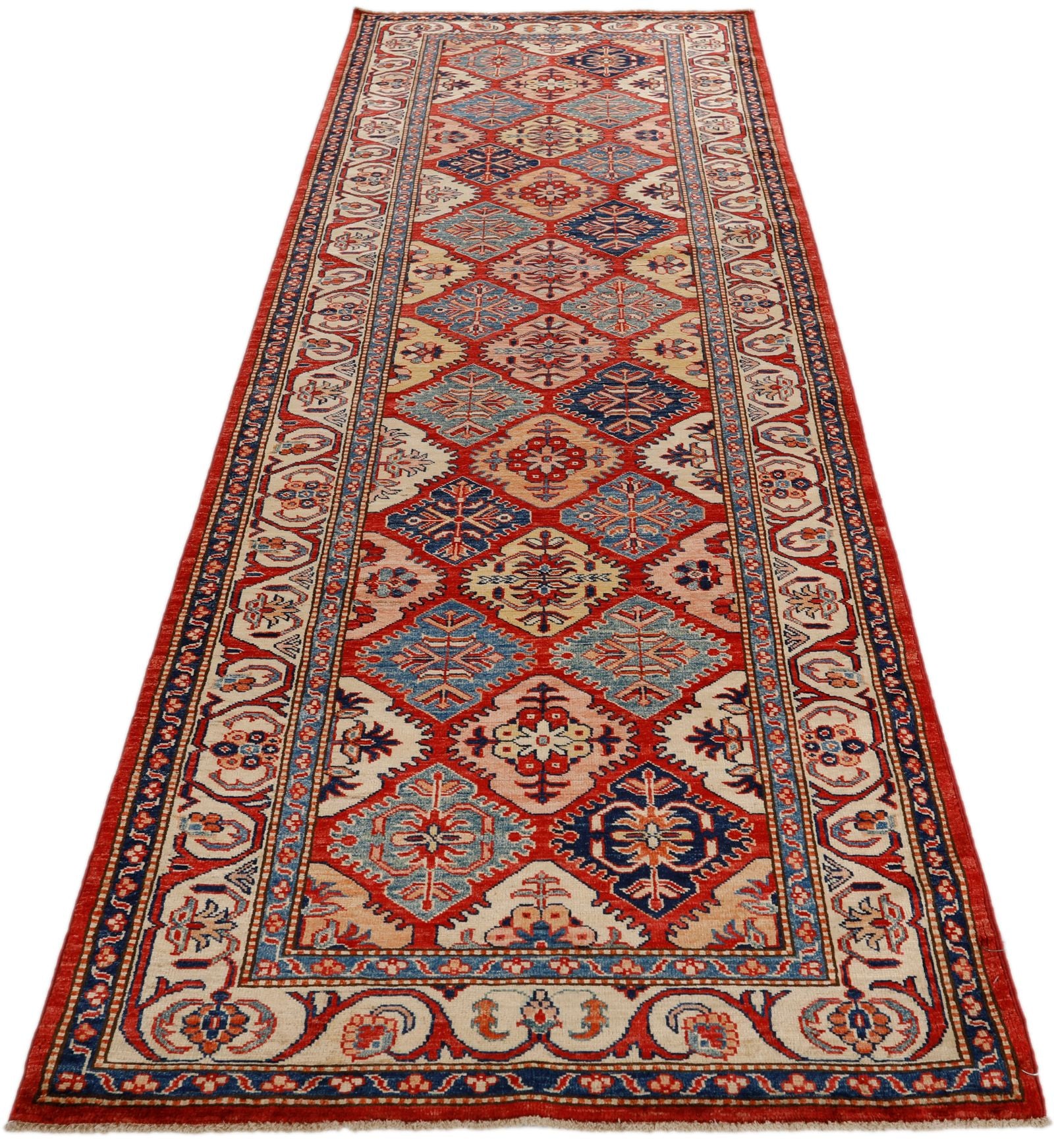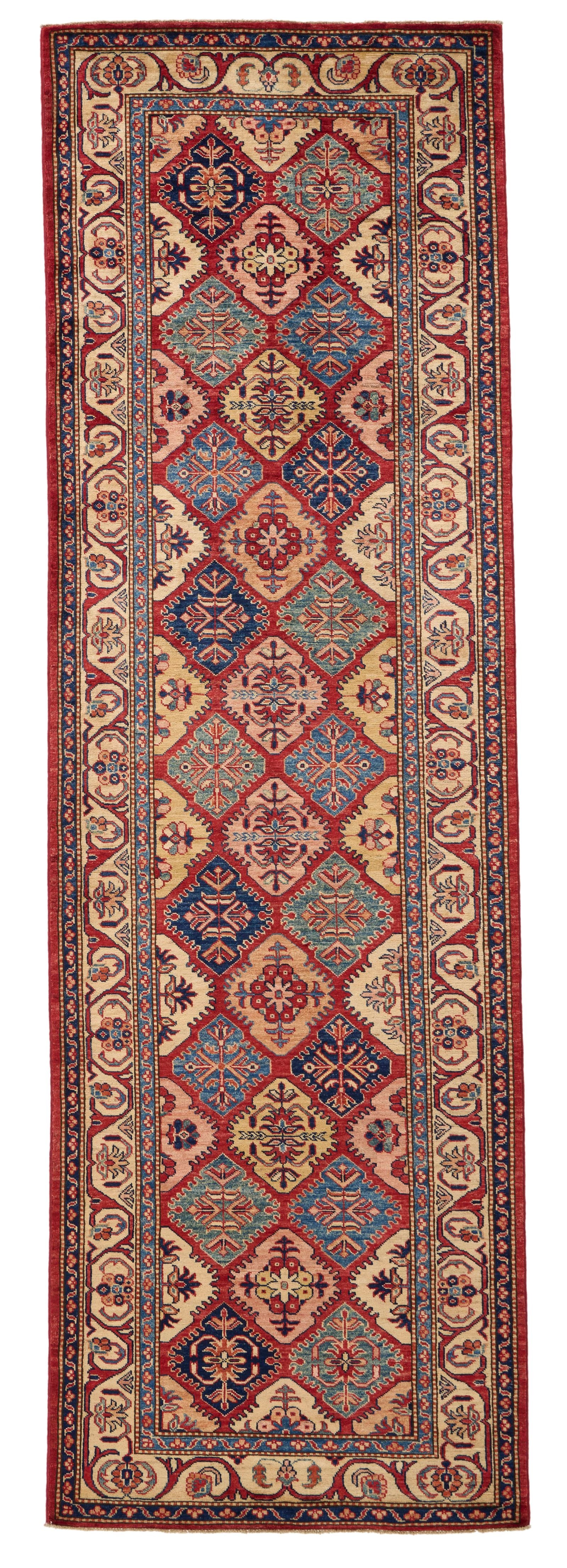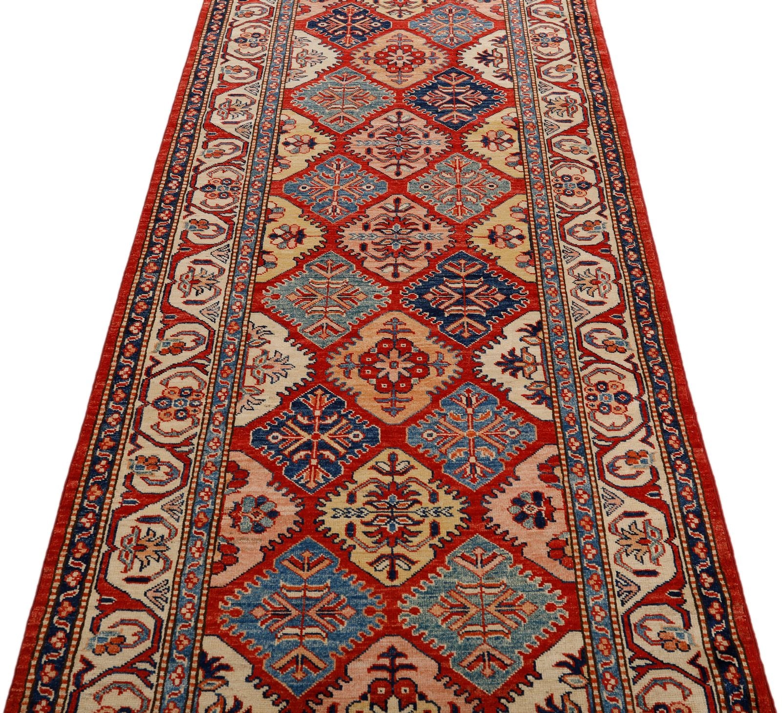 3x10 Red and Ivory Kazak Tribal Runner Handknotted Wool Vintage Design Turkish Rug Handmade Distressed Tribal, Floral Runner