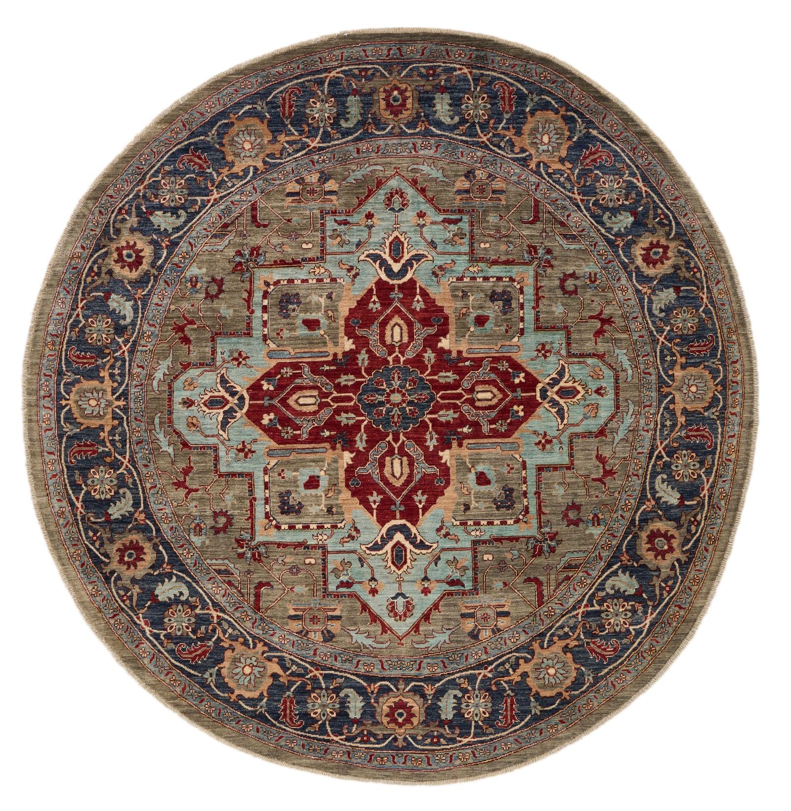 8x8 Red and Light Blue Anatolian Traditional Rug