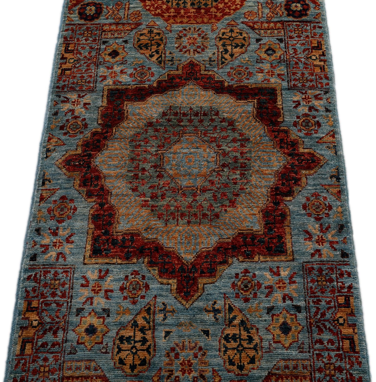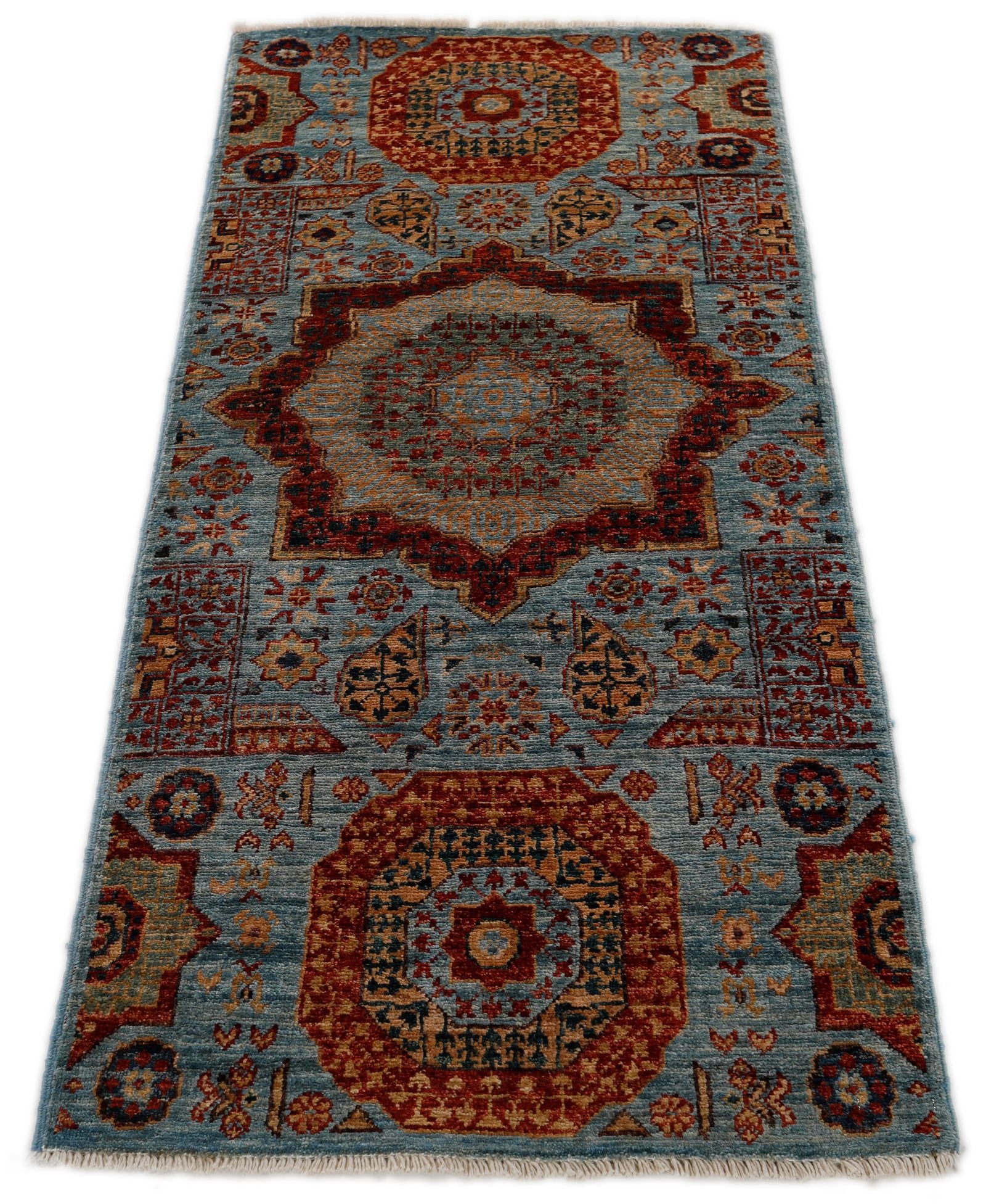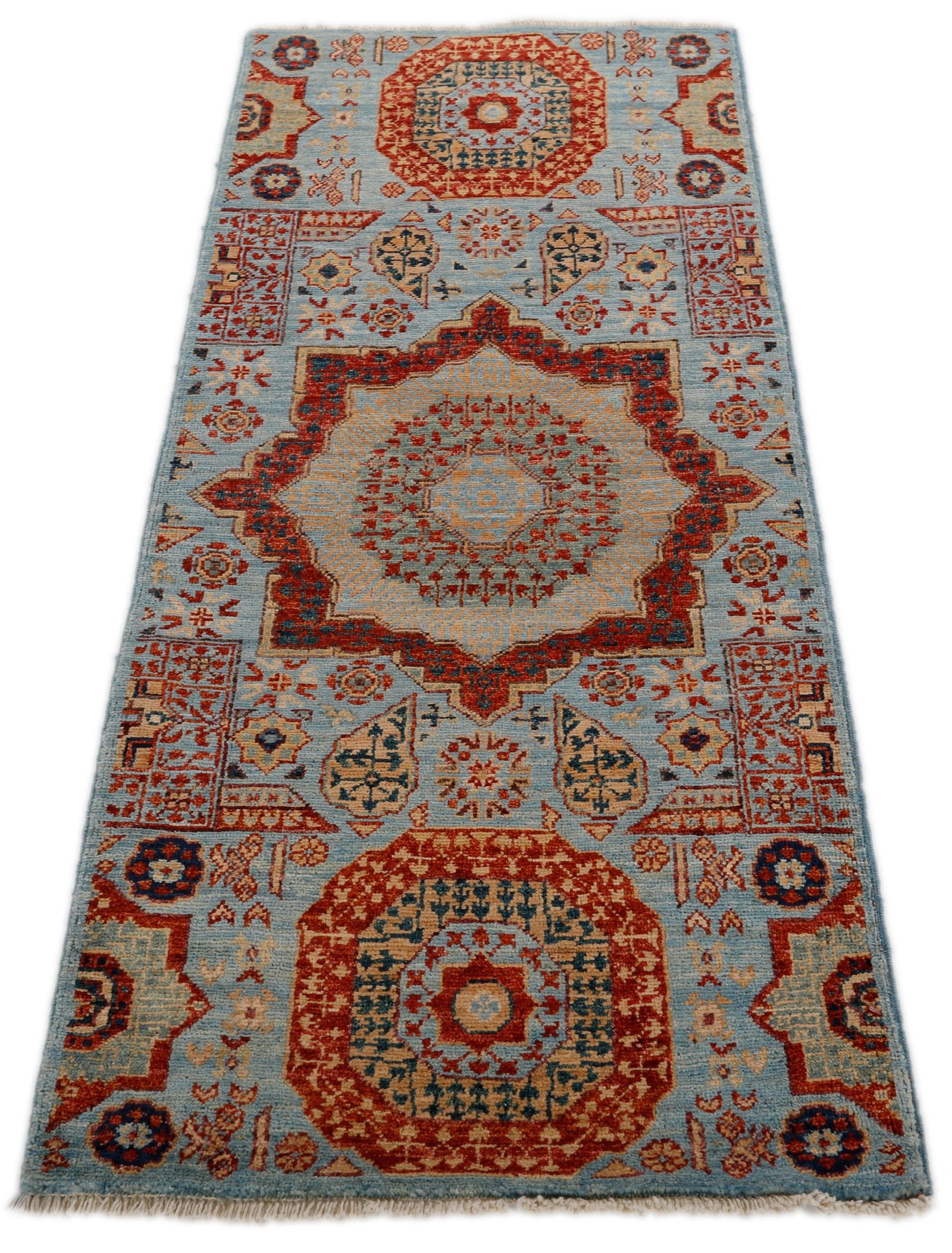 Mamluk rugs are a testament to the grandeur and sophistication of the Mamluk Empire that ruled Egypt and Syria from the 13th to the 16th century. These luxurious rugs are known for their intricate geometric and floral designs, often featuring a central medallion and repeating patterns. Mamluk rugs are meticulously handwoven using high-quality wool and silk, giving them a lustrous sheen and plush texture. The rugs are named after the Mamluk sultans who commissioned their production and are considered a symbol of the empire's artistic and cultural achievements. Today, Mamluk rugs continue to captivate with their timeless beauty and are one of the most preferred rugs for living rooms and bedrooms.