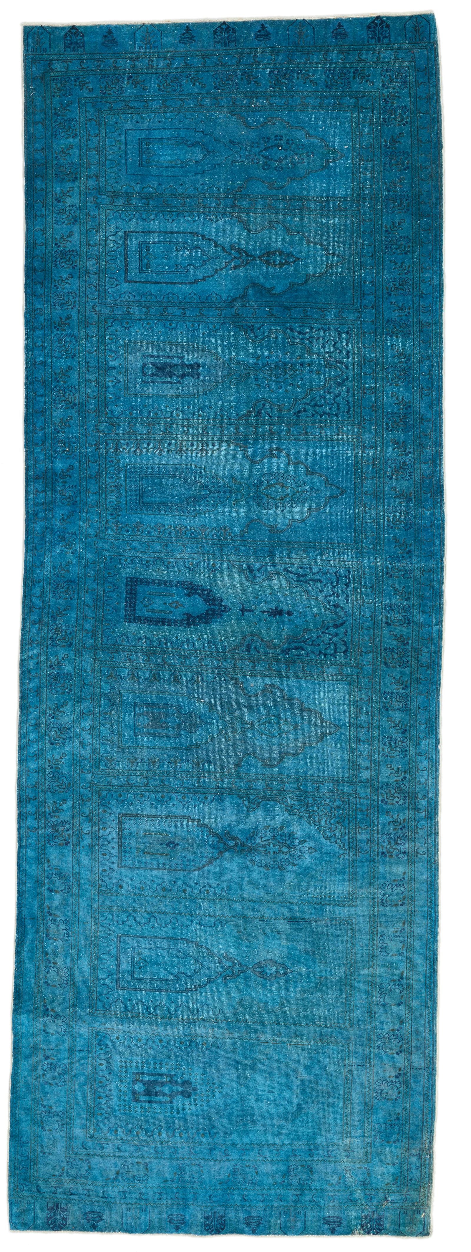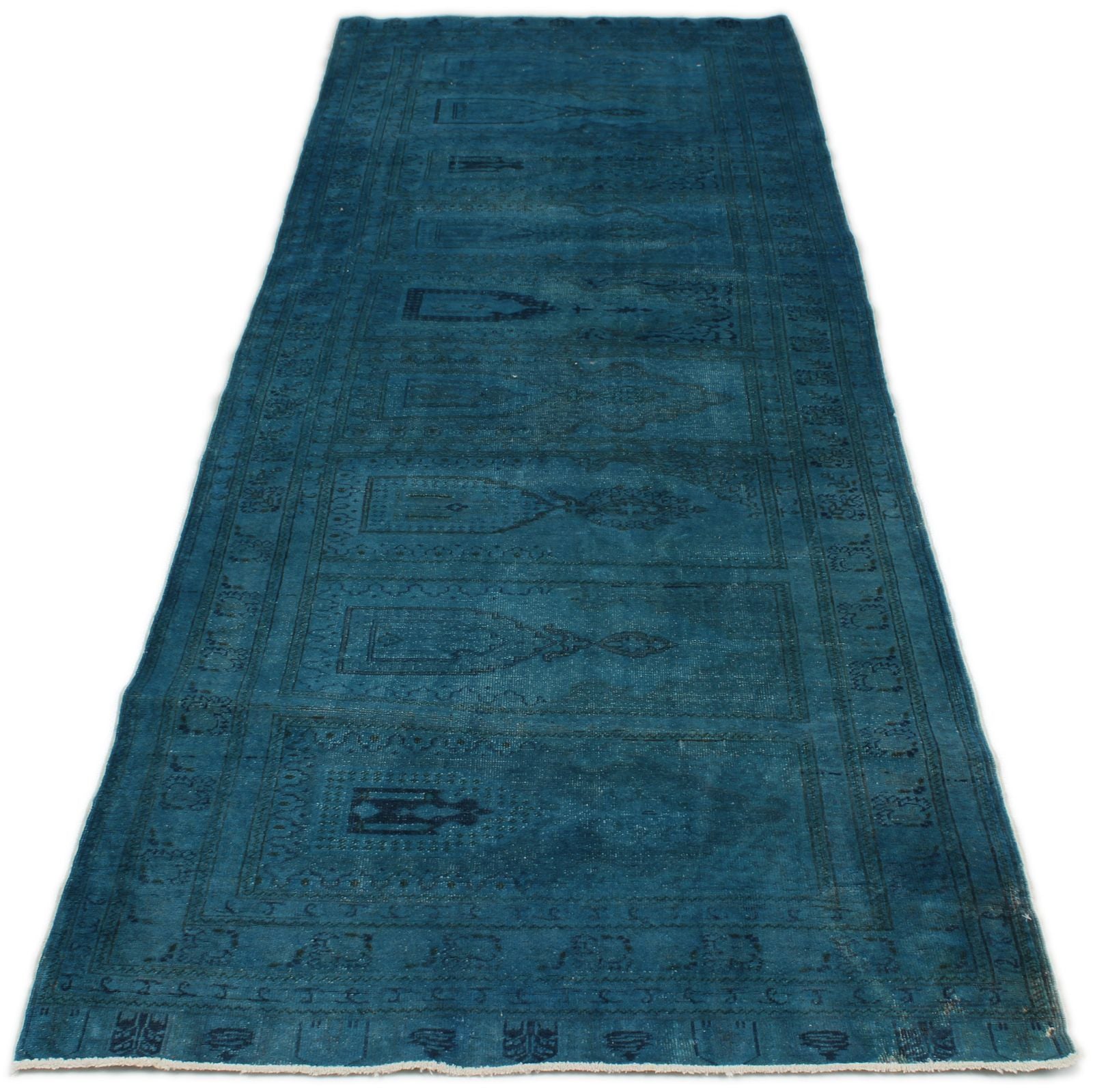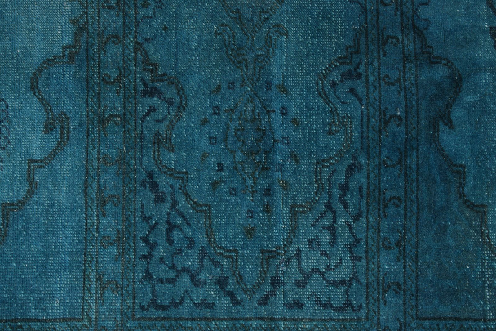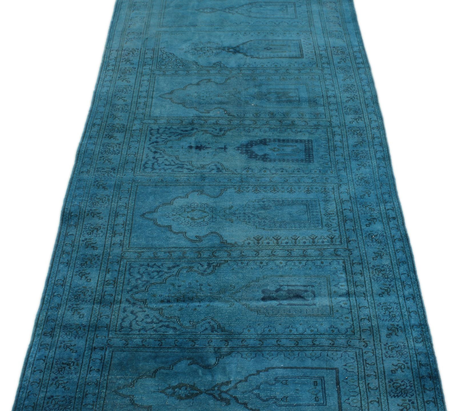 3x9 Blue Turkish Traditional Runner Handknotted Wool Vintage Design Turkish Rug Handmade Distressed Traditional, Floral Runner