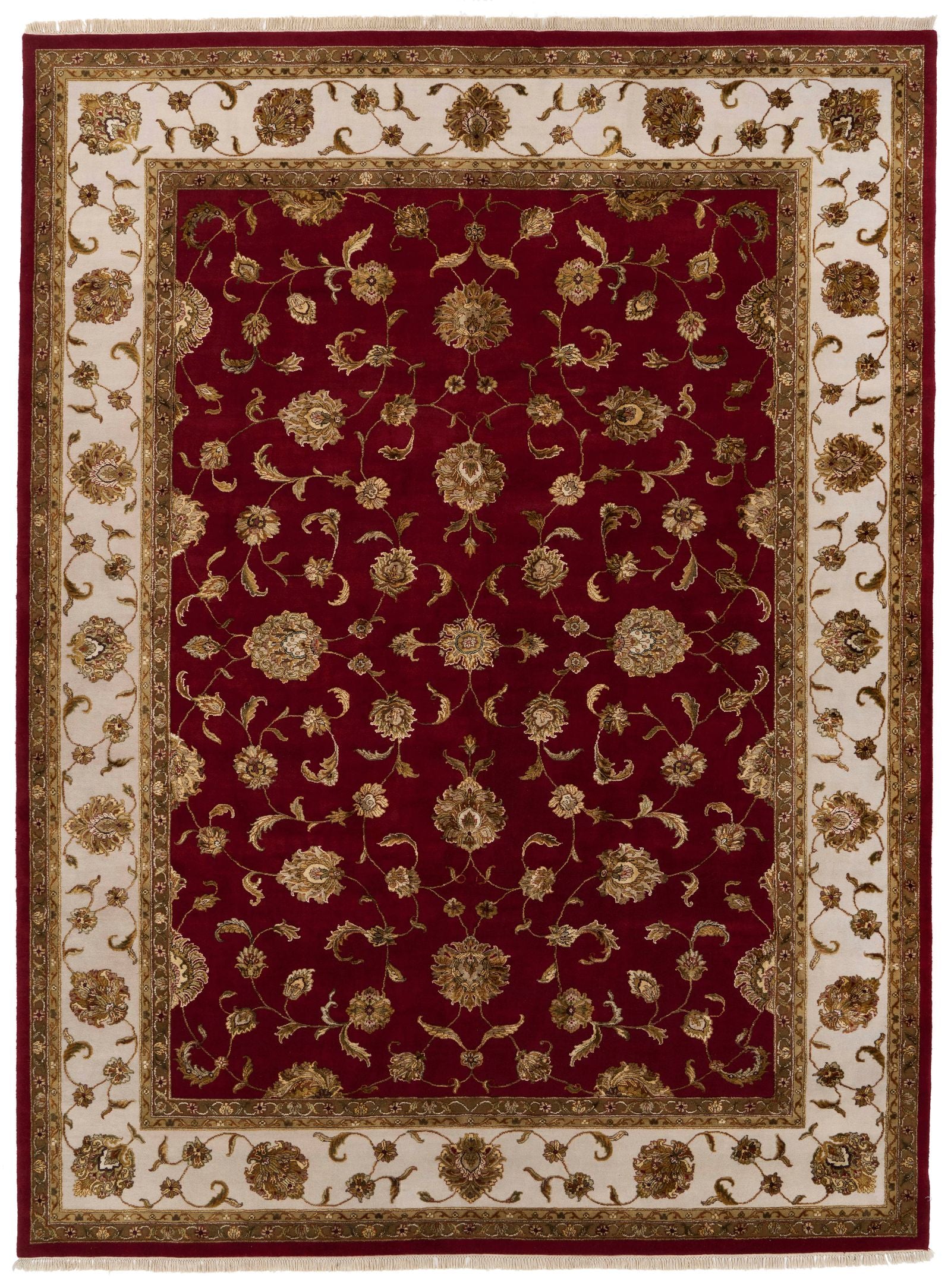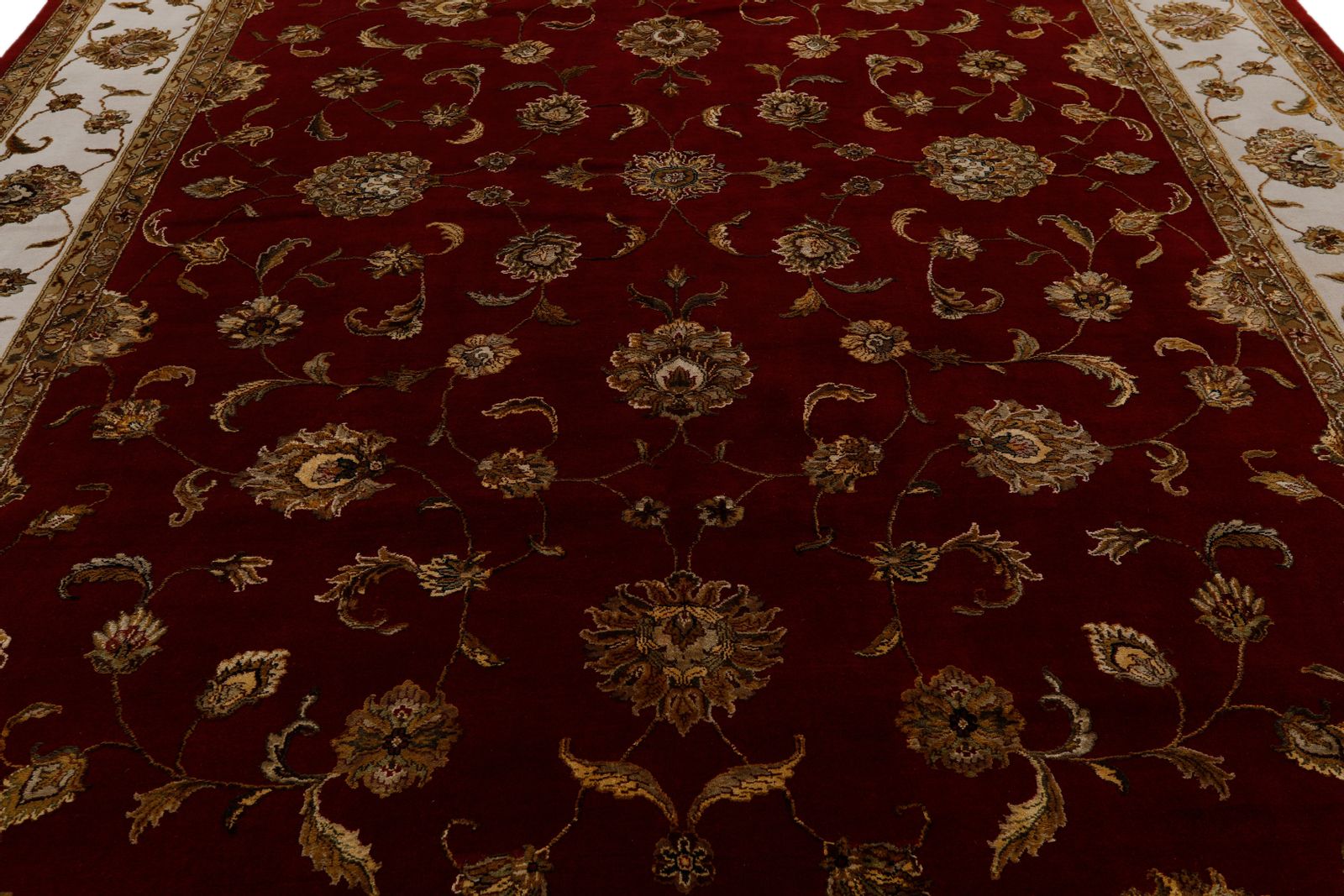 10x14 Burgundy and Ivory Turkish Silk Rug