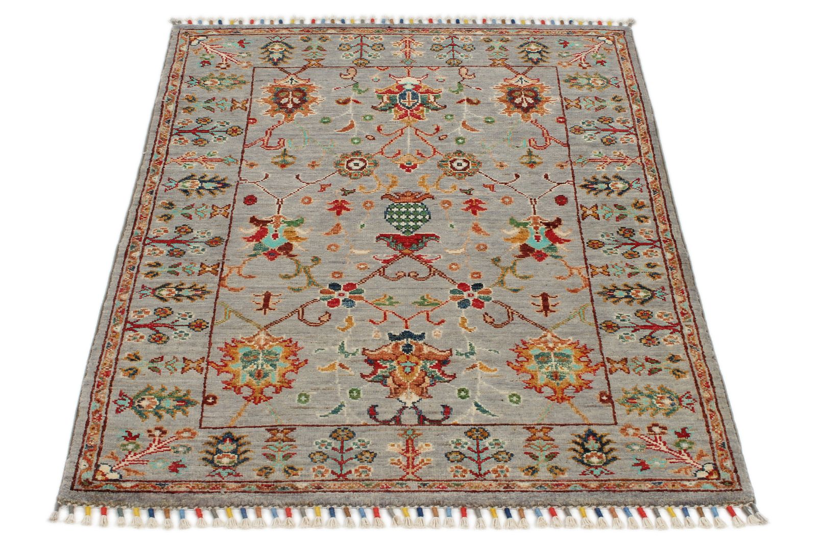 3x4 Light Gray and Multicolor Turkish Tribal Rug