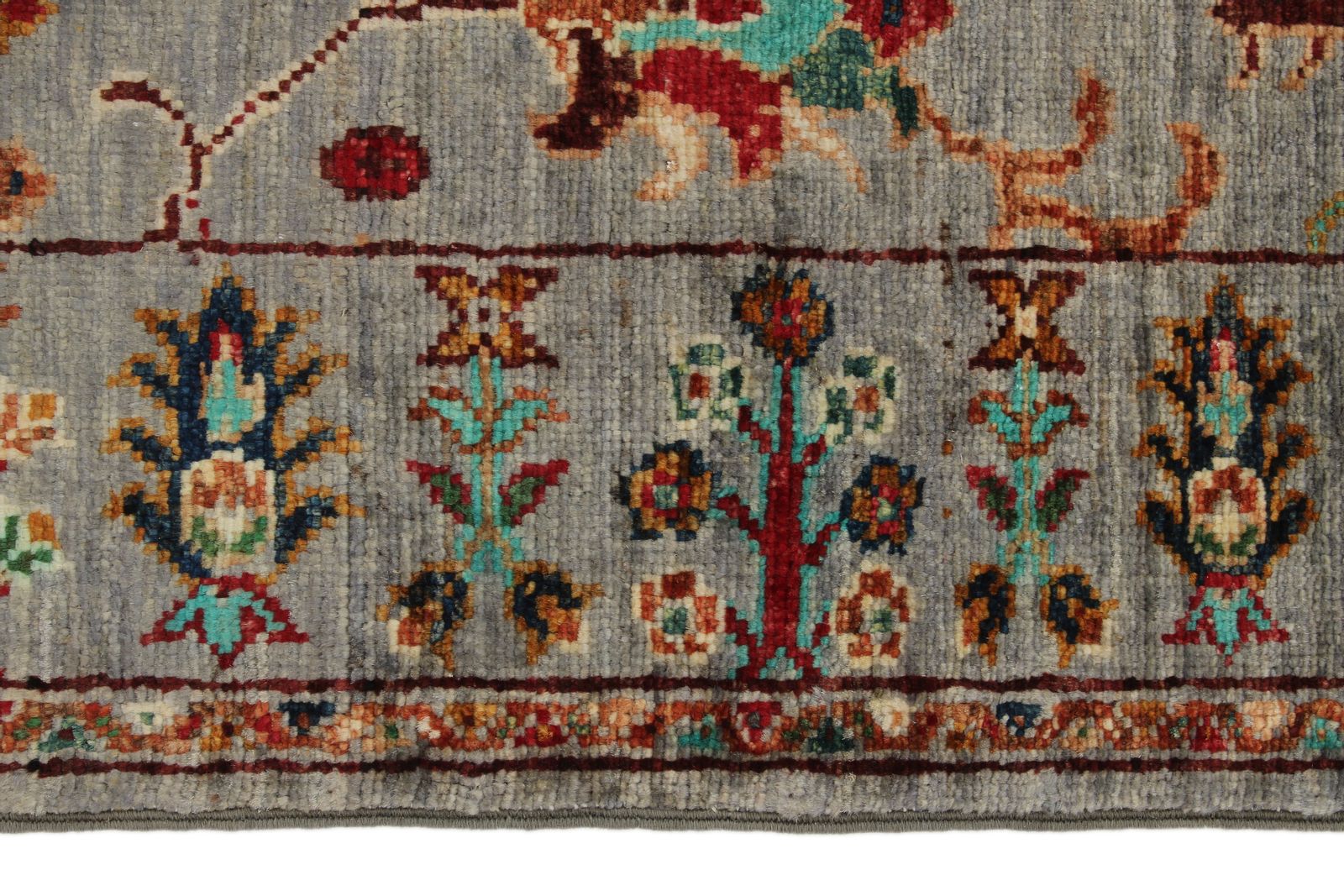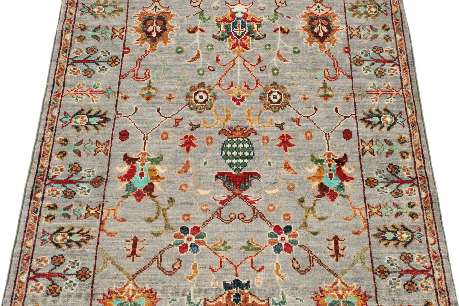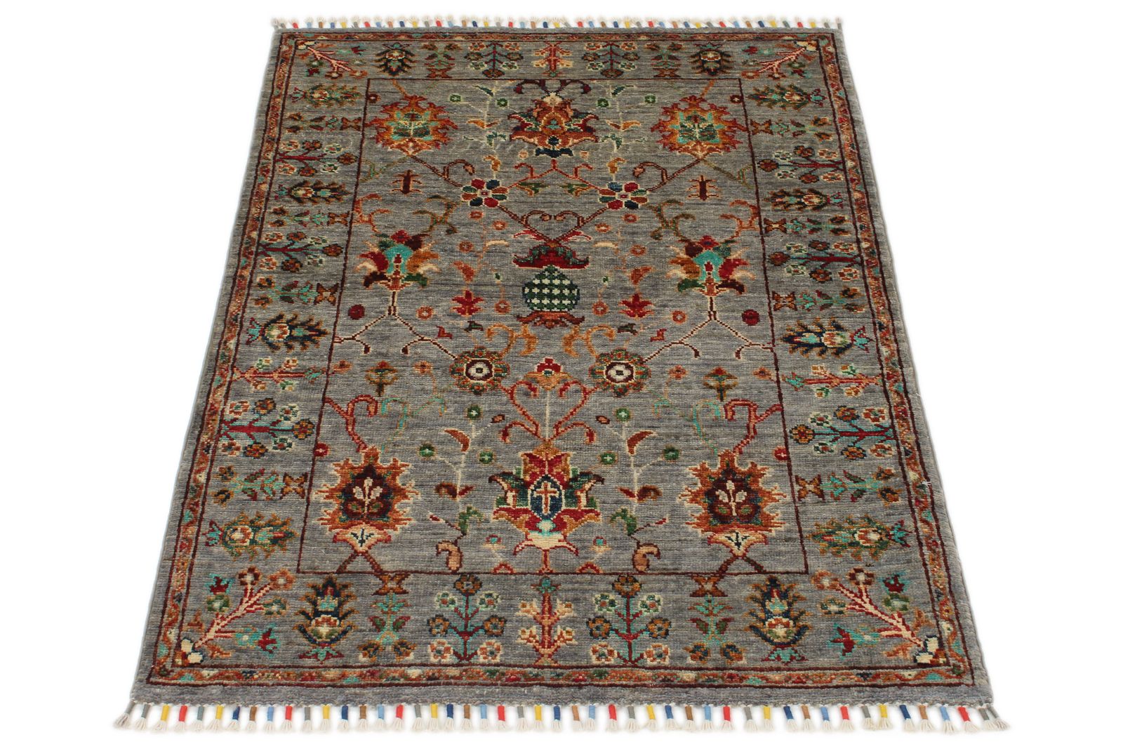 3x4 Light Gray and Multicolor Turkish Tribal Rug Handknotted Wool Vintage Design Turkish Rug Handmade Distressed Tribal, Floral Rug