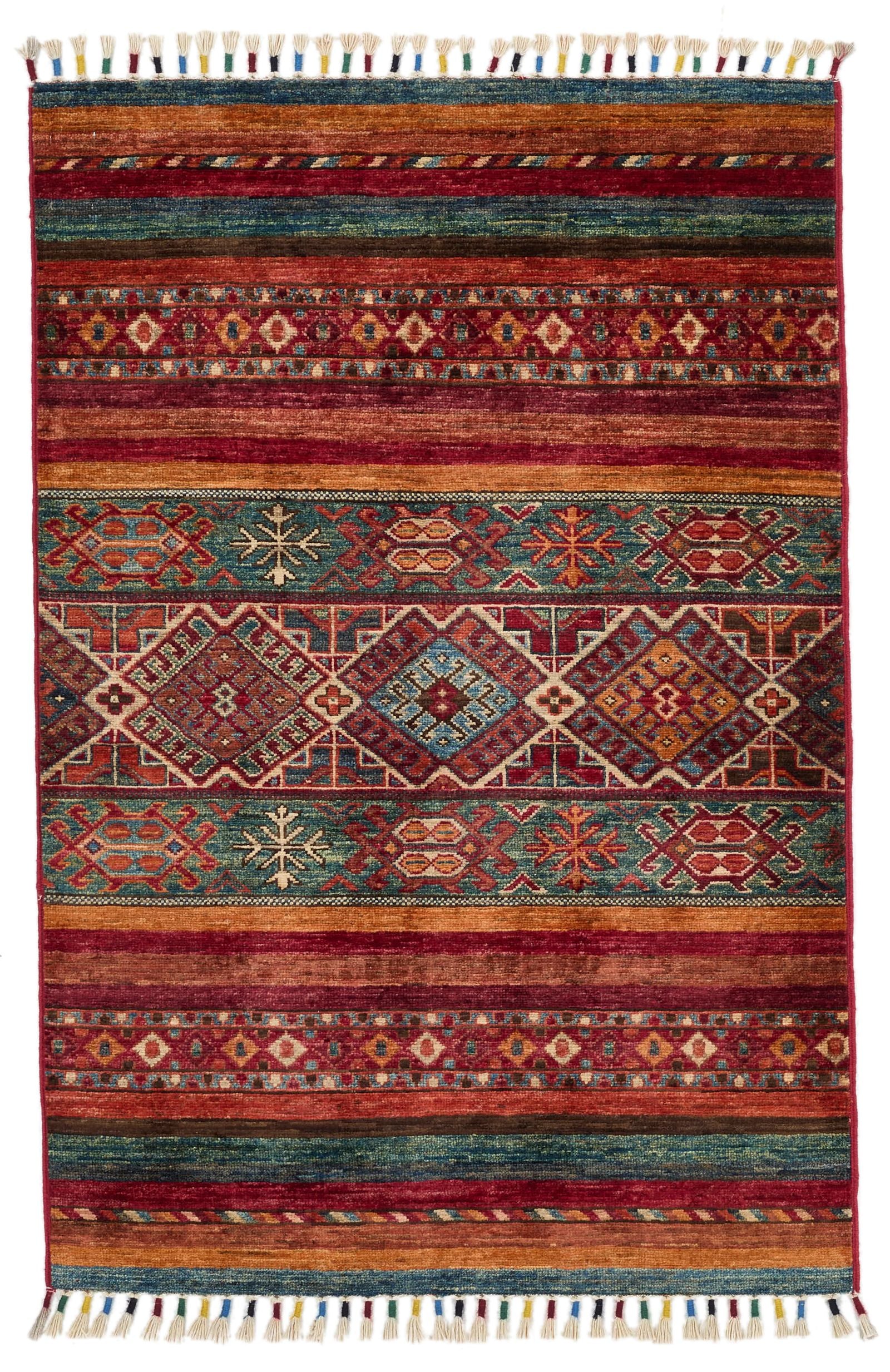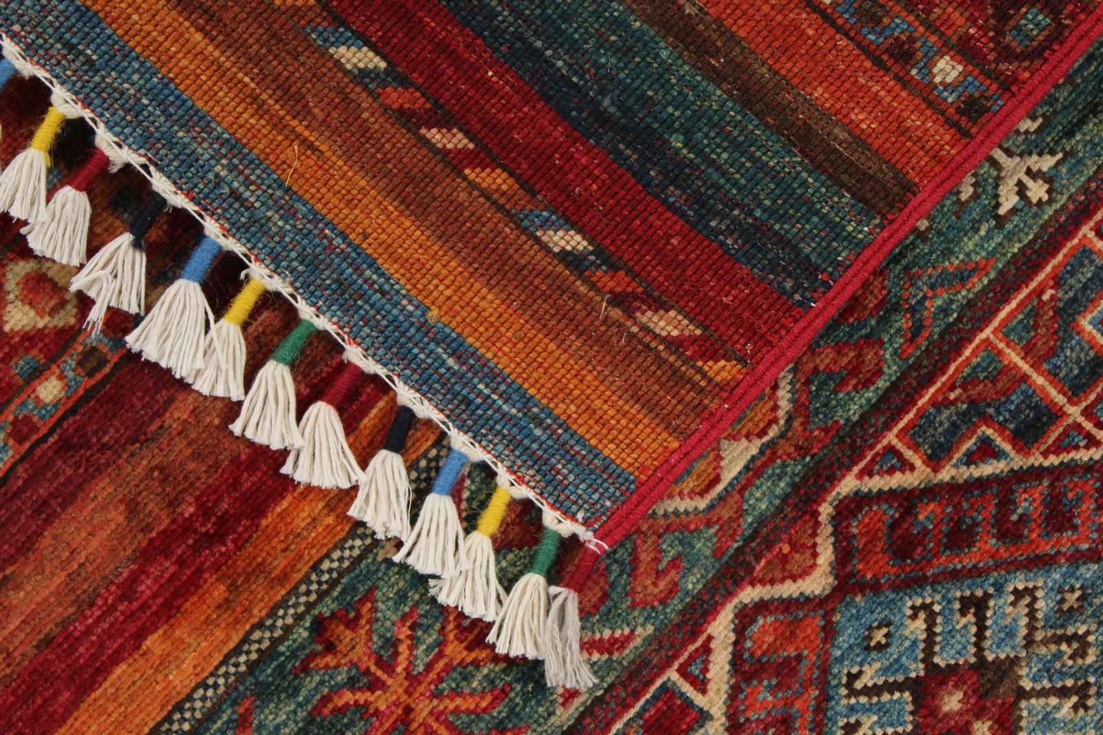 Khorjin rugs are an exotic and unique addition to any home. Their name comes from the word "khorjin," which means saddlebag, as they were originally woven as utilitarian bags to carry belongings on horseback. These vintage rugs are handcrafted by skilled artisans in the tribal areas of Anatolia, featuring striking geometric designs and bold color combinations. Khorjin rugs are made with high-quality wool and are known for their durability and sustainability, making them an excellent home. Each rug is one of a kind, and no two are exactly alike, adding a touch of authenticity and charm to any room. With a rich history and unique beauty, Khorjin rugs are a timeless piece of art for any lover of Oriental decor.
