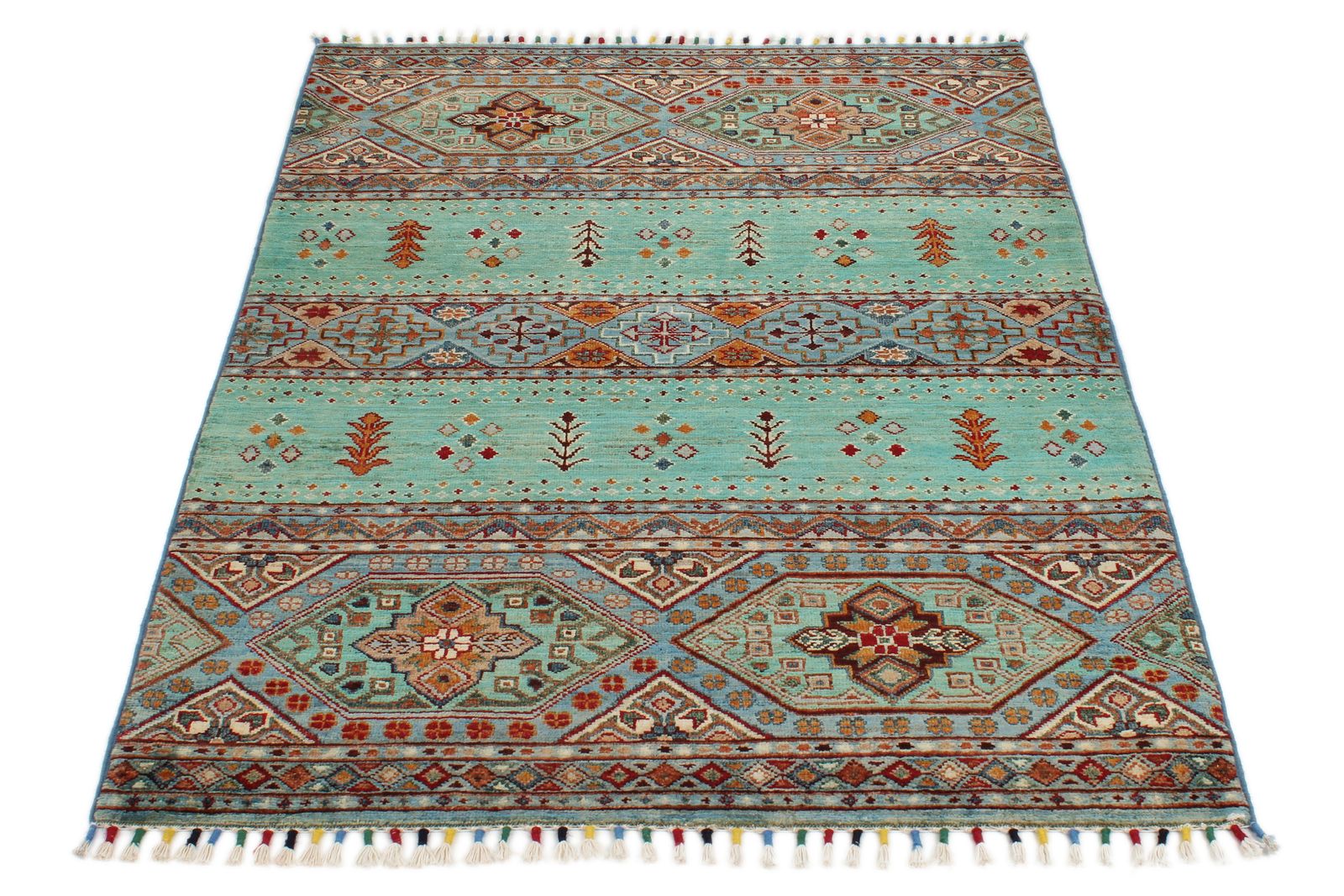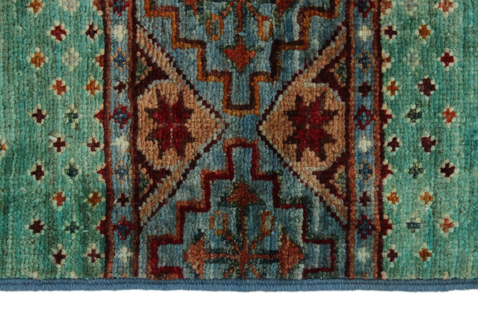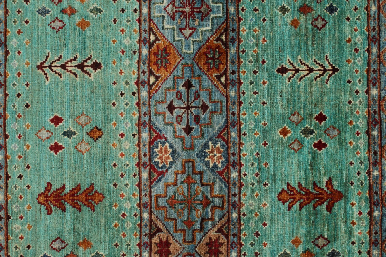 Name: Vintage Handmade 3x5 Mint and Multicolor Anatolian Tribal Rug