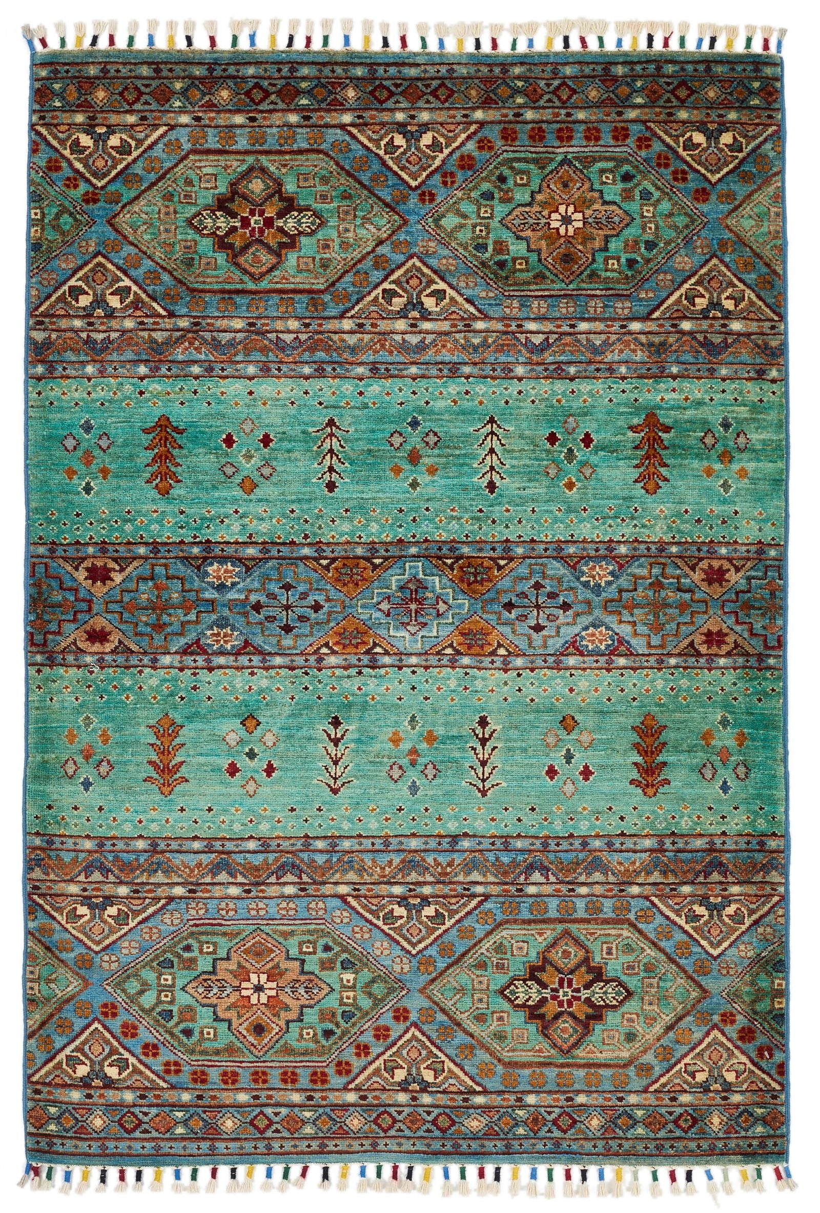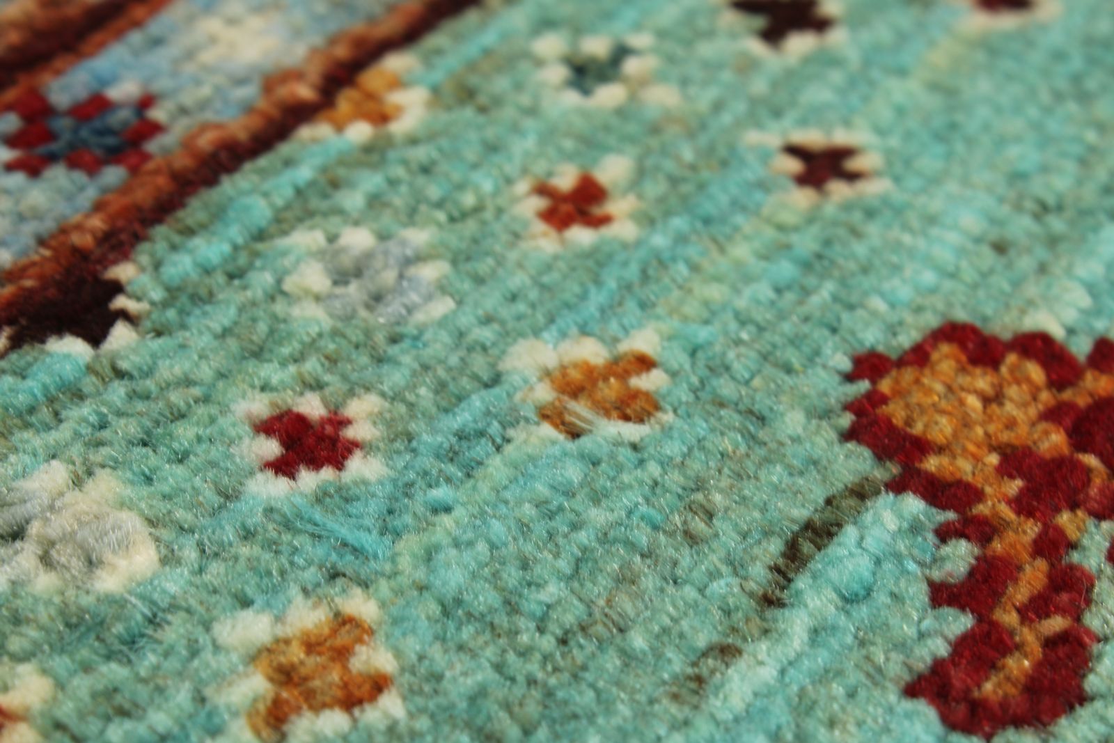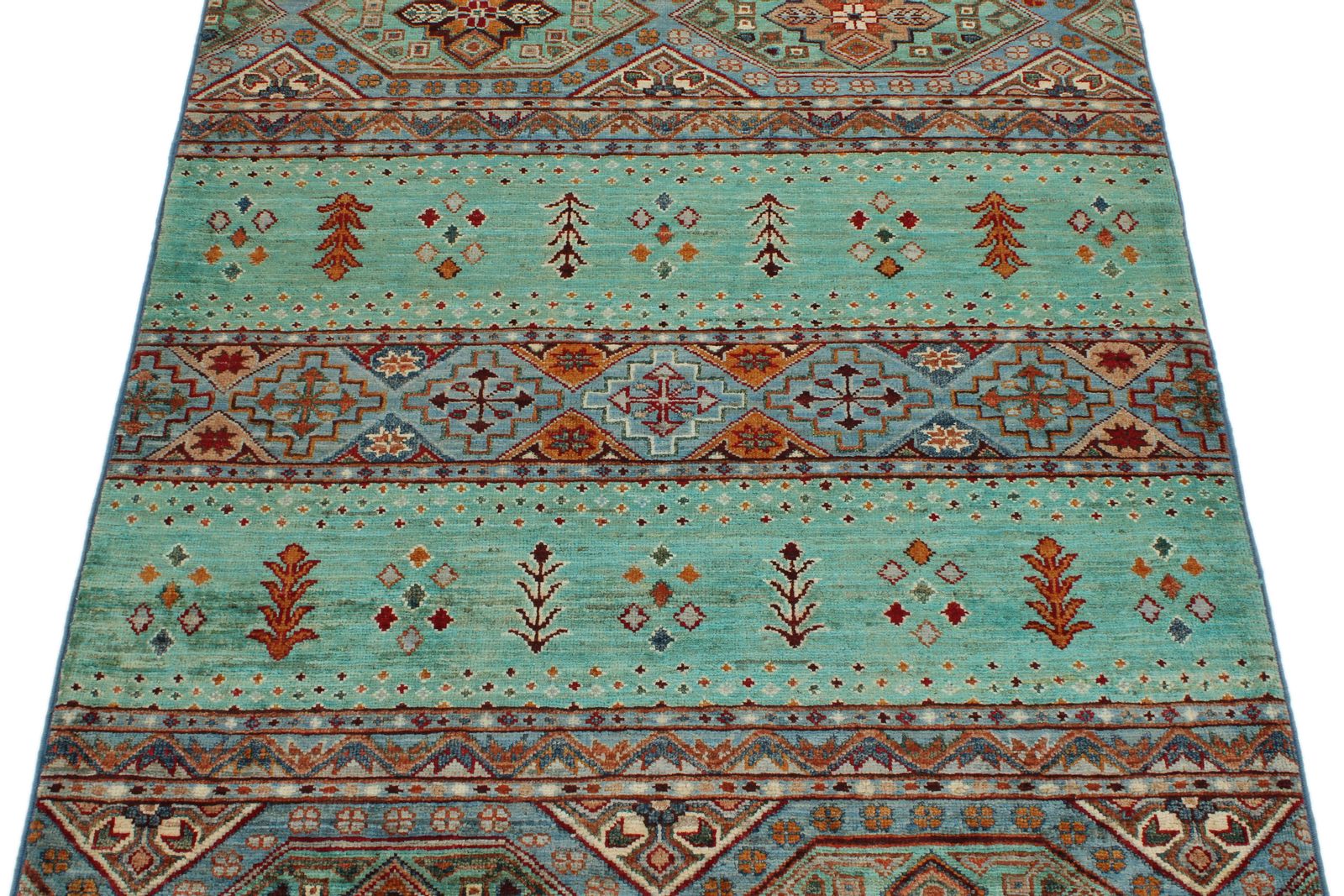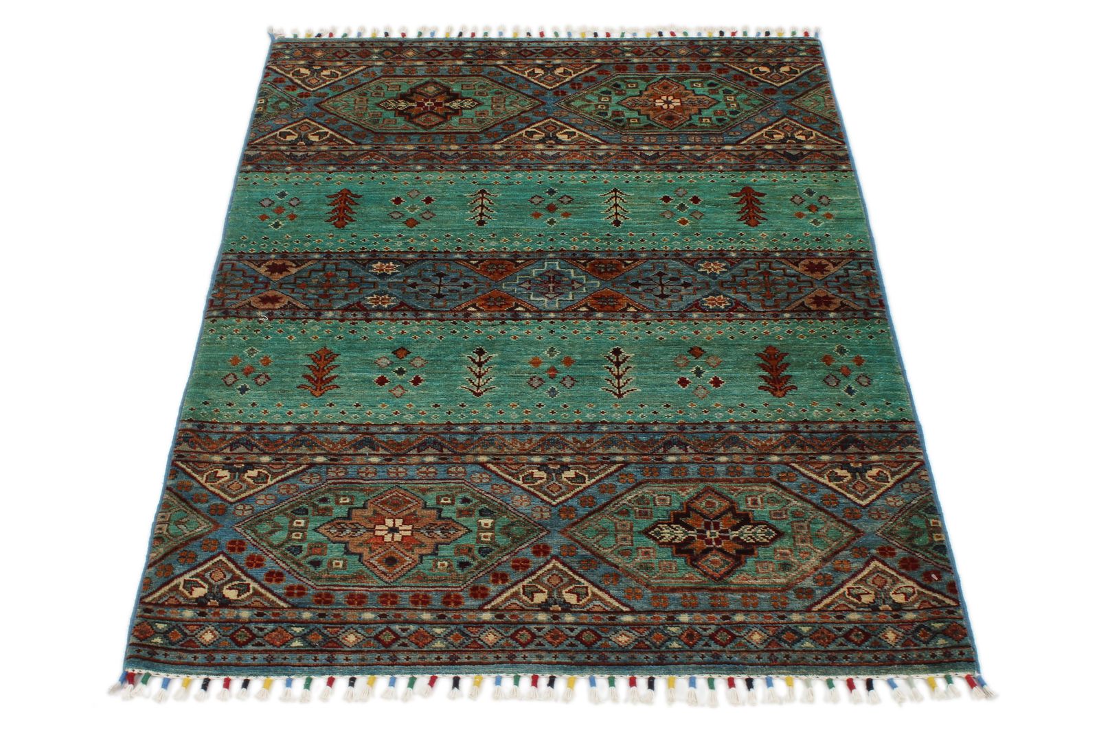 Name: Vintage Handmade 3x5 Mint and Multicolor Anatolian Tribal Rug