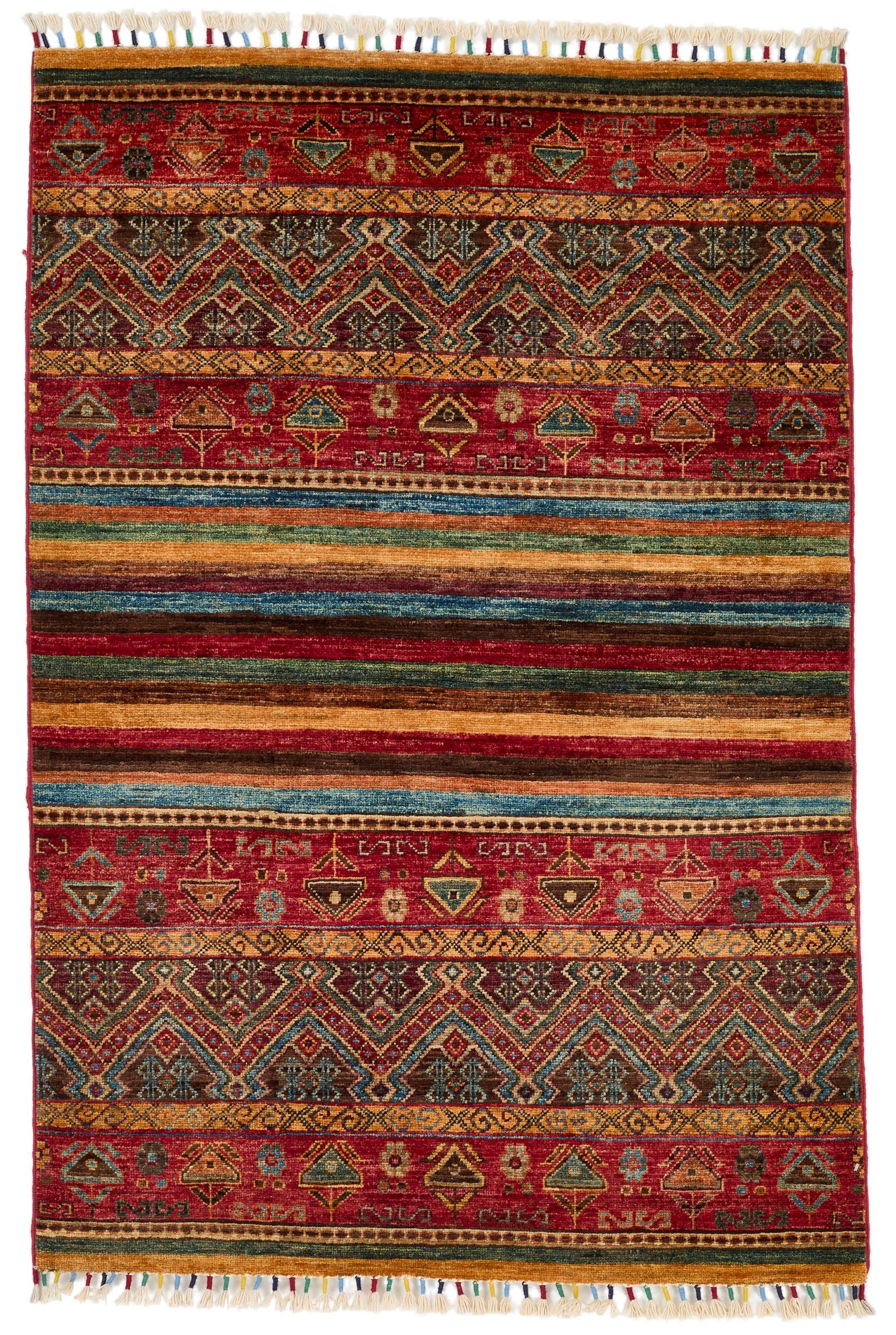 Khorjin rugs are an exotic and unique addition to any home. Their name comes from the word "khorjin," which means saddlebag, as they were originally woven as utilitarian bags to carry belongings on horseback. These vintage rugs are handcrafted by skilled artisans in the tribal areas of Anatolia, featuring striking geometric designs and bold color combinations. Khorjin rugs are made with high-quality wool and are known for their durability and sustainability, making them an excellent home. Each rug is one of a kind, and no two are exactly alike, adding a touch of authenticity and charm to any room. With a rich history and unique beauty, Khorjin rugs are a timeless piece of art for any lover of Oriental decor.