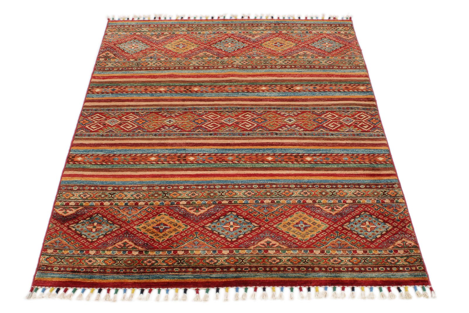 Khorjin rugs are an exotic and unique addition to any home. Their name comes from the word "khorjin," which means saddlebag, as they were originally woven as utilitarian bags to carry belongings on horseback. These vintage rugs are handcrafted by skilled artisans in the tribal areas of Anatolia, featuring striking geometric designs and bold color combinations. Khorjin rugs are made with high-quality wool and are known for their durability and sustainability, making them an excellent home. Each rug is one of a kind, and no two are exactly alike, adding a touch of authenticity and charm to any room. With a rich history and unique beauty, Khorjin rugs are a timeless piece of art for any lover of Oriental decor.