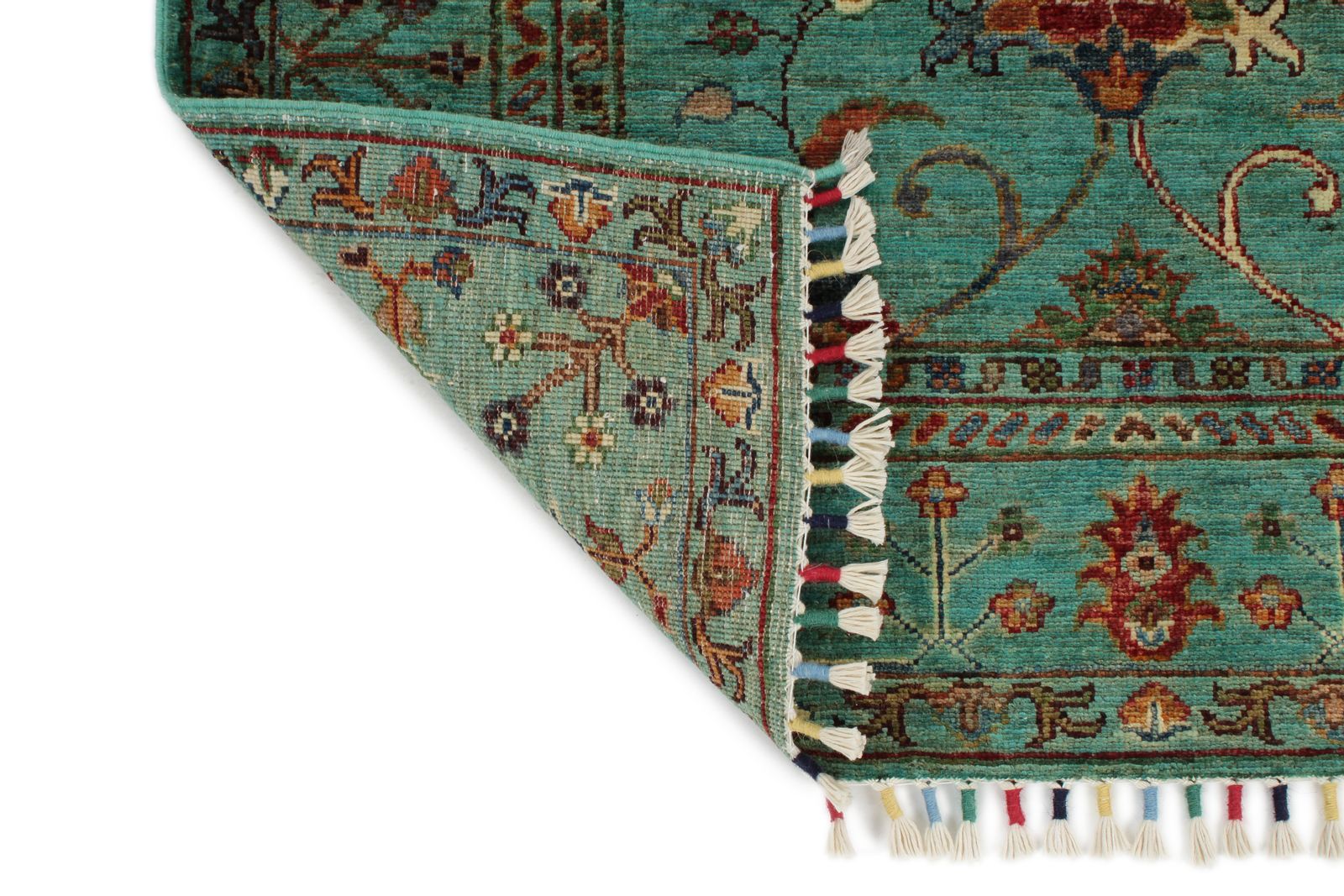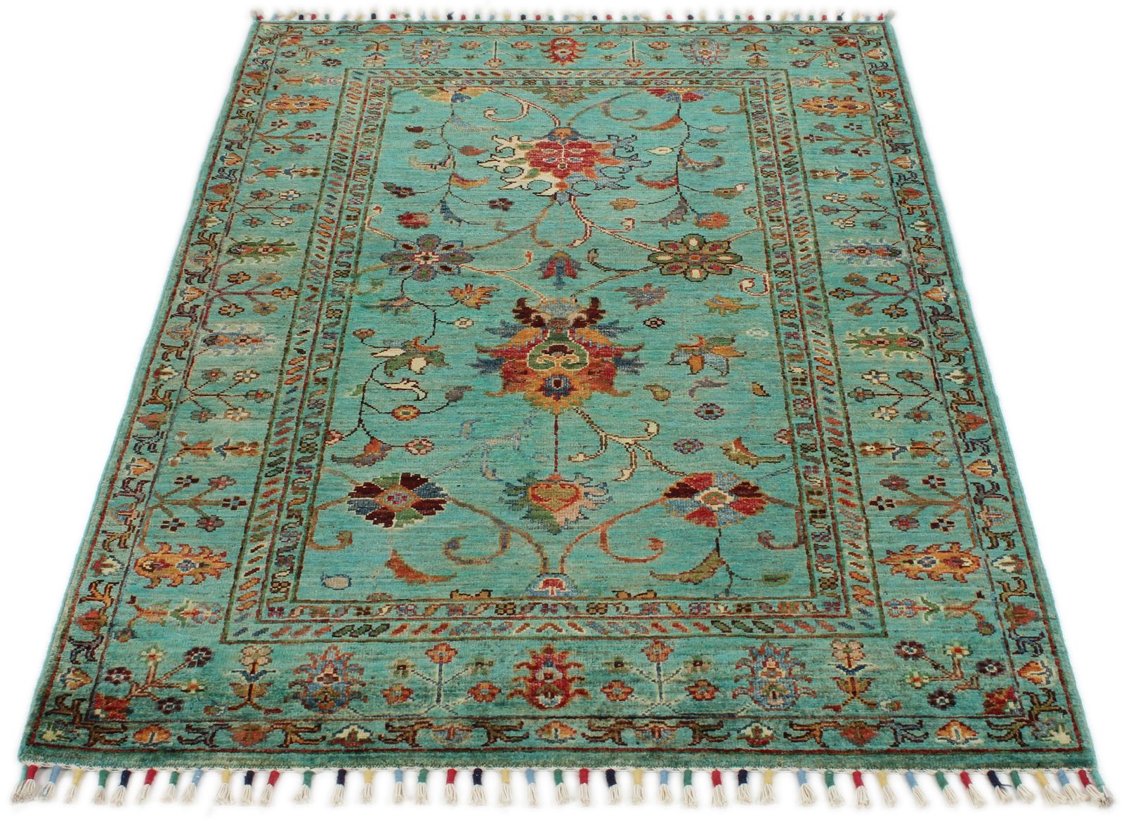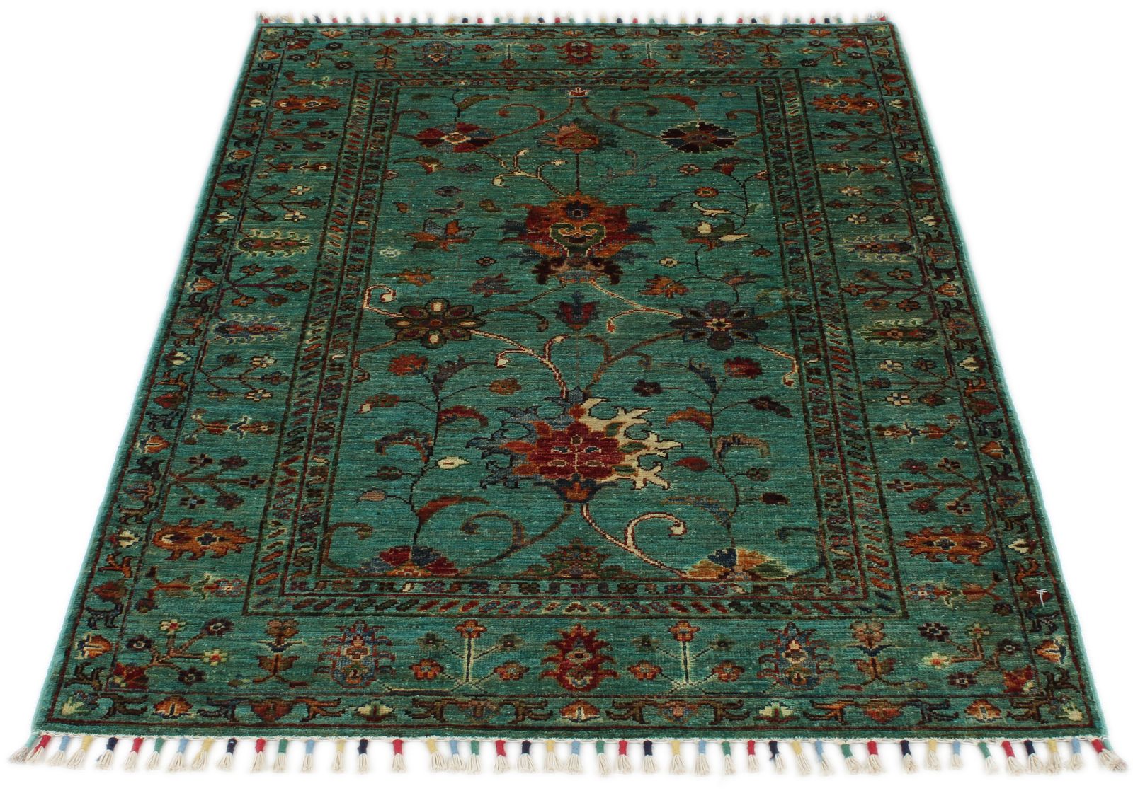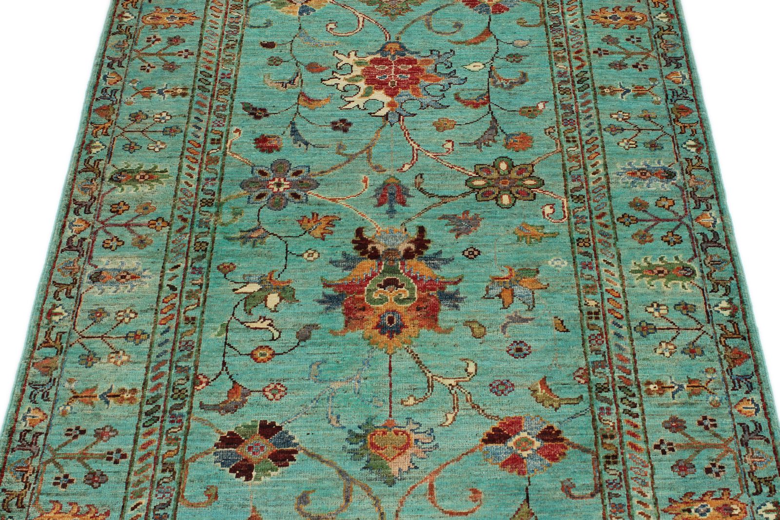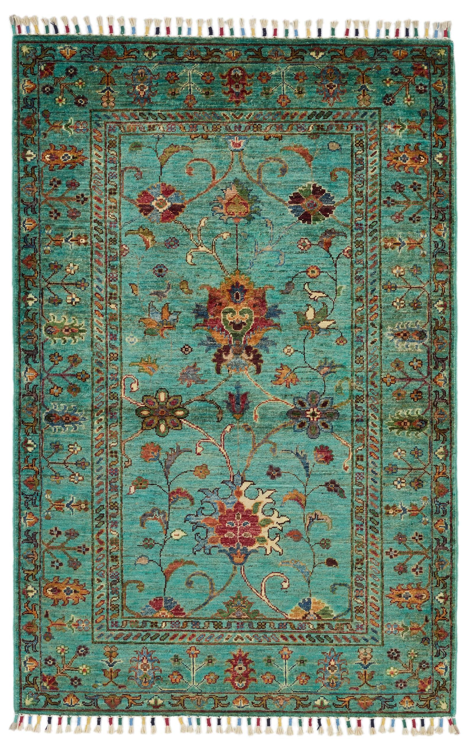 3x5 Turquoise and Multicolor Turkish Tribal Rug